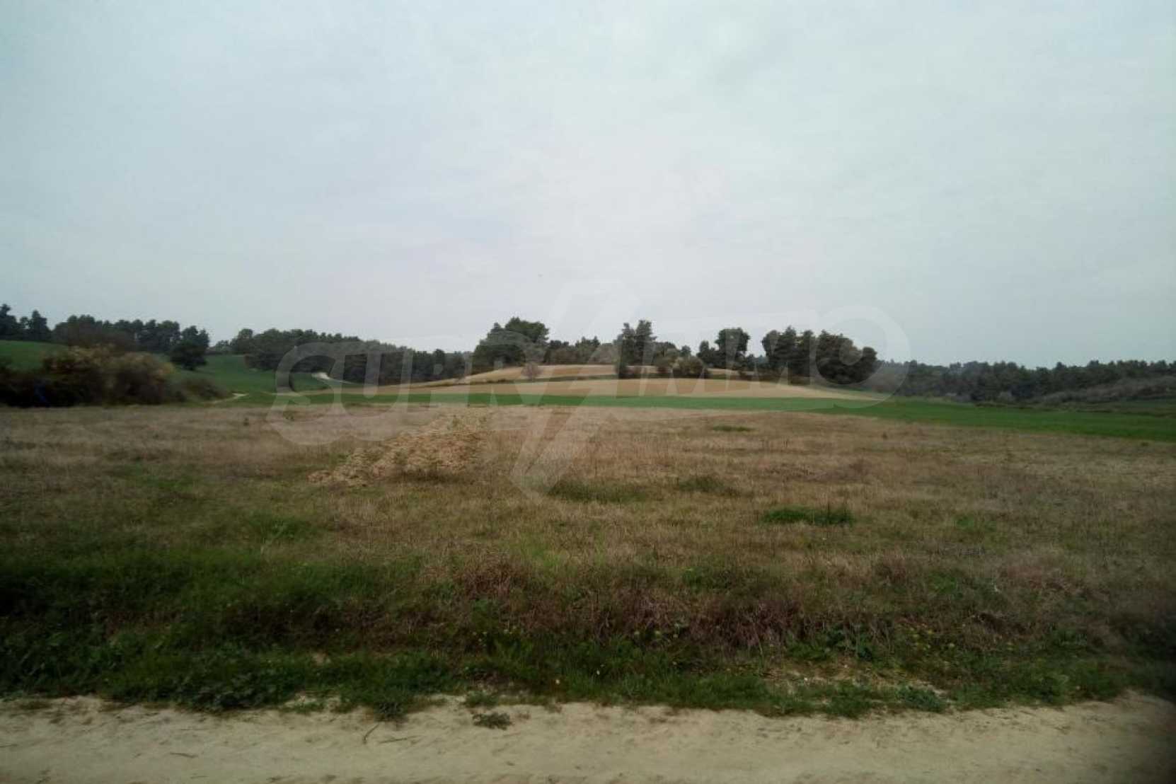 Уникално, панорамно поле, 5100 кв.м, в Касандра, Халкидики с безпрепятствен постоянен изглед към планината и с югоизточна ориентация. Наклоненият имот е извън селото и е с лице към главния път. Полето, което е пълно и застроено, е идеално за изграждане на вила или самостоятелни къщи.
