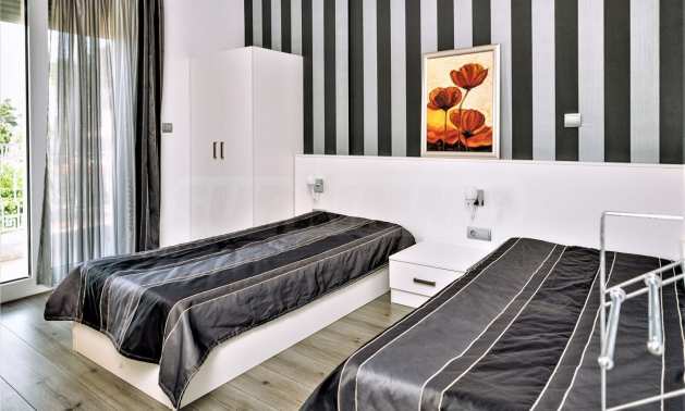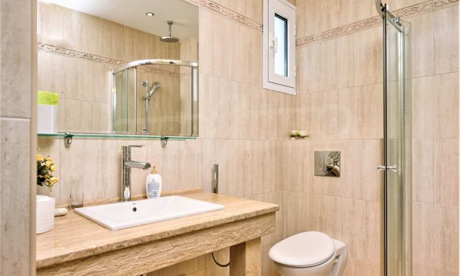 Уникална, луксозна вила в Ситония, Халкидики, пред красив плаж. Къщата е 450 кв.м. и се простира на три нива. Състои се от голяма всекидневна, кухня, пет големи спални и пет бани. Той е напълно обзаведен и оборудван с всички електрически уреди. Разполага с подземен паркинг за четири автомобила и голяма озеленена градина. Това е луксозен имот на първа линия на красив плаж.