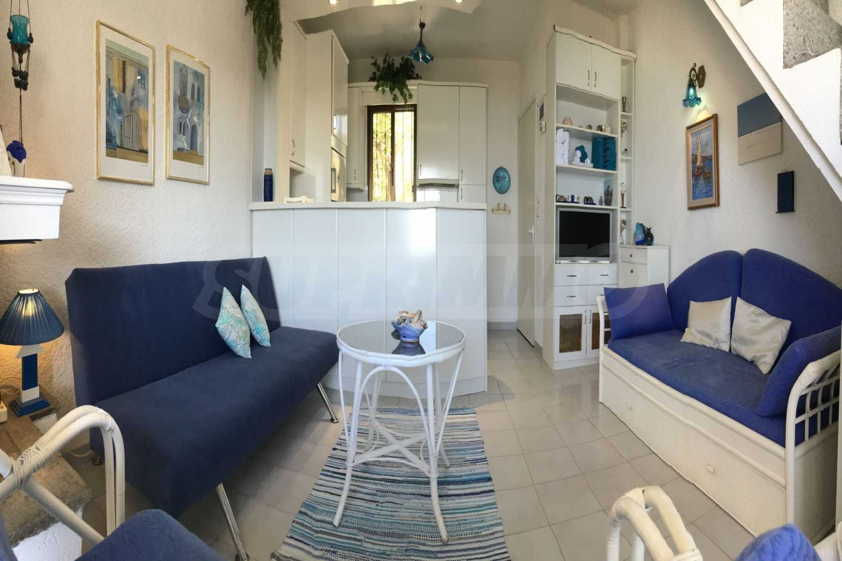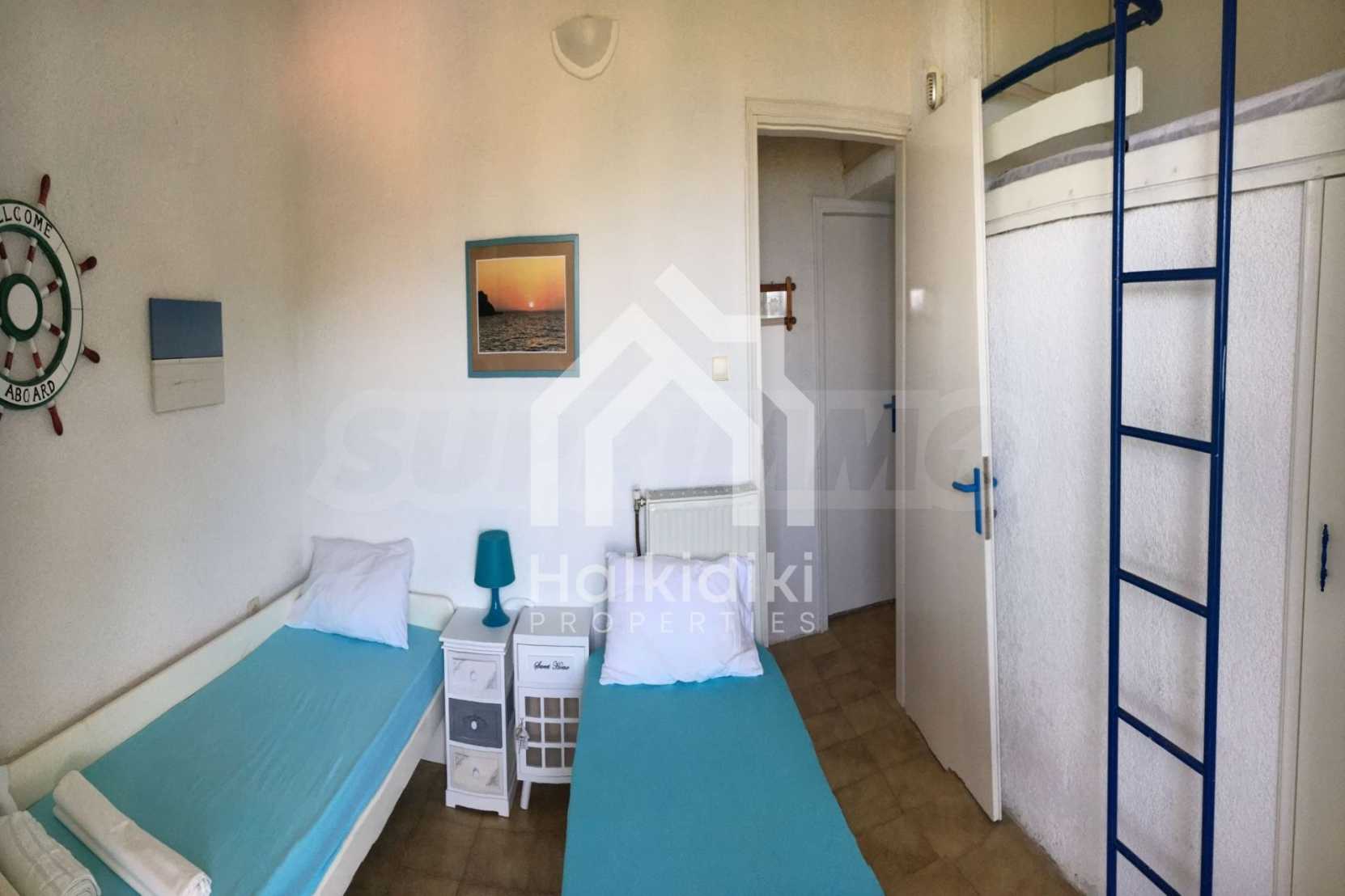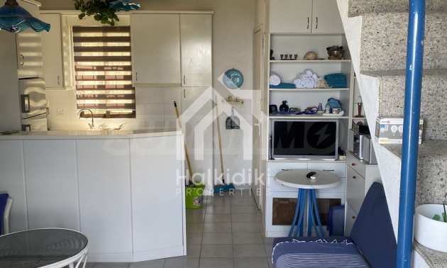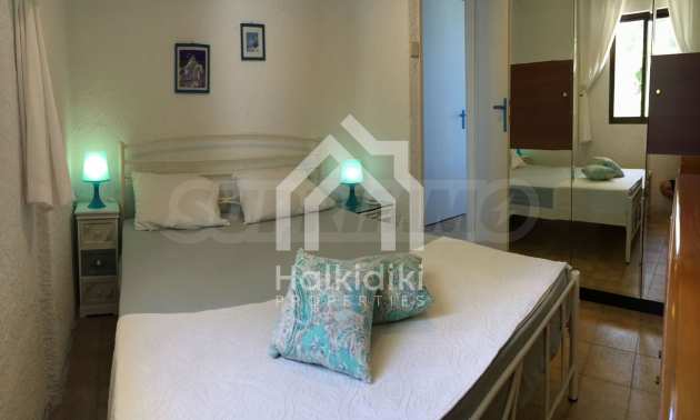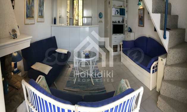 Красив мезонет в комплекс, на 100 кв.м, в Касандра, Халкидики с безпрепятствен постоянен изглед към морето. Имотът е разделен на три нива, състоящ се от хол, свързан с кухнята, три спални, две бани и килер. Мезонетът, също има алуминиева дограма, подове за плочки, пробиване и палатки.