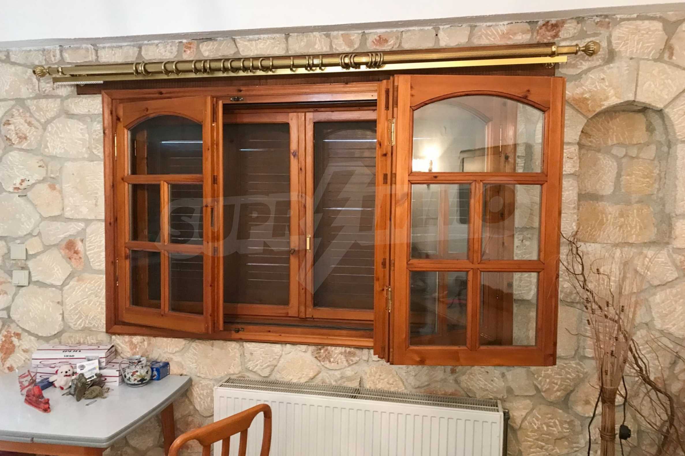 Уникална самостоятелна къща в Ситония, Халкидики, само на няколко метра от прекрасен плаж. Къщата е построена върху парцел от 265 кв.м и се простира на две нива. Първото ниво разполага с голям хол, кухня, две спални и баня. Продължавайки към второто ниво, намираме друга дневна, кухня, две спални и баня. Къщата е напълно обзаведена и оборудвана с всички електрически уреди. Разполага също с барбекю и място за паркиране. Към големите предимства на къщата можете да добавите възможността за разделяне на две независими и автономни свойства.