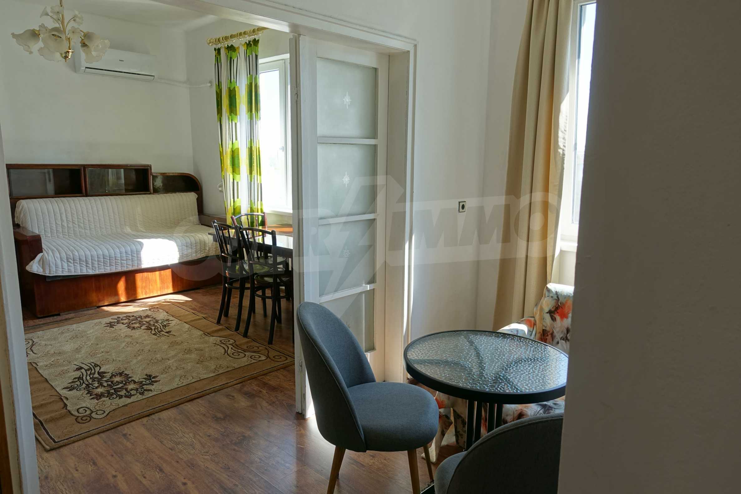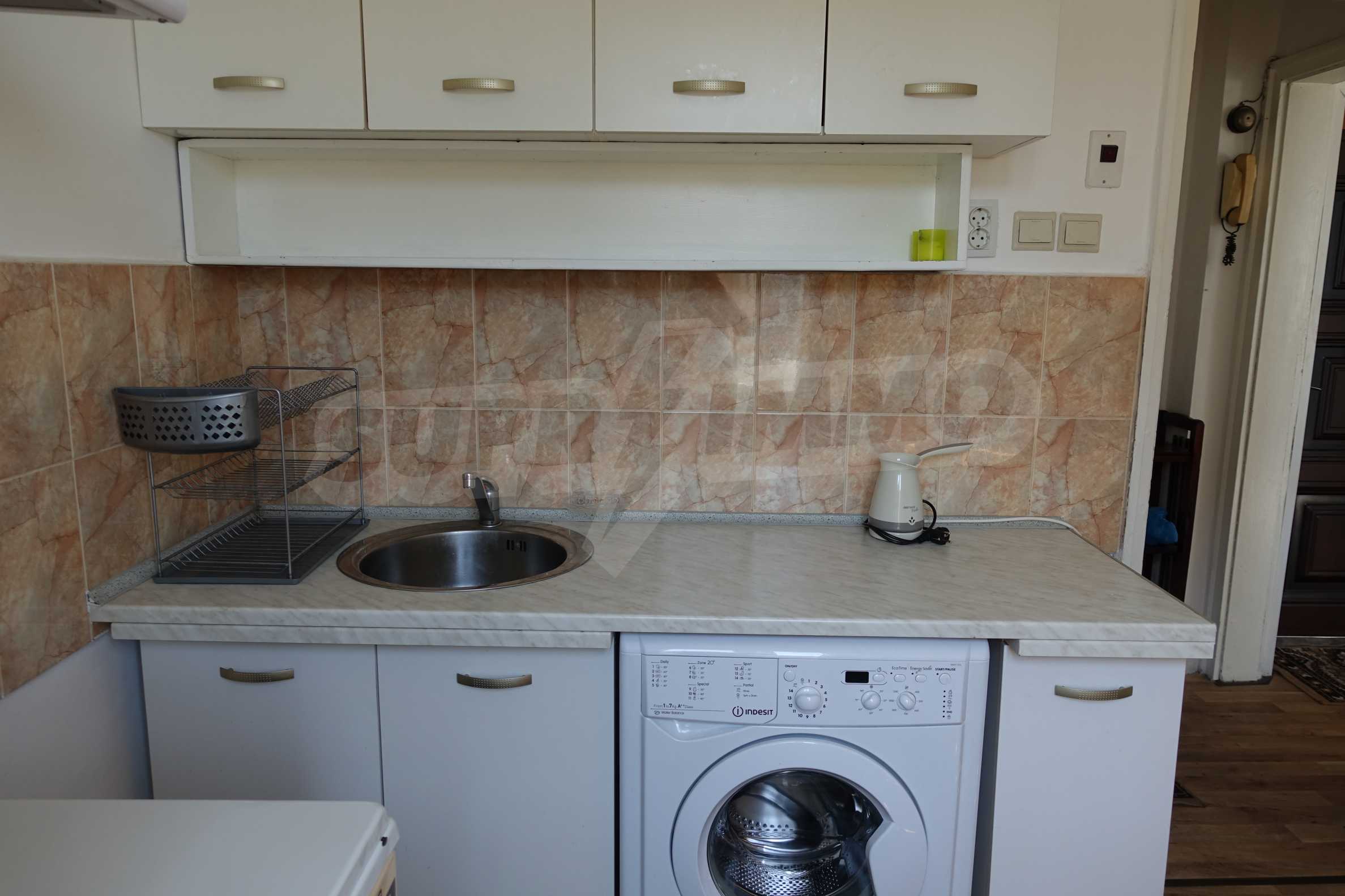 Имотът е в сграда разполагаща с поддържани общи части и приятен вход. Жилището е светло, топло и приятно. Напълно обзаведено с всичко необходимо : пералня, печка, хладилник, бойлер, климатик, спалня и разтегателен диван и др.