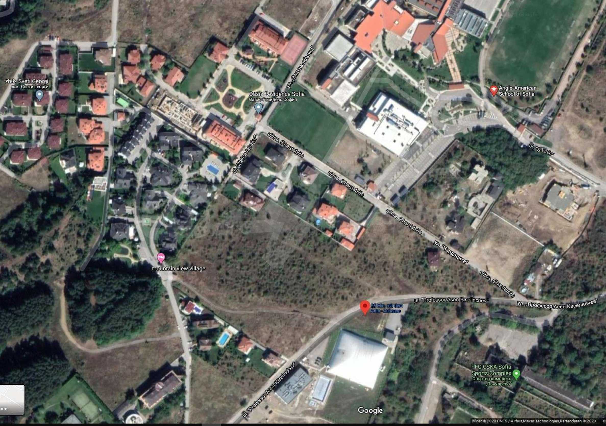 Локация:Намира се на входа на спортната база на ЦСКА в Панчарево, на 200 м. от резиденцията на Софарма, на 500 м. от Англо-американското училище. 62 м. лице на асфалтираната ул. 'Асен Киселинчев'.