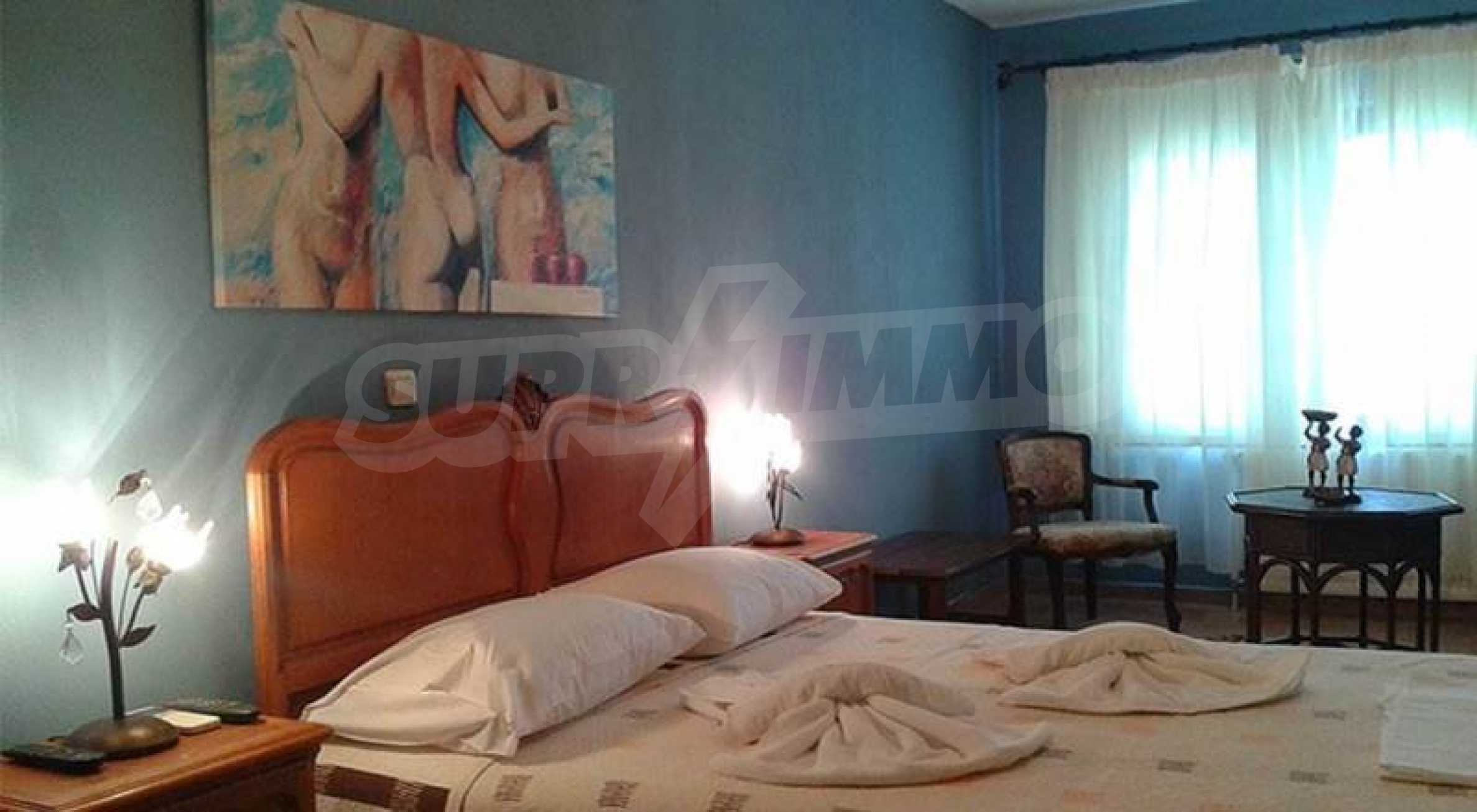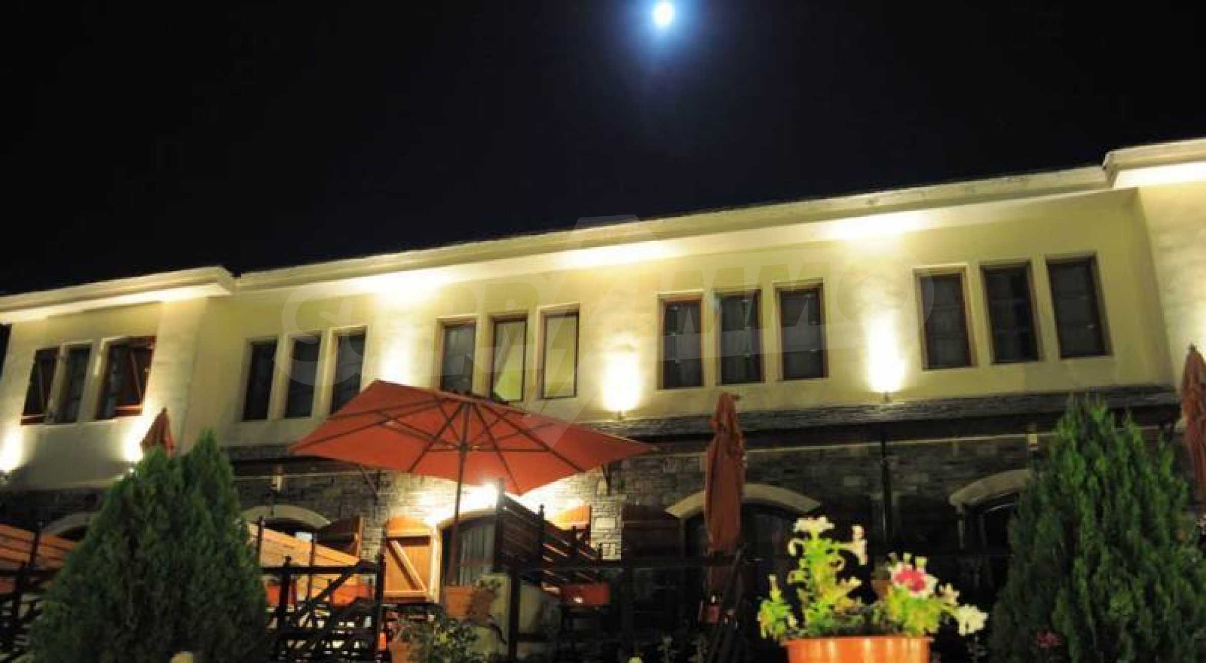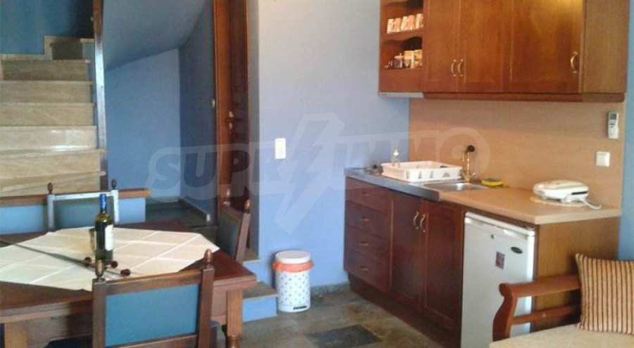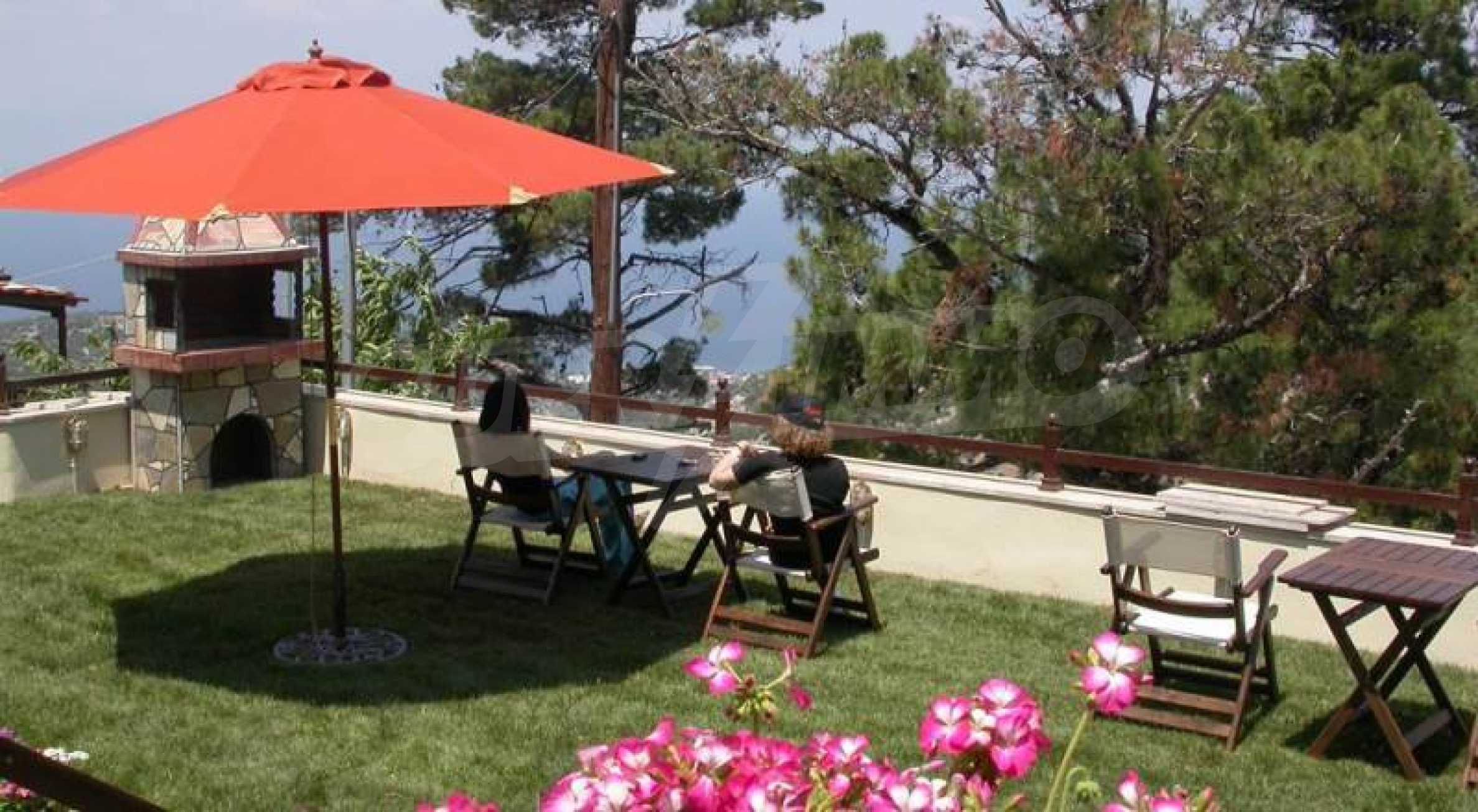 Традиционна къща за гости с площ 380кв.м. с парцел 422кв.м. и гараж 90 кв.м. в Сотира,Тасос. Отлично инвестиционно предложение в недвижими имоти, тъй като може да функционира или като бизнес , или като постоянно семейно жилище. Състои се от 4 мезонета с площ 58 кв.м, идеални за прием на трима души и 2 мезонета от 62 кв.м. идеални за четирима души. Местоположението му съчетава пищен зелен пейзаж с гледка към синьото море. Мезонетите се състоят от напълно оборудвана кухня, климатик, централно отопление, LCD телевизор (и на двата етажа), DVD плейър, сейф и самостоятелен балкон от 12кв. С панорамна гледка към Егейско море. Елементите от камък и дърво в интериора и екстериора на сградата се съчетават хармонично, излъчвайки нотка на благородство и достъпен лукс. В дворното място има барбекю. Хостелът включва допълнителна приемна, парна баня, сауна, складово помещение и кухня, разположена в мазето.