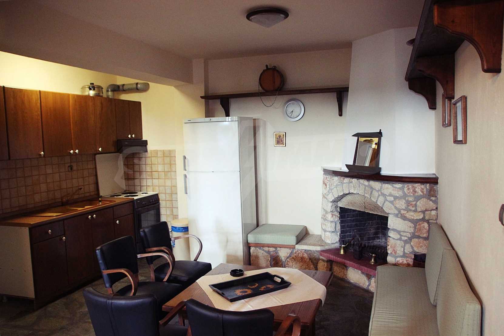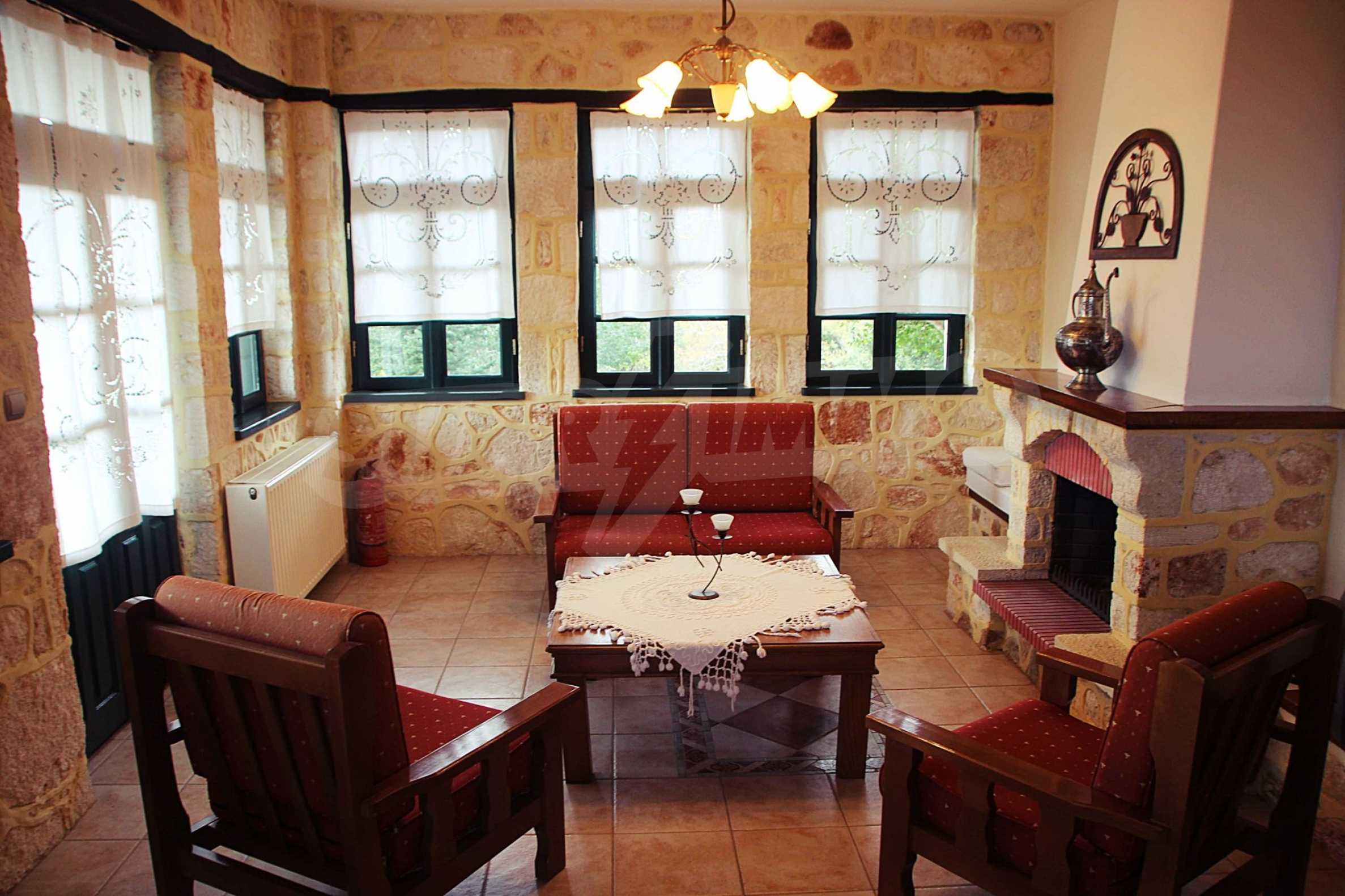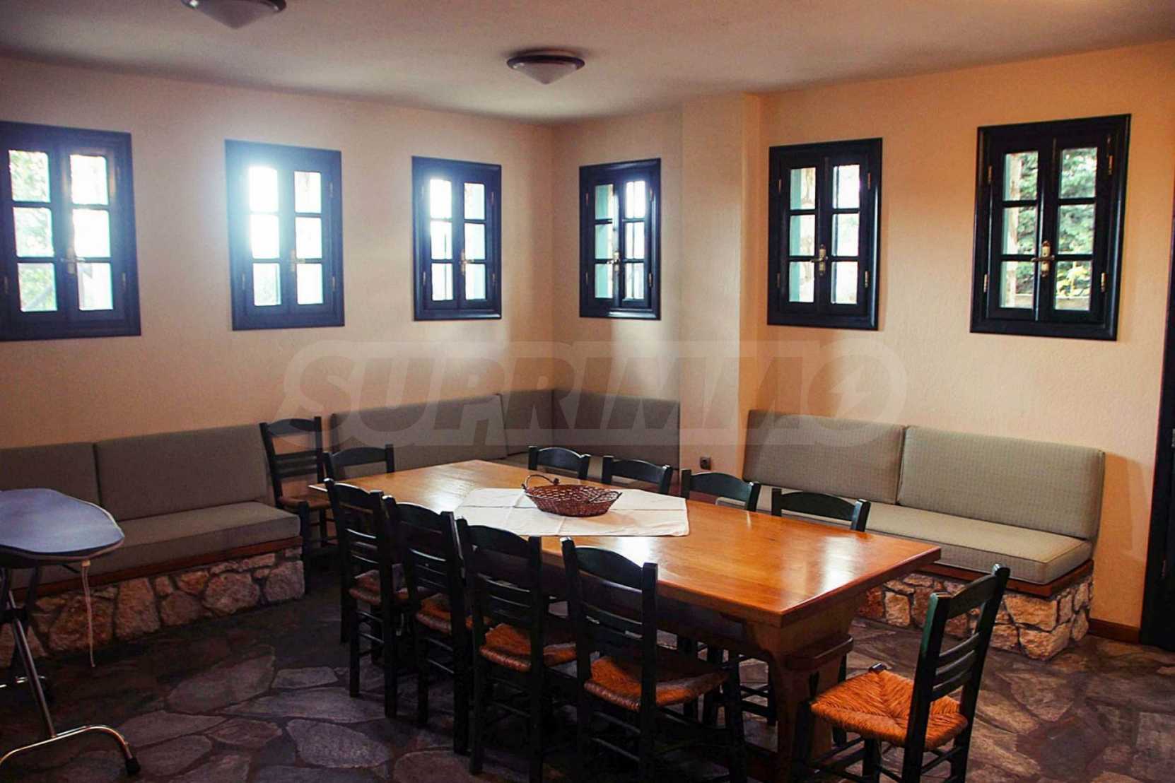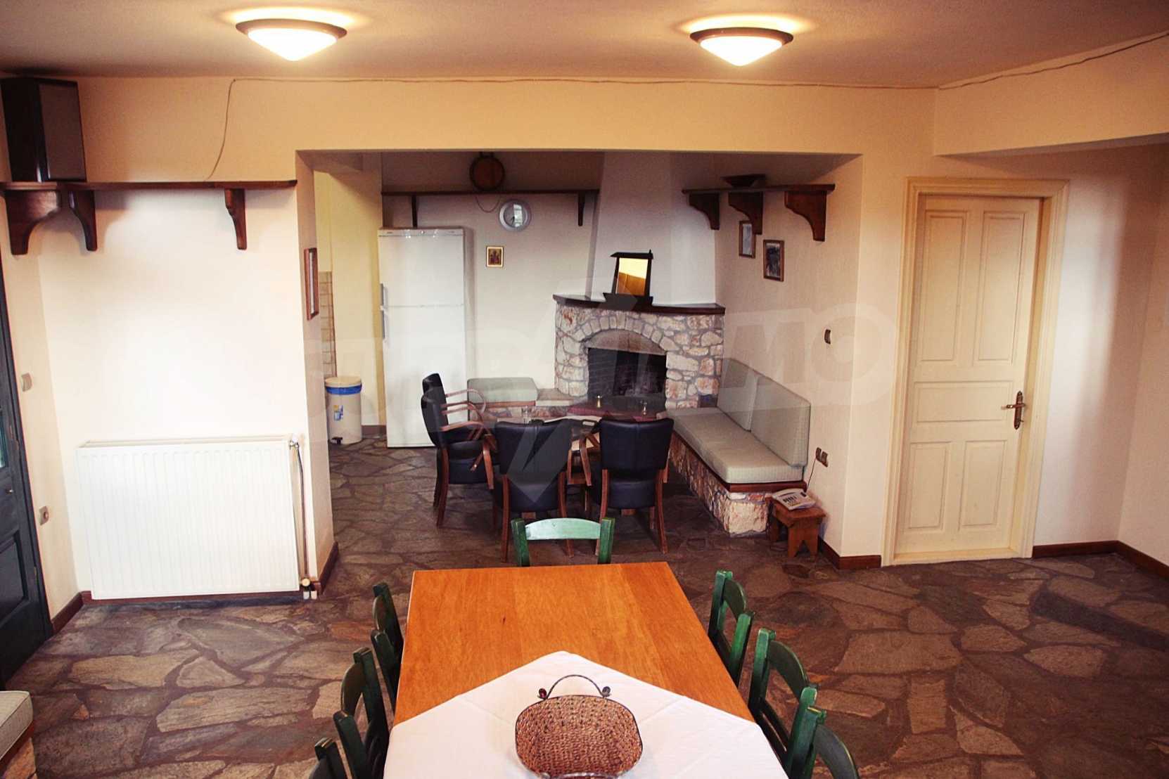 Уникална, панорамна вила в Атон, Халкидики. Имотът е 235 кв.м, има южна ориентация и е разделен на три нива. Състои се от три големи дневни, кухня, четири големи спални и три бани. Той е напълно обзаведен и оборудван с всички електрически уреди. Разполага с паркинг за две коли и градина от 350 кв.м, с много добре проектирано барбекю. Това е луксозен имот с голямо уединение. Разполага също с дървени и каменни подове, дървена дограма и големи балкони.