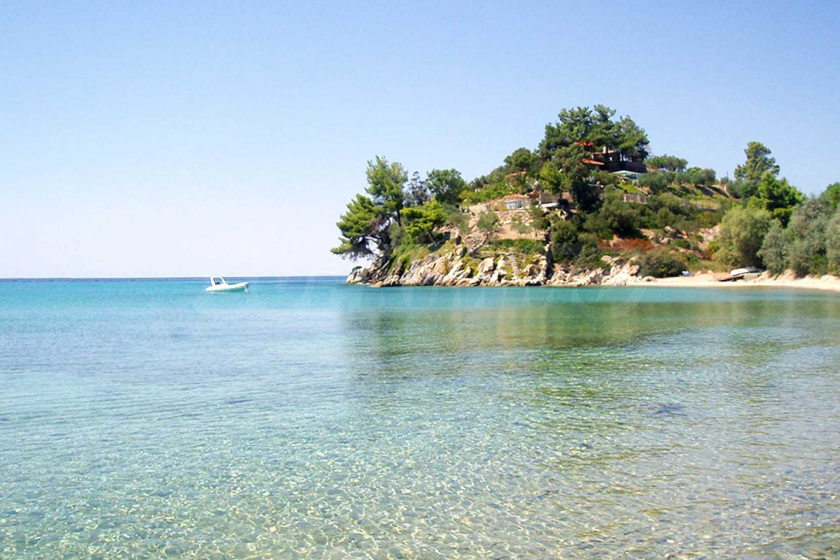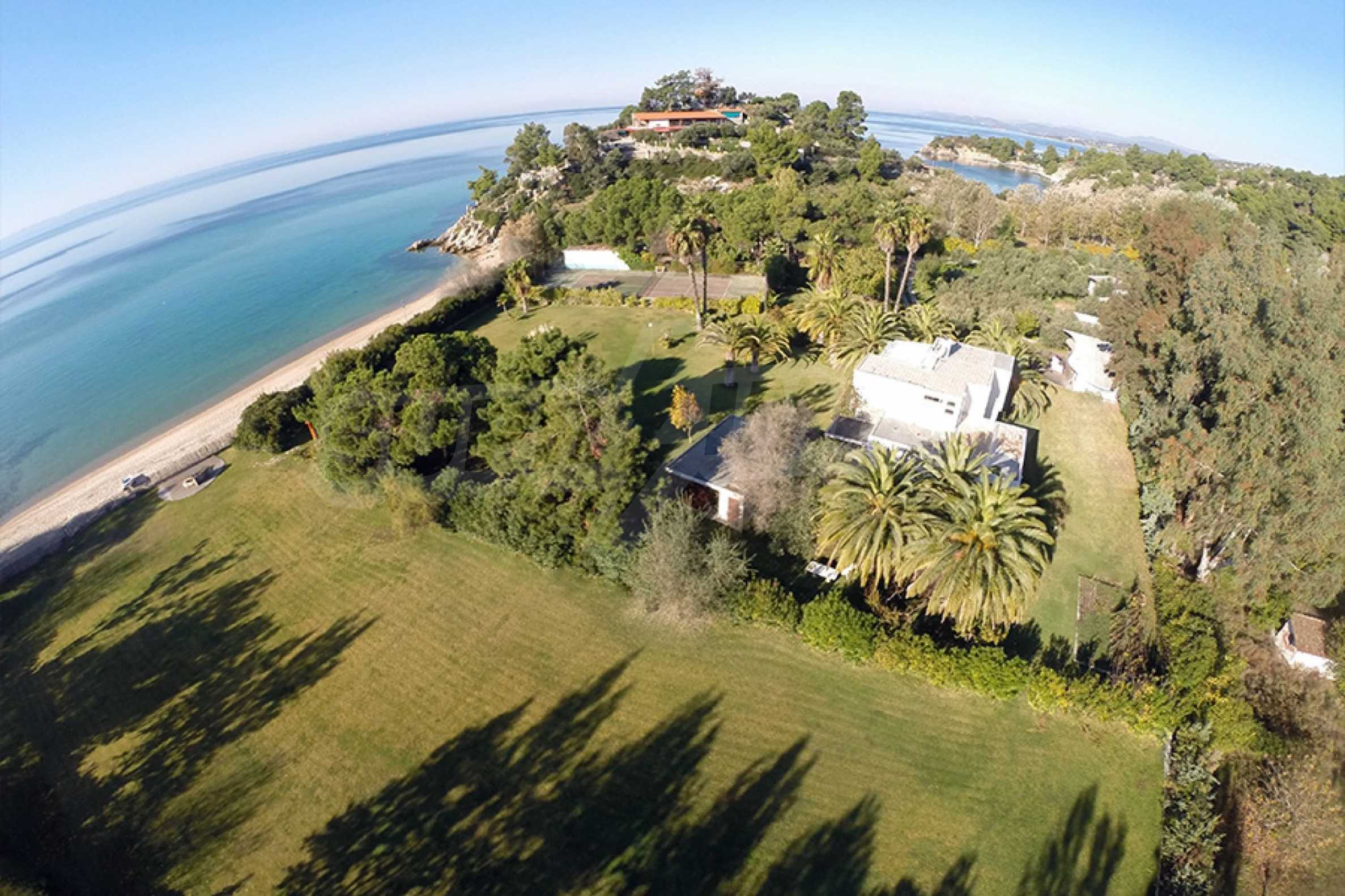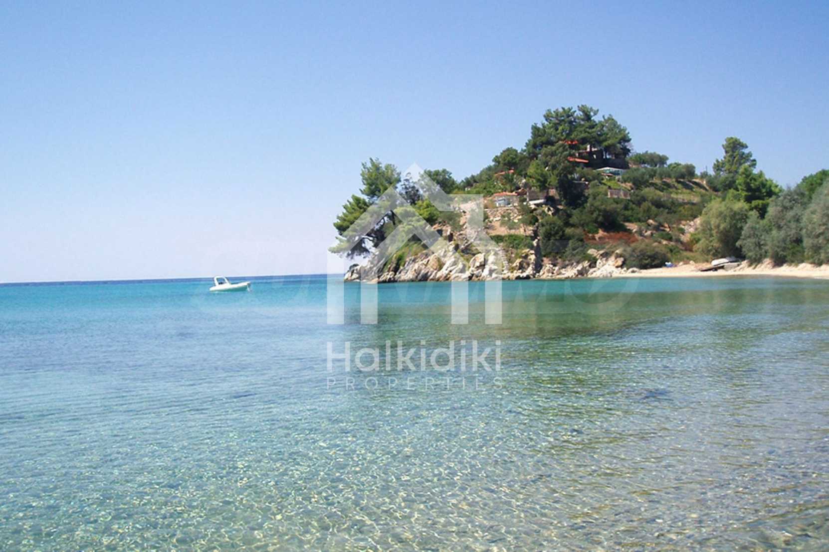 Красива самостоятелна къща, 200 кв.м, в Ситония, Халкидики, първо на морето, с прекрасна гледка и с югозападна ориентация. Имотът е заобиколен от 13 декара земя, покрита с дървета, и е на 7,5 км от центъра на селото. Той е разделен на две нива, състоящ се от хол, свързан с кухнята, четири спални, четири бани и килер. Къщата също има корт, павилион, барбекю, бойлер, резервоари за вода, автоматизирано поливане, блиндирана врата, алармена система, алуминиева дограма и подове за плочки. Имотът е обзаведен и напълно оборудван.