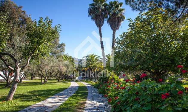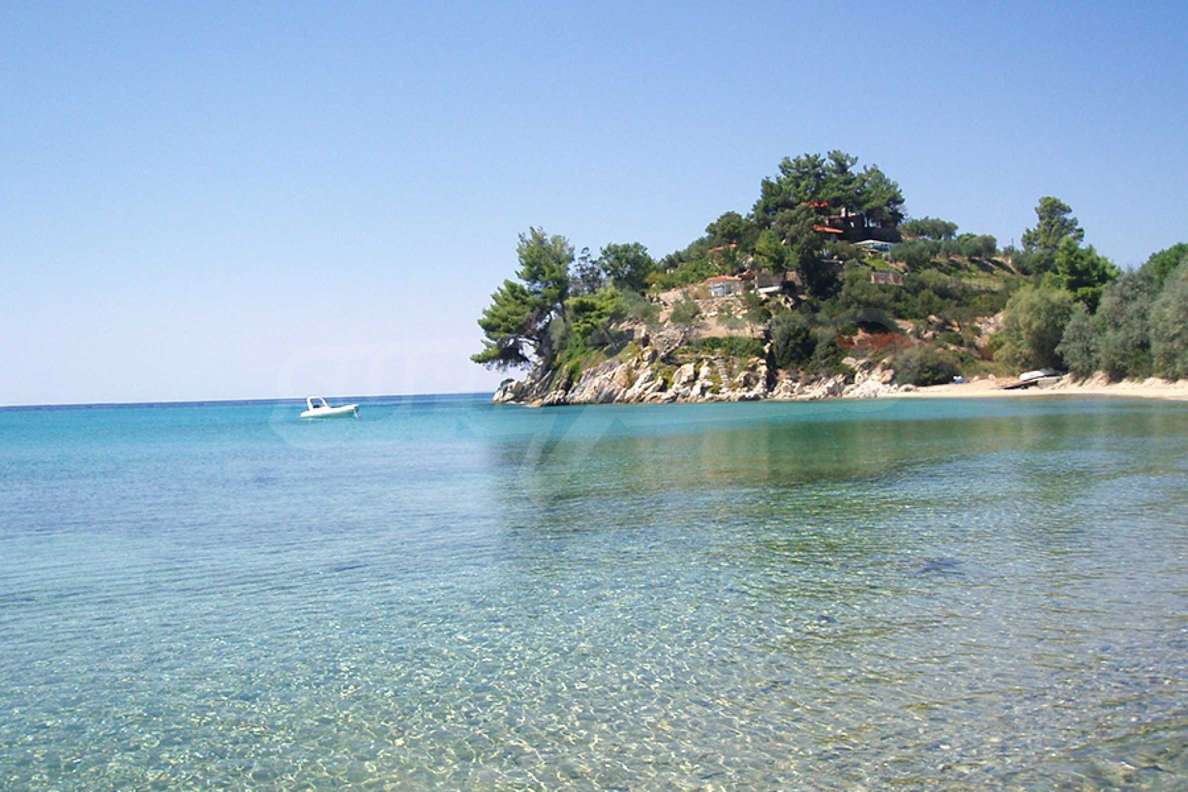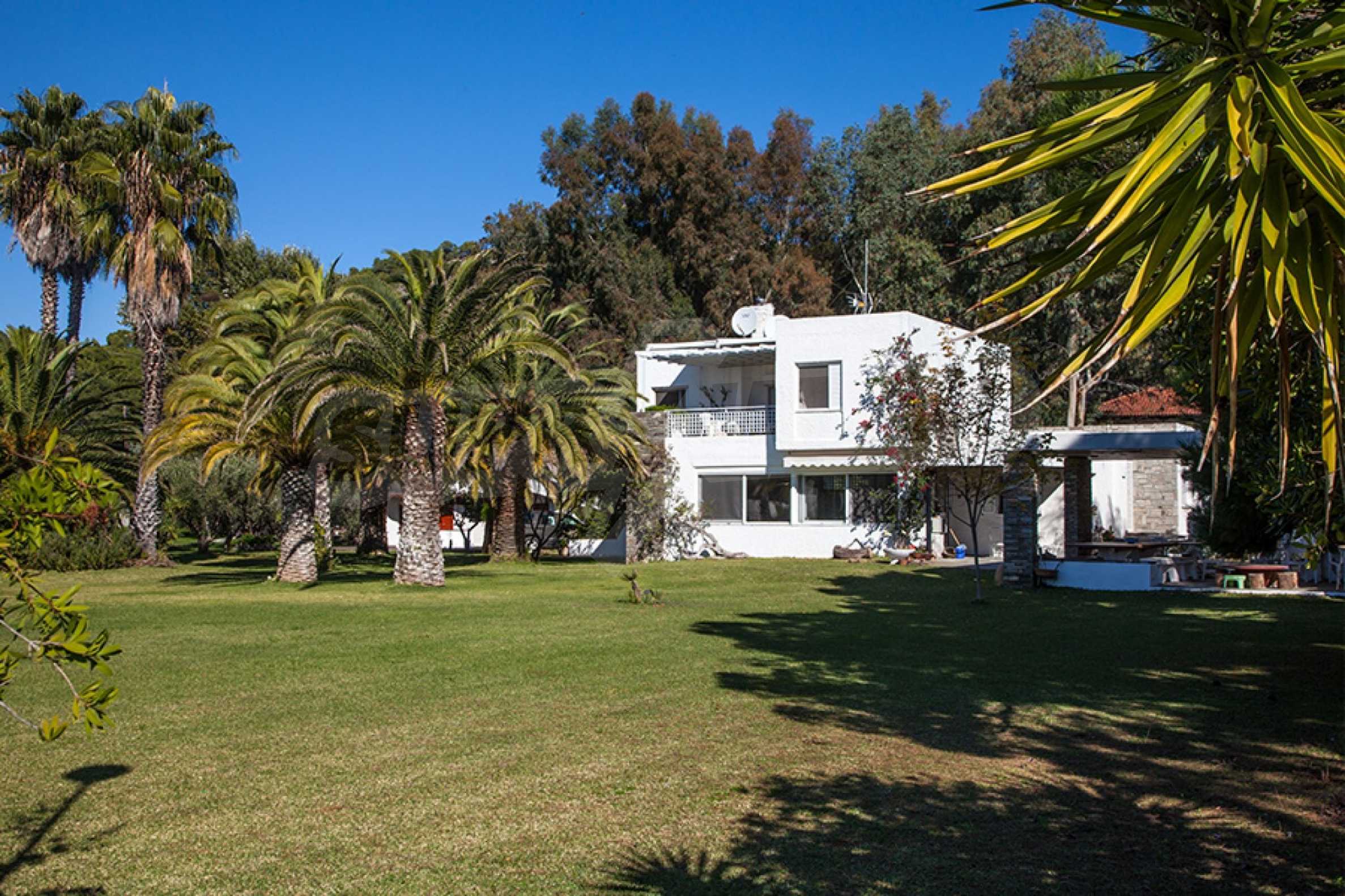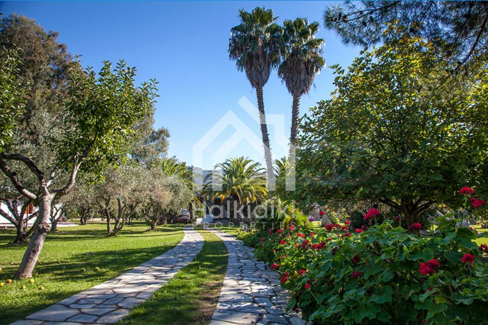Красива самостоятелна къща, 200 кв.м, в Ситония, Халкидики, първо на морето, с прекрасна гледка и с югозападна ориентация. Имотът е заобиколен от 13 декара земя, покрита с дървета, и е на 7,5 км от центъра на селото. Той е разделен на две нива, състоящ се от хол, свързан с кухнята, четири спални, четири бани и килер. Къщата също има корт, павилион, барбекю, бойлер, резервоари за вода, автоматизирано поливане, блиндирана врата, алармена система, алуминиева дограма и подове за плочки. Имотът е обзаведен и напълно оборудван.