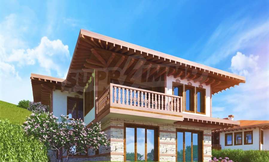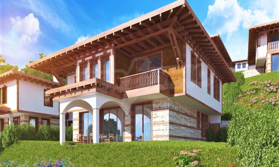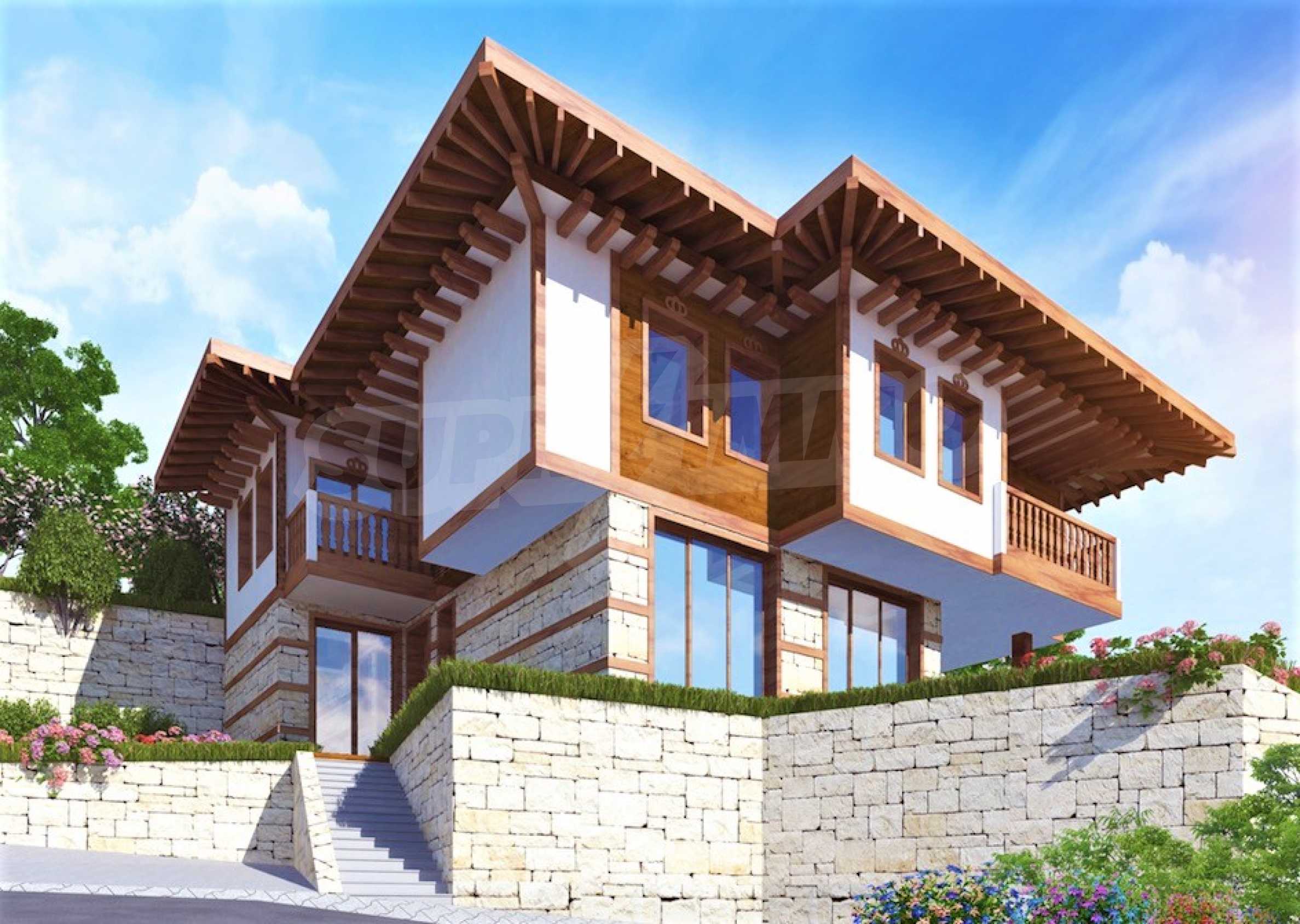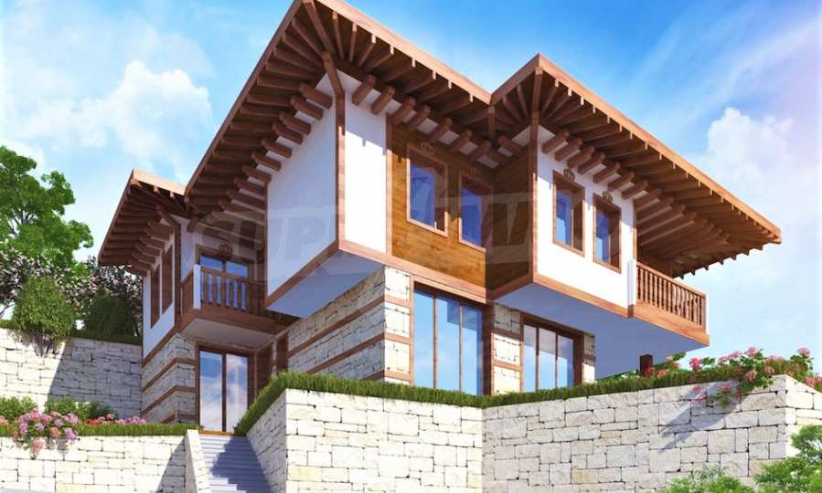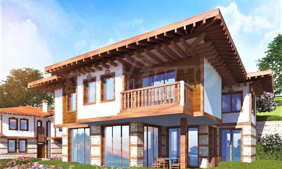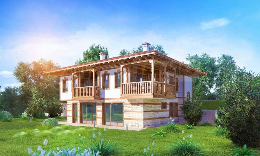 Представяме двуетажна къща "до ключ" в традиционен български стил, в мащабен нов комплекс в Свети Влас, разположен сред зеленината на гористата местност Касада.