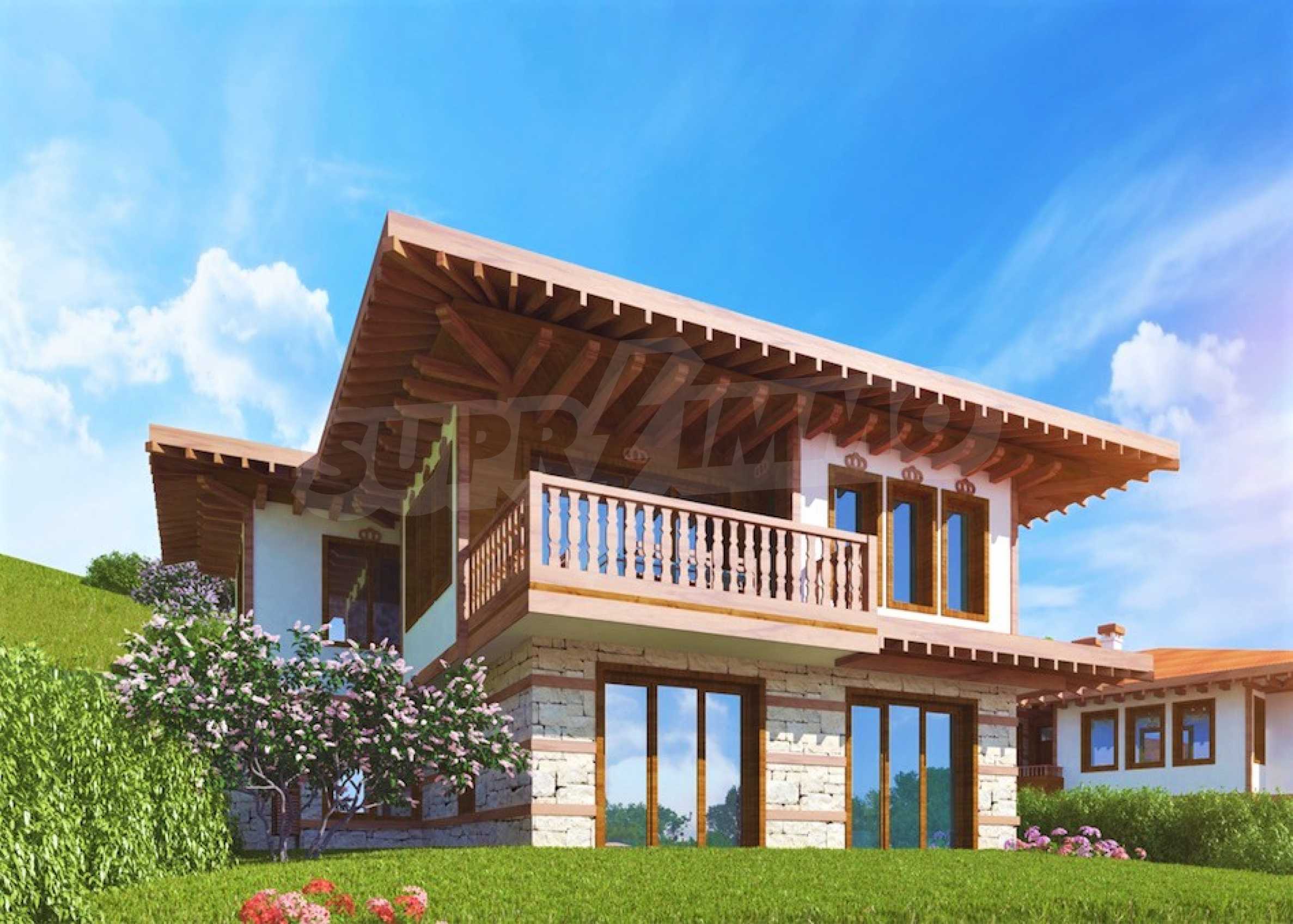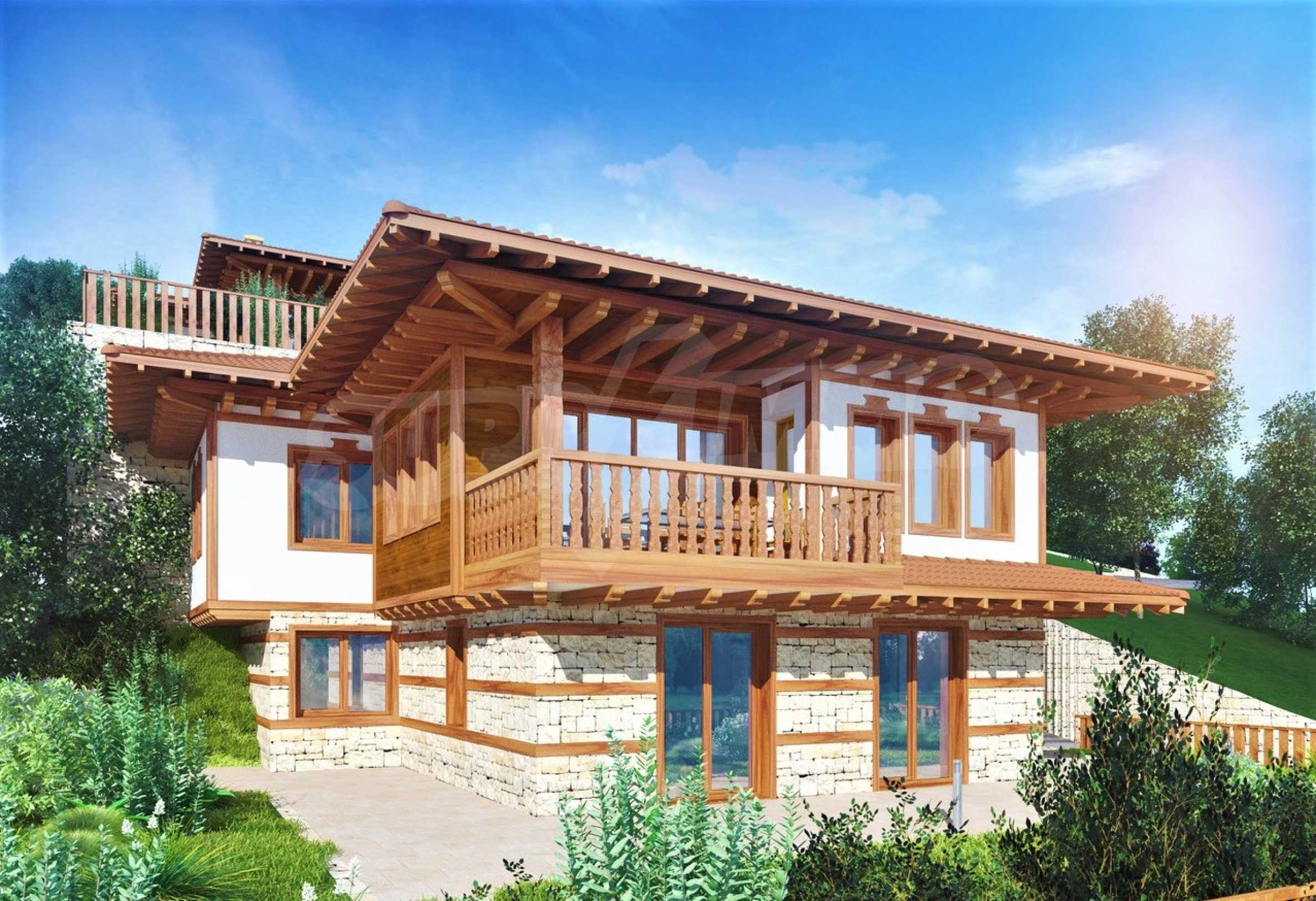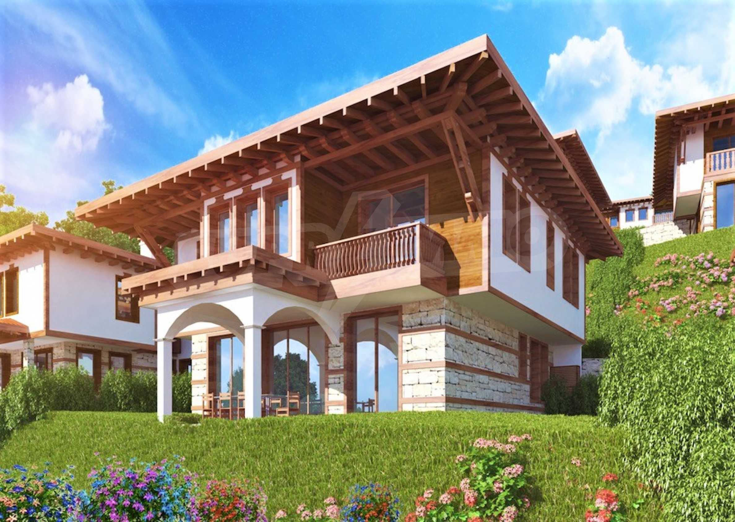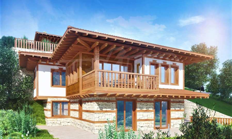 Представяме двуетажна къща "до ключ" в традиционен български стил, в мащабен нов комплекс в Свети Влас, разположен сред зеленината на гористата местност Касада.