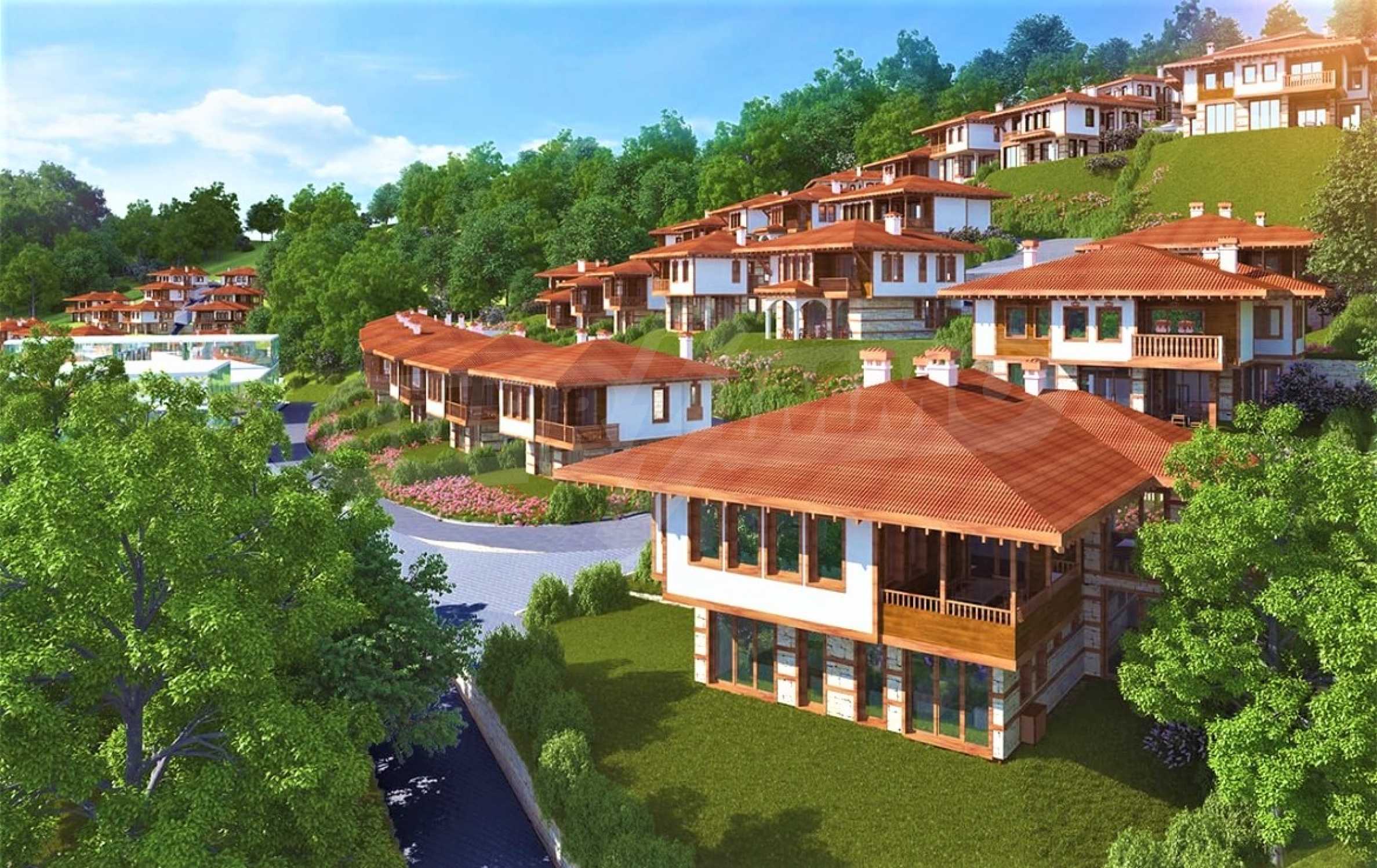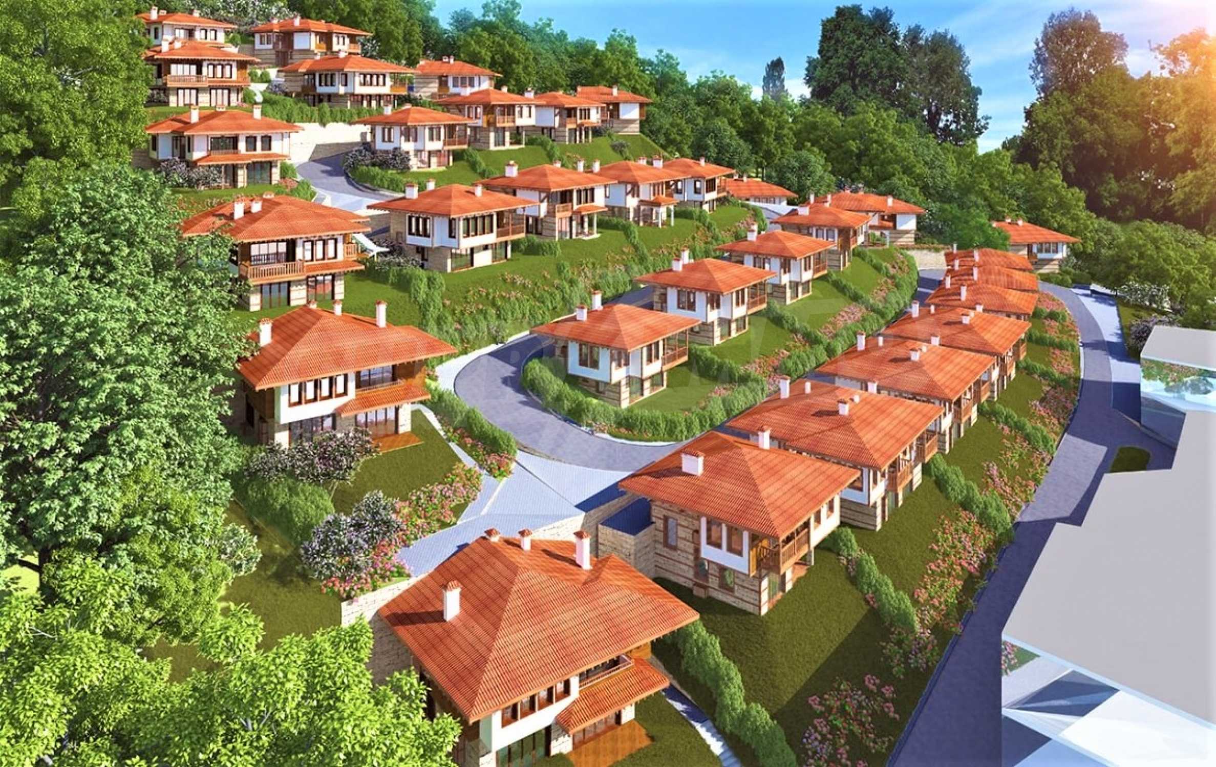 Разработената градоустройствена концепция допринася за романтичната визия на целия комплекс, като от всички нива на всяка къща има панорама към морето и гората.