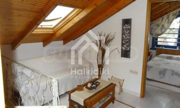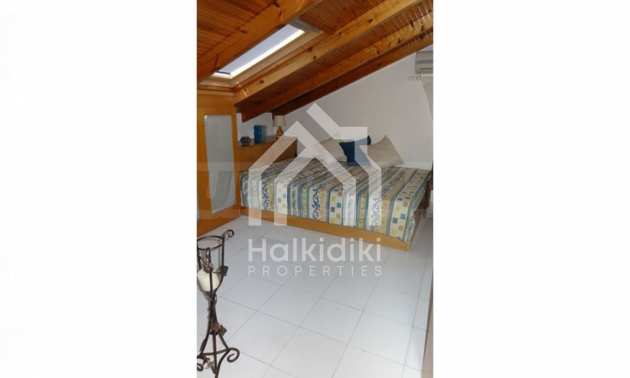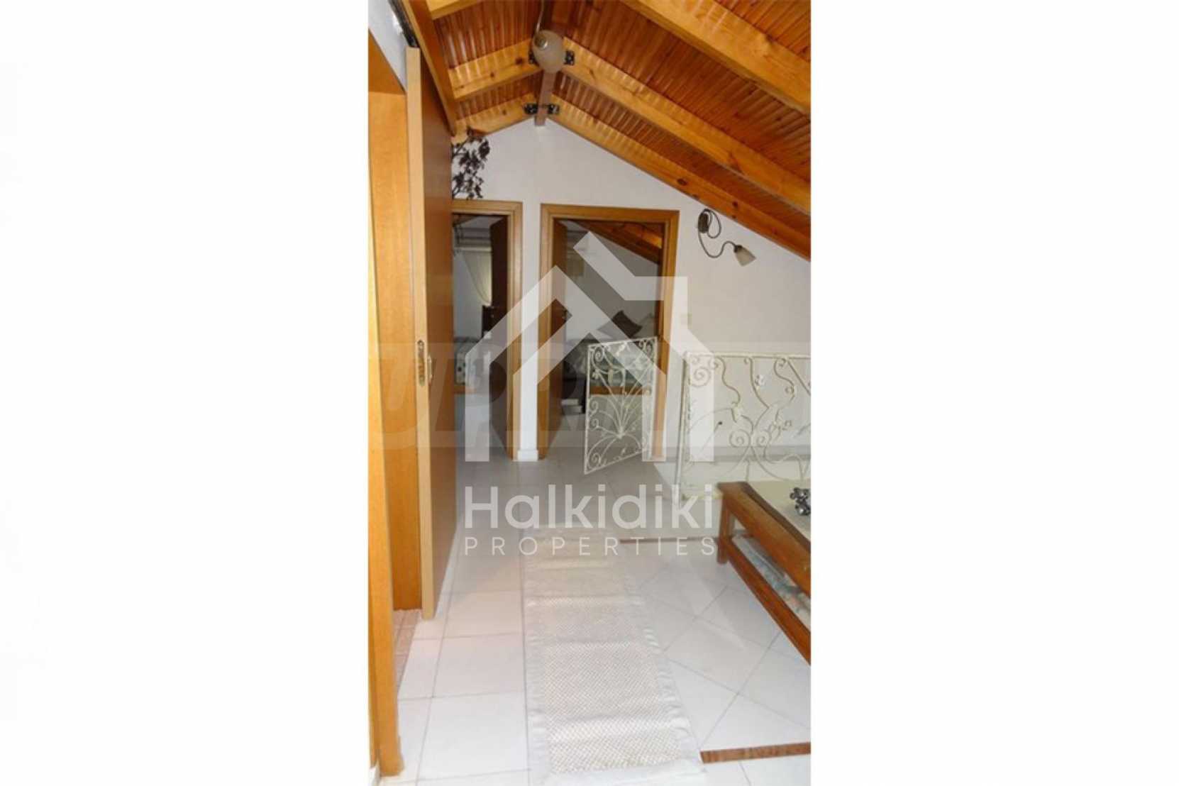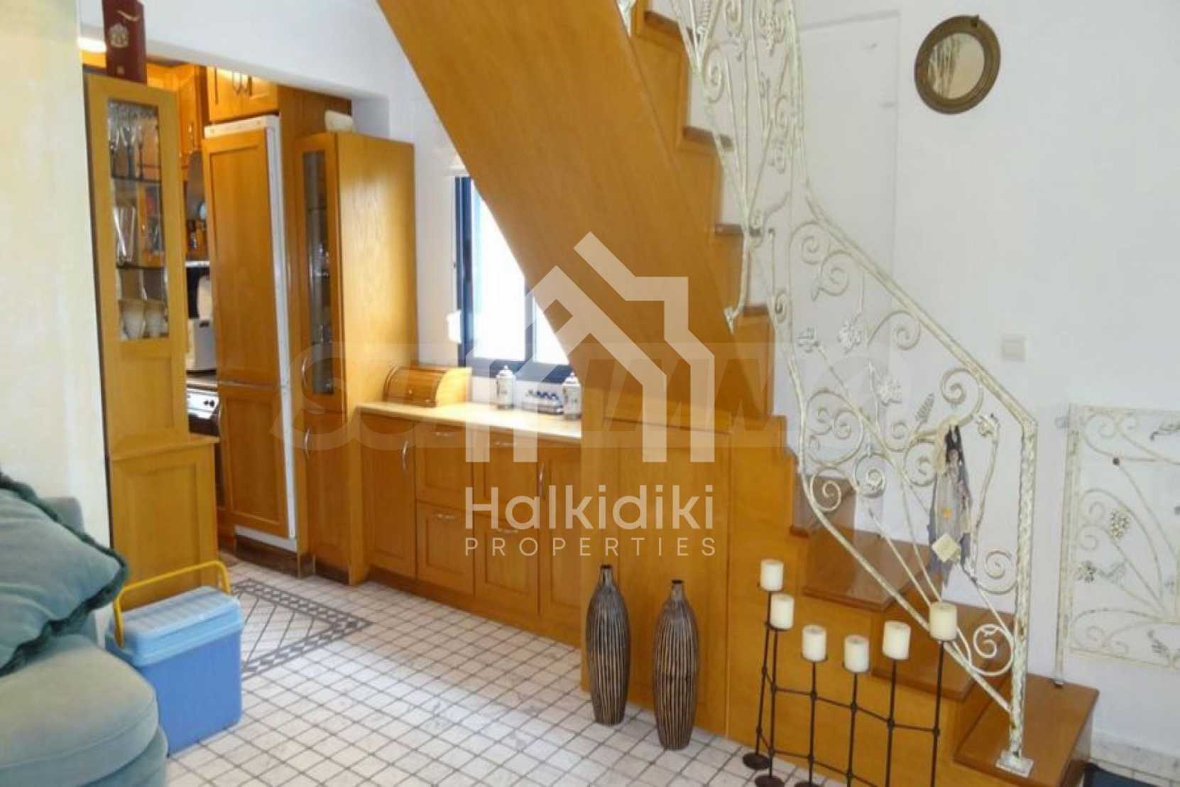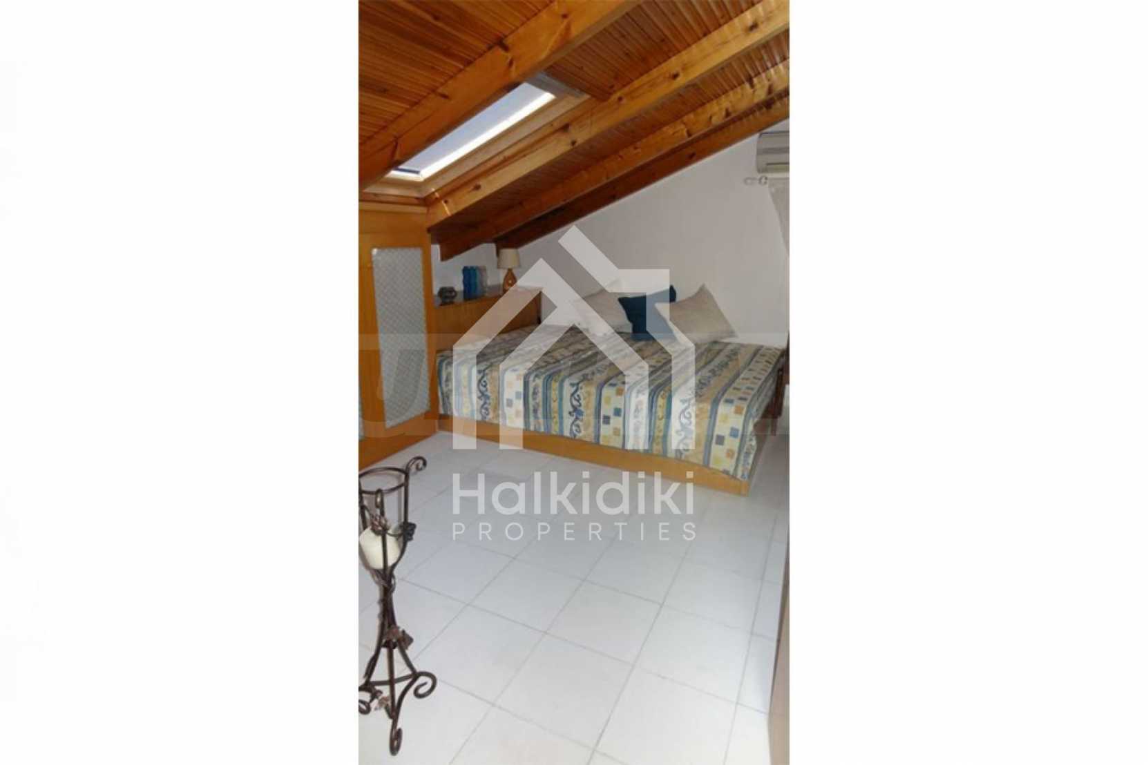Красив мезонет 130 кв.м, в Касандра, Халкидики, на хълм, с прекрасна гледка към морето и с източна ориентация. Имотът е на 80 метра от плажа и на 1000 метра от центъра на селото. Той е разделен на три нива, състоящ се от хол, свързан с кухнята, четири спални, две бани и килер. Разполага с голям балкон, мраморни подове, алуминиева дограма, блиндирана врата, паркинг и алармена система.