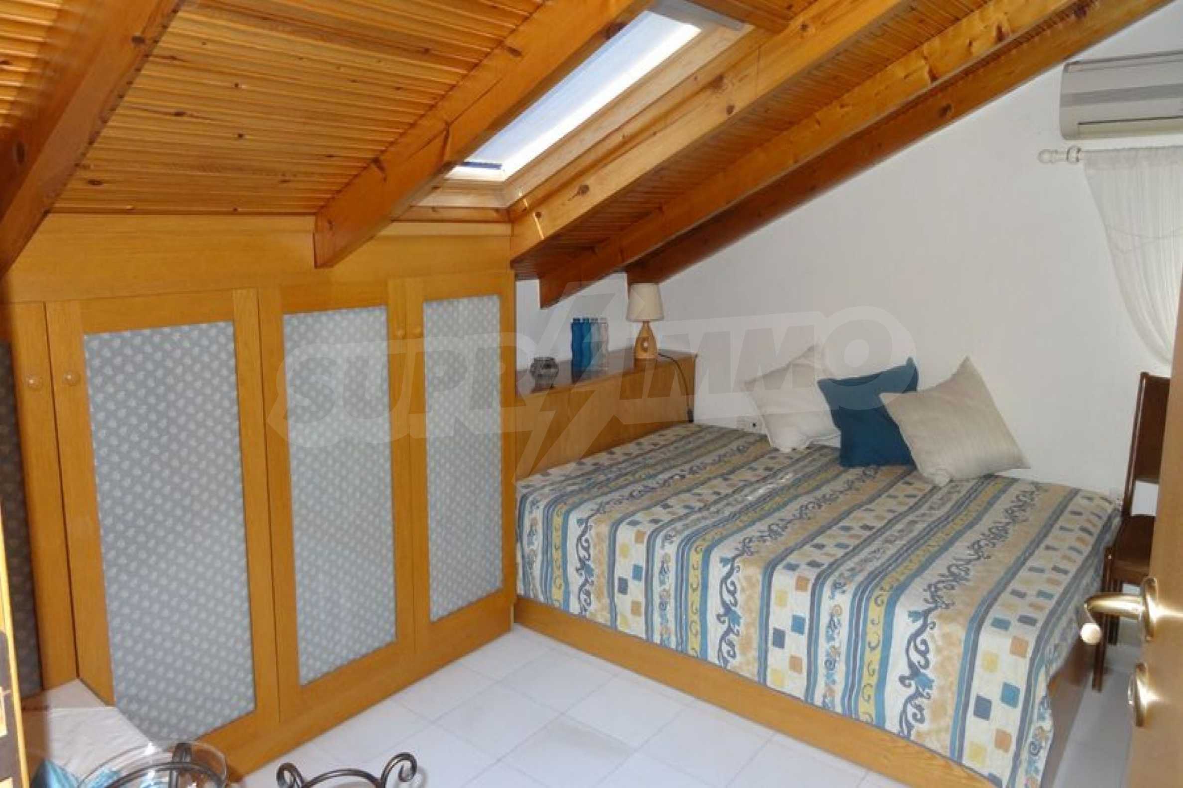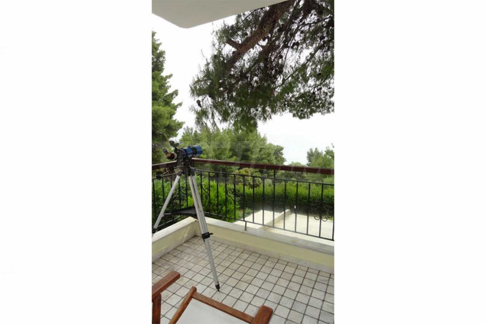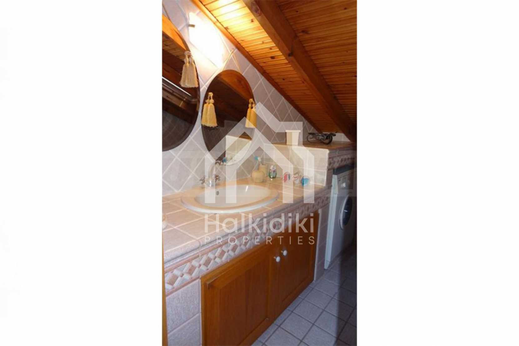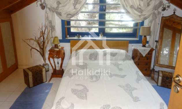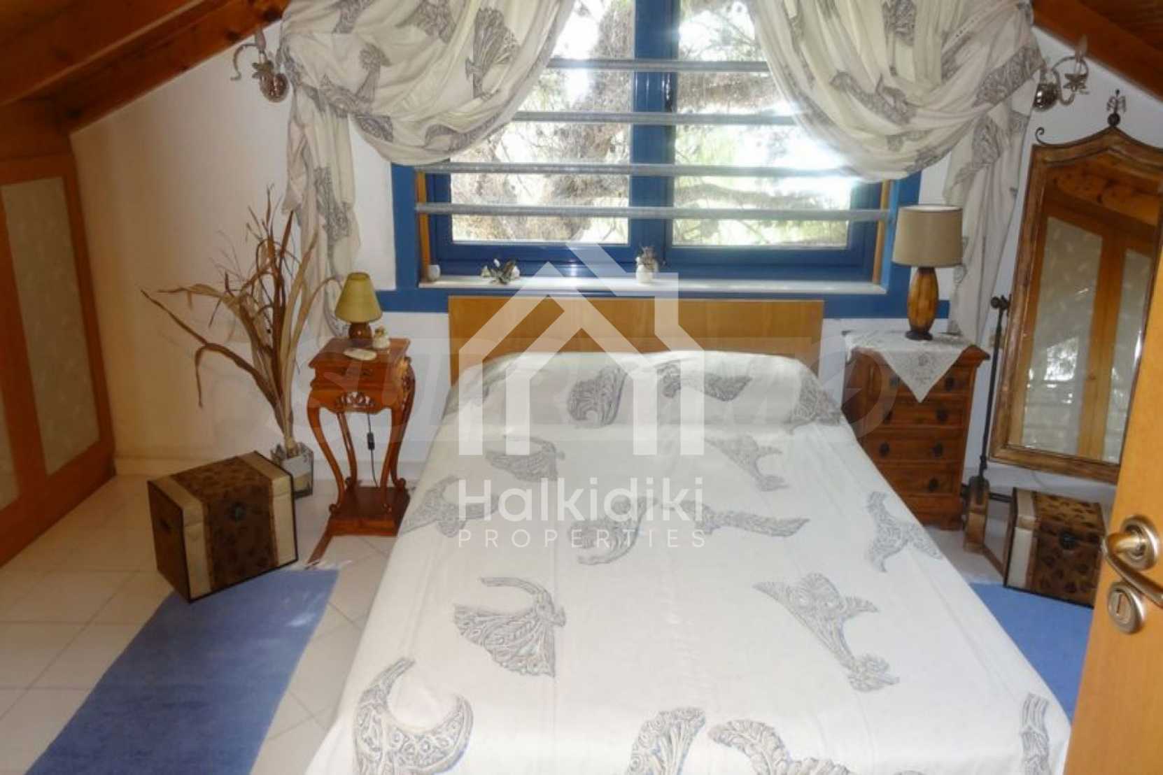Красив мезонет 130 кв.м, в Касандра, Халкидики, на хълм, с прекрасна гледка към морето и с източна ориентация. Имотът е на 80 метра от плажа и на 1000 метра от центъра на селото. Той е разделен на три нива, състоящ се от хол, свързан с кухнята, четири спални, две бани и килер. Разполага с голям балкон, мраморни подове, алуминиева дограма, блиндирана врата, паркинг и алармена система.