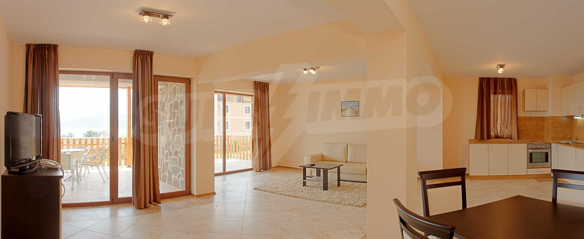 - Партерът се състои от голям хол, кухня, камина, баня с тоалетна, пред къщата има голяма веранда с изглед към морето.