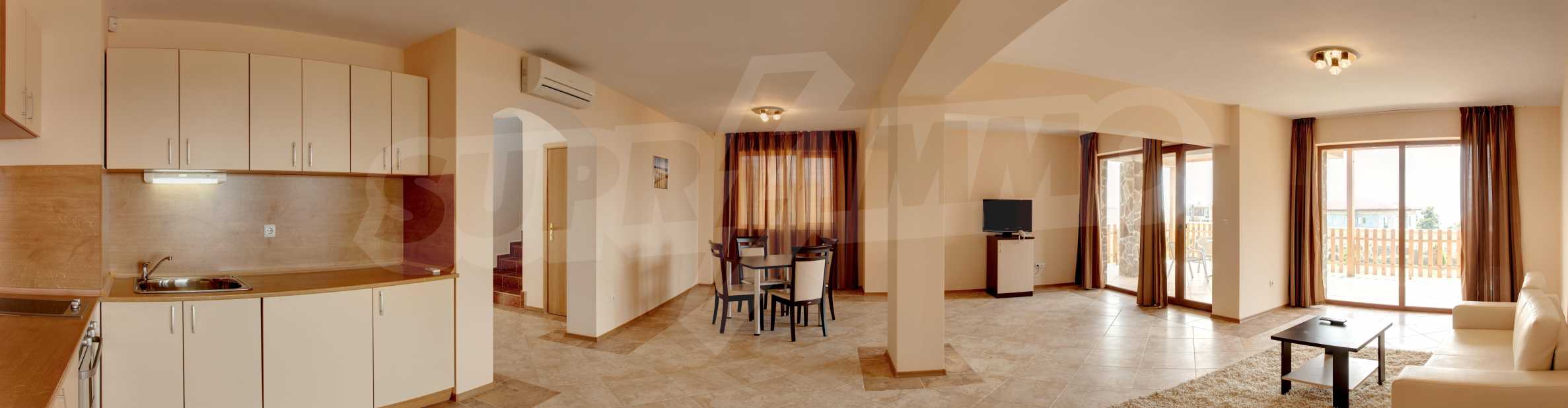 - Състояние - готова за нанасяне, с мебели и техника, масивна, изпълнена със стоманобетонна конструкция и тухли, с топлоизолация, климатик във всички помещения, напълно готов имот за ползването.