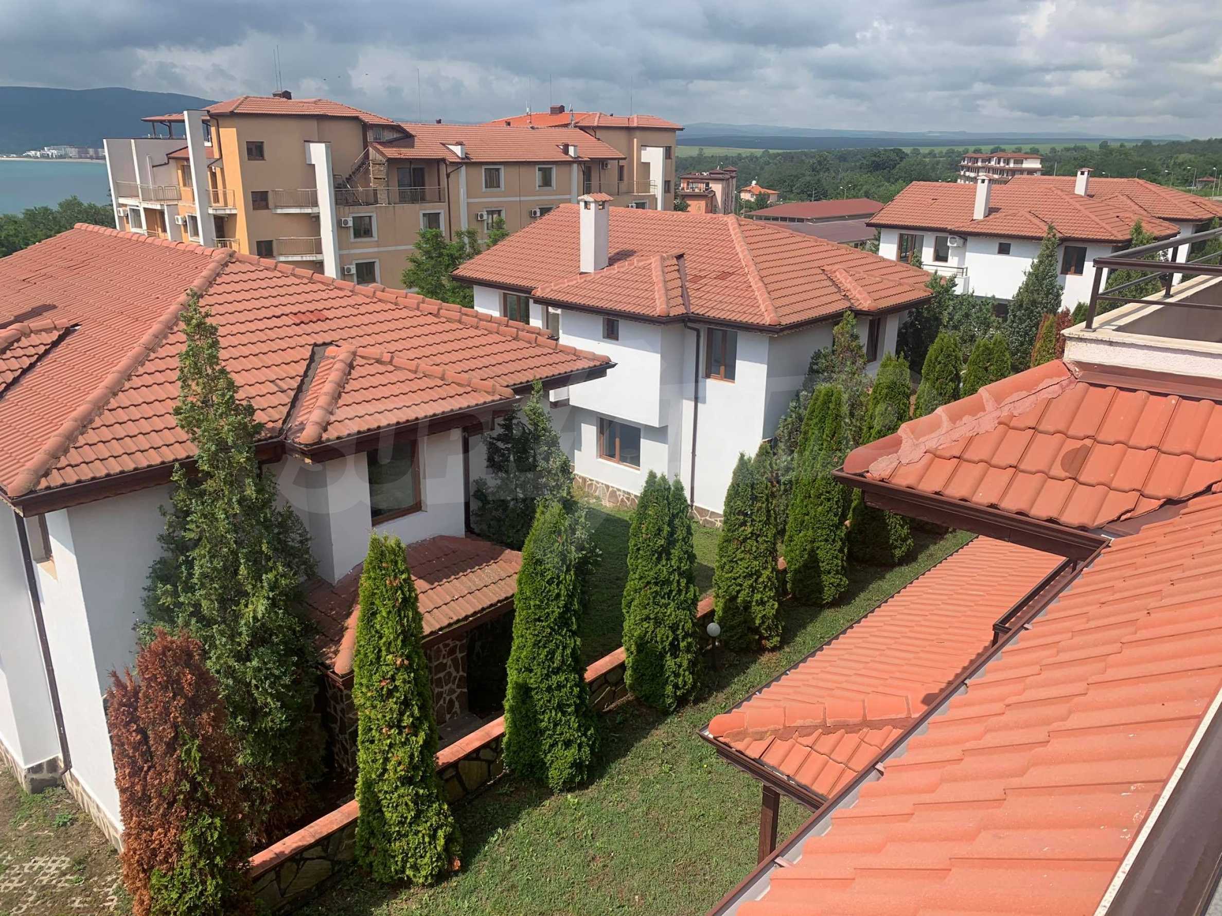 Къщата е построена в комплекс от 4 къщи с общ плувен басейн върху парцел от 1544 кв.м.