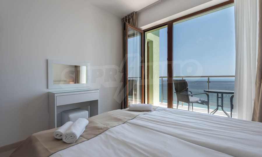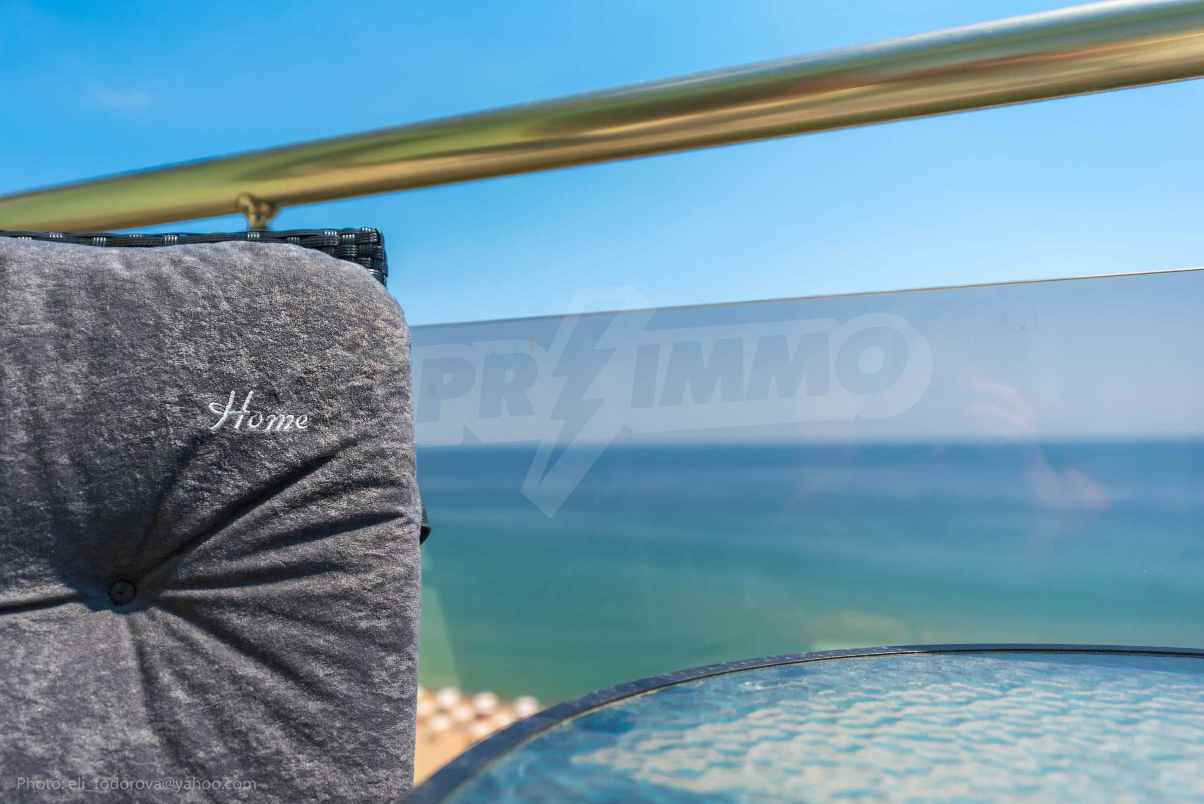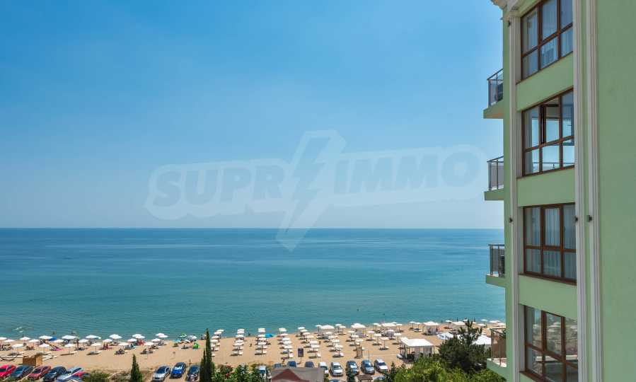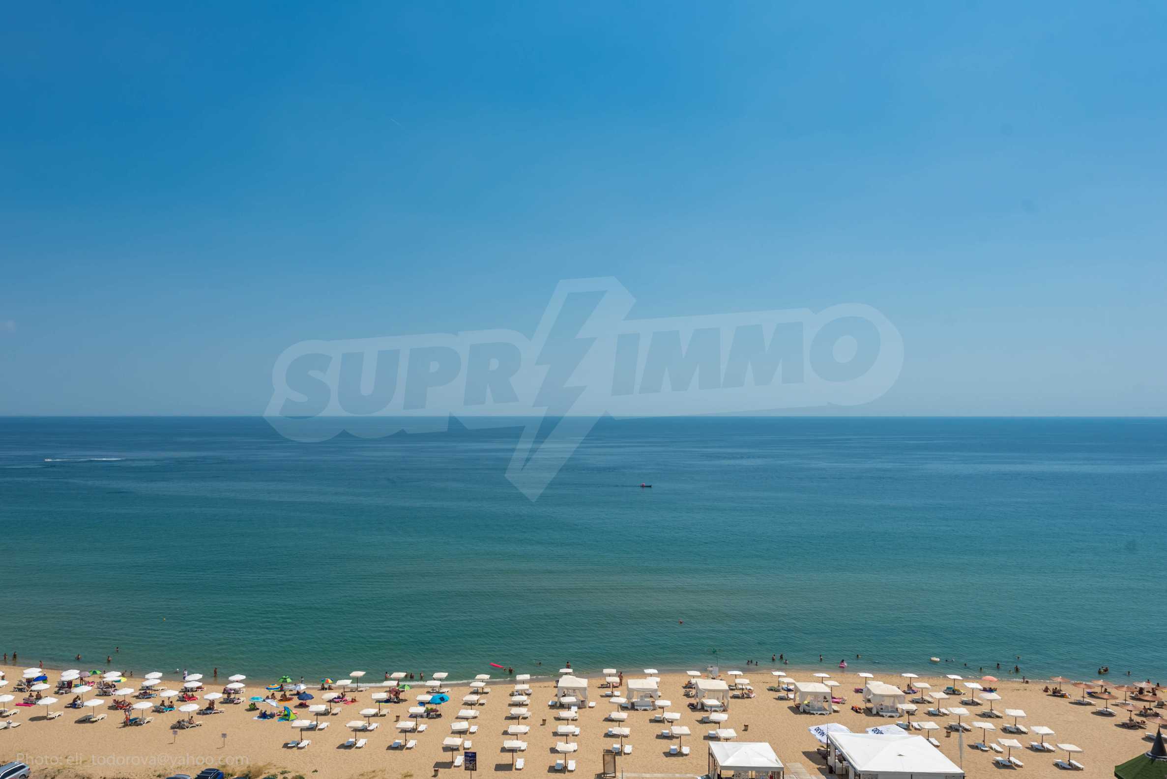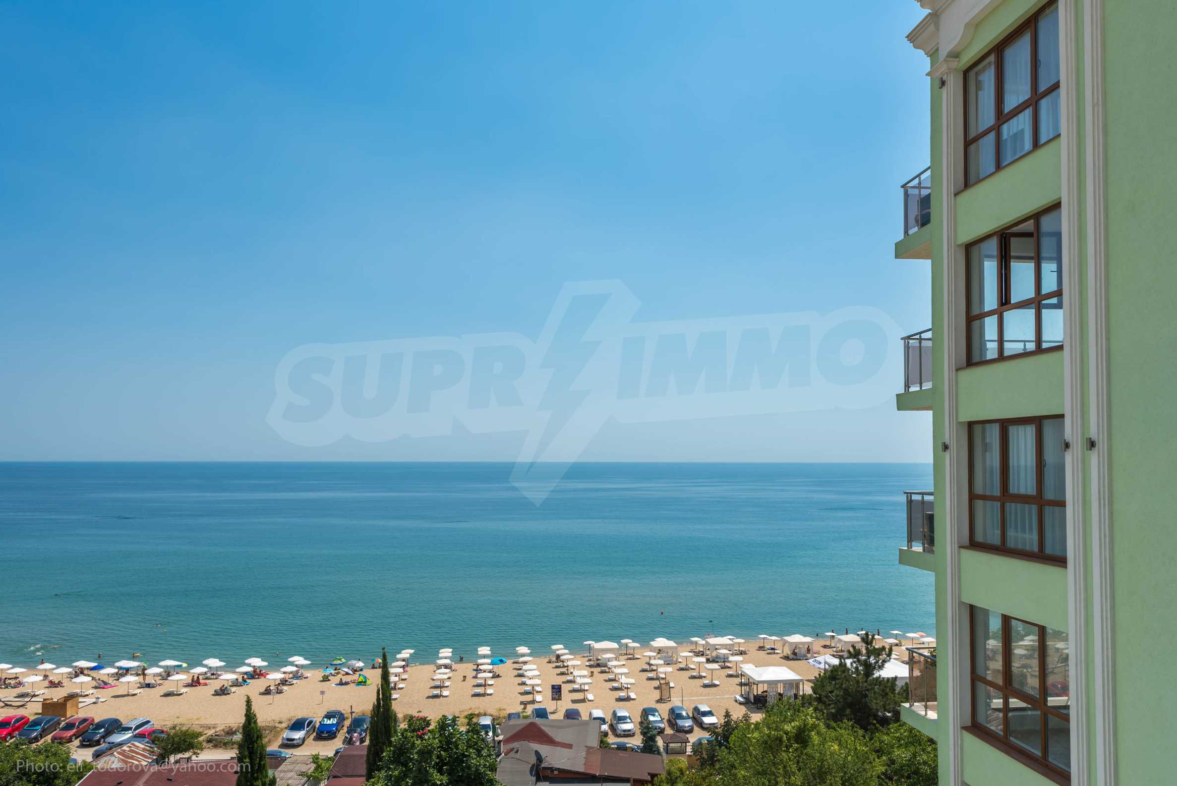 Фронтална гледка към морето и плажа - двустаен апартамент под наем, в нова сграда на брега на морето.