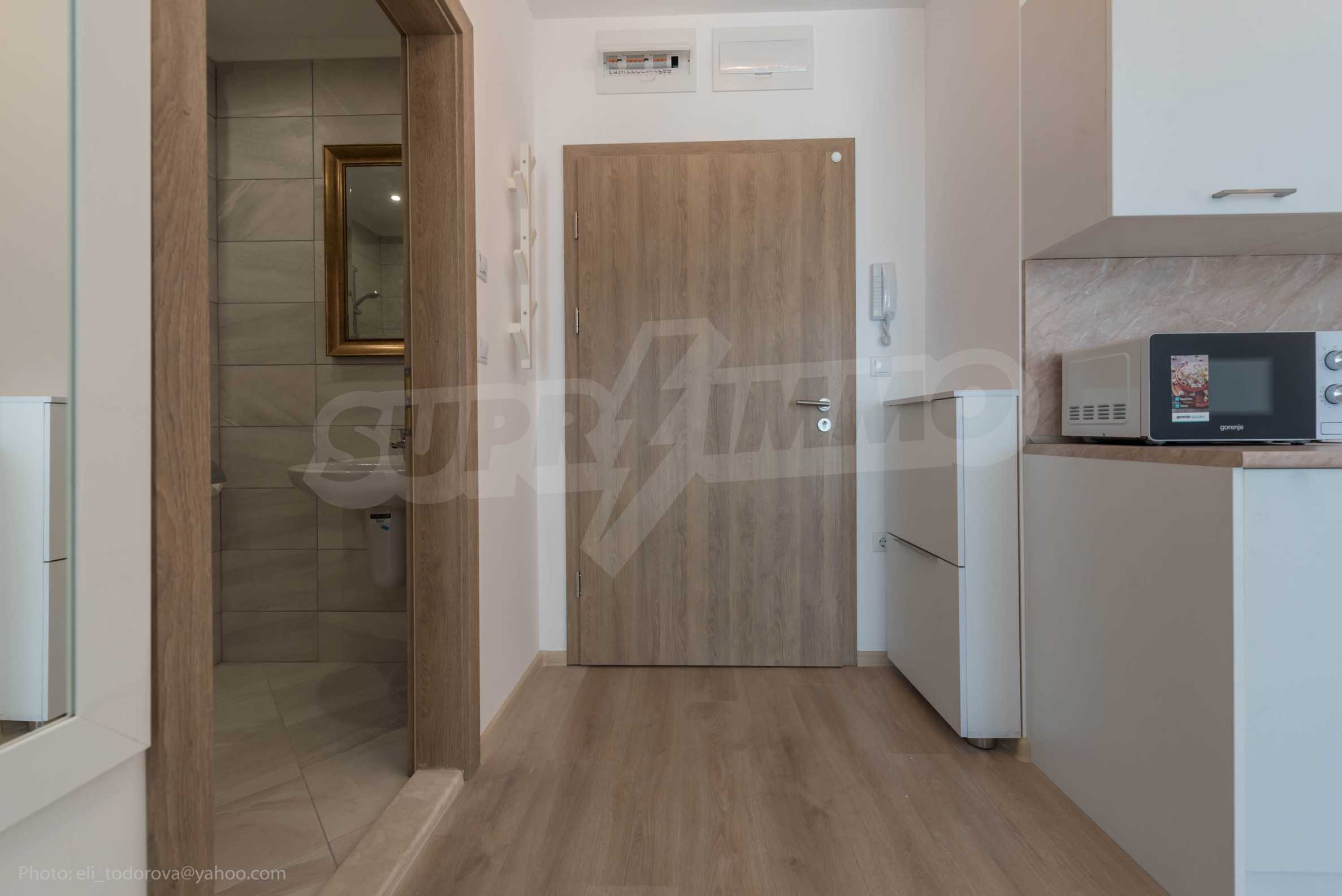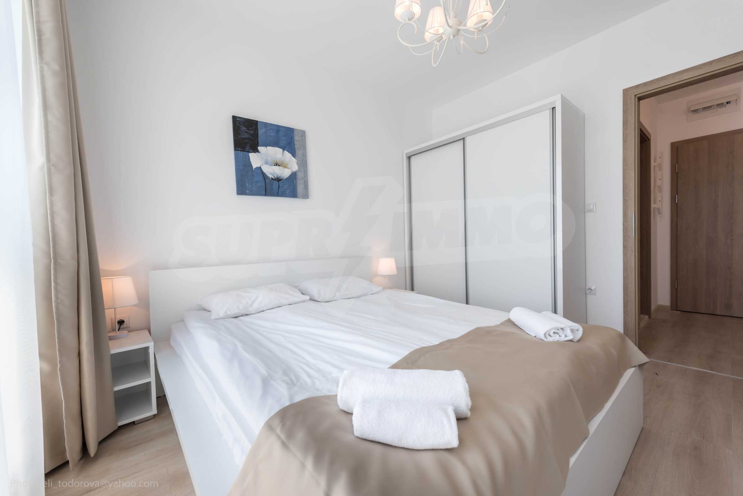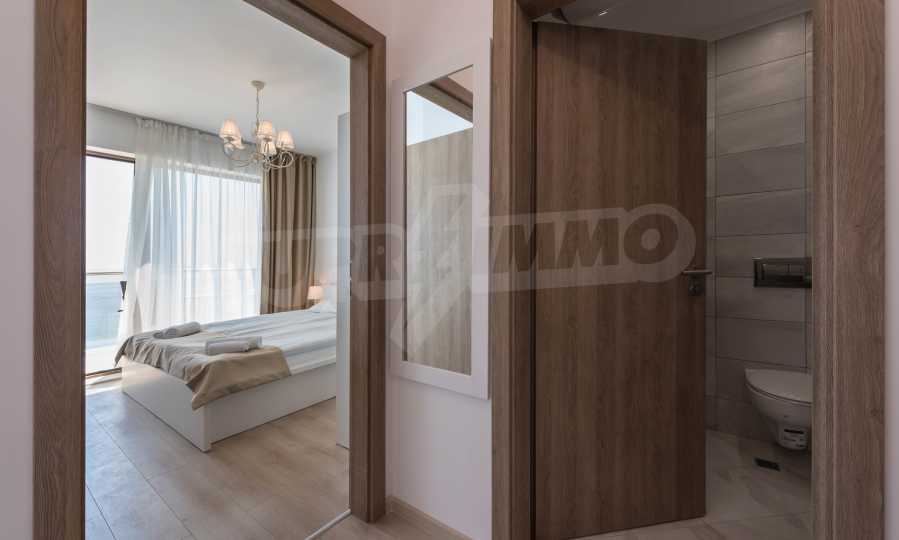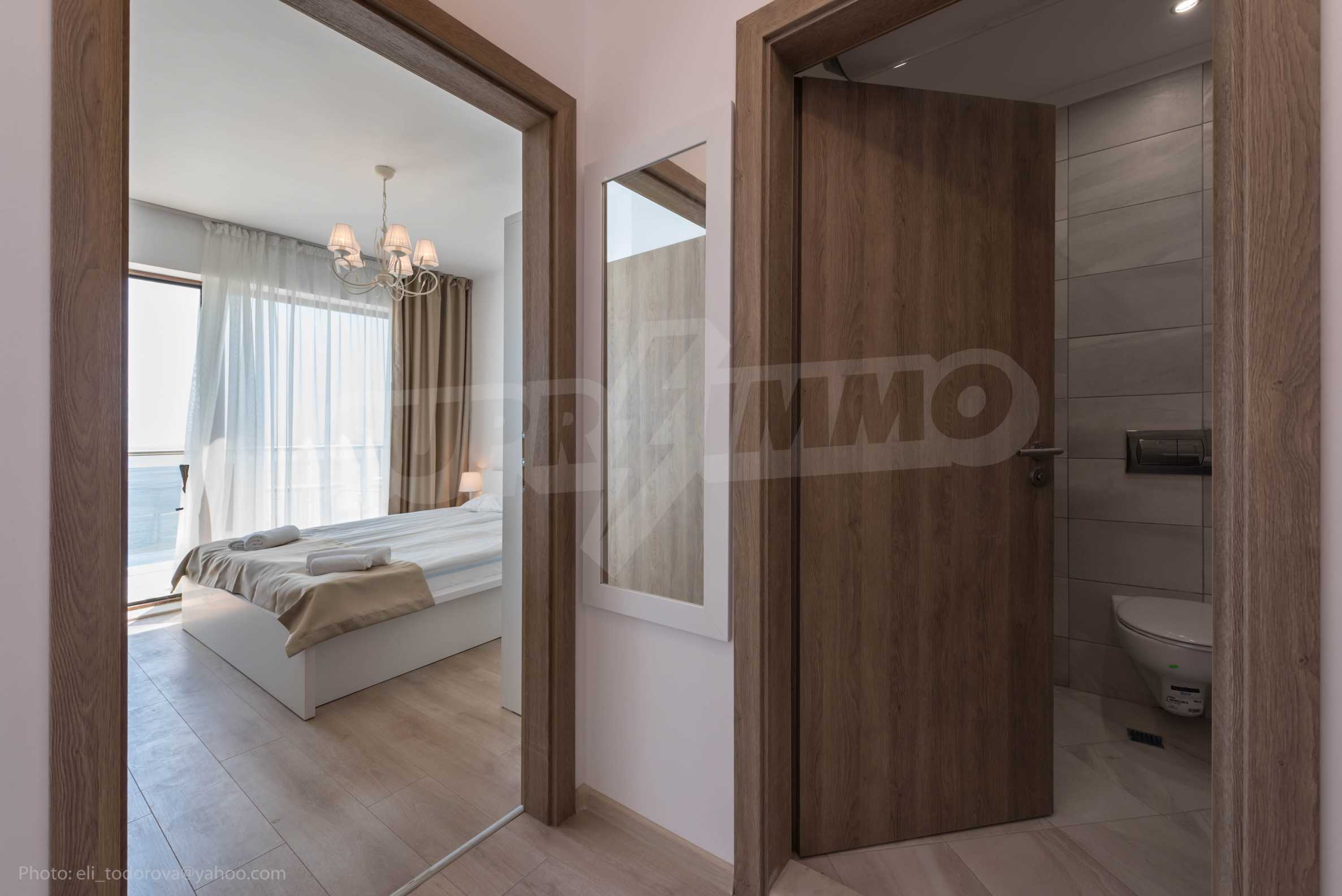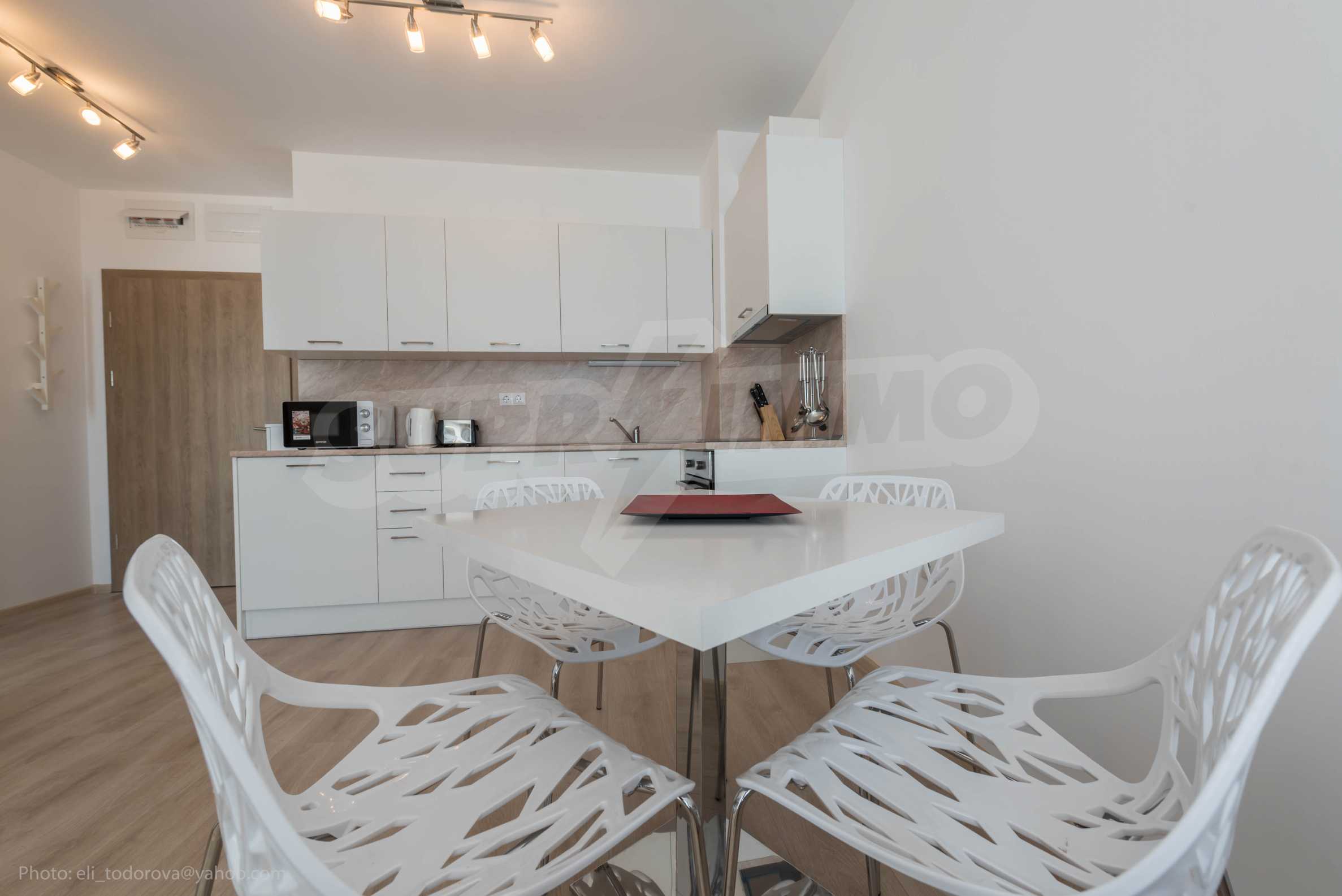Апартаментът се състои от светла всекидневна с кухня, спалня, баня и тераса с изглед към морето. Кухнята е напълно оборудвана с шкафове и вградени електрически уреди - хладилник, фурна, котлони и аспиратор, в хола има инверторен климатик.