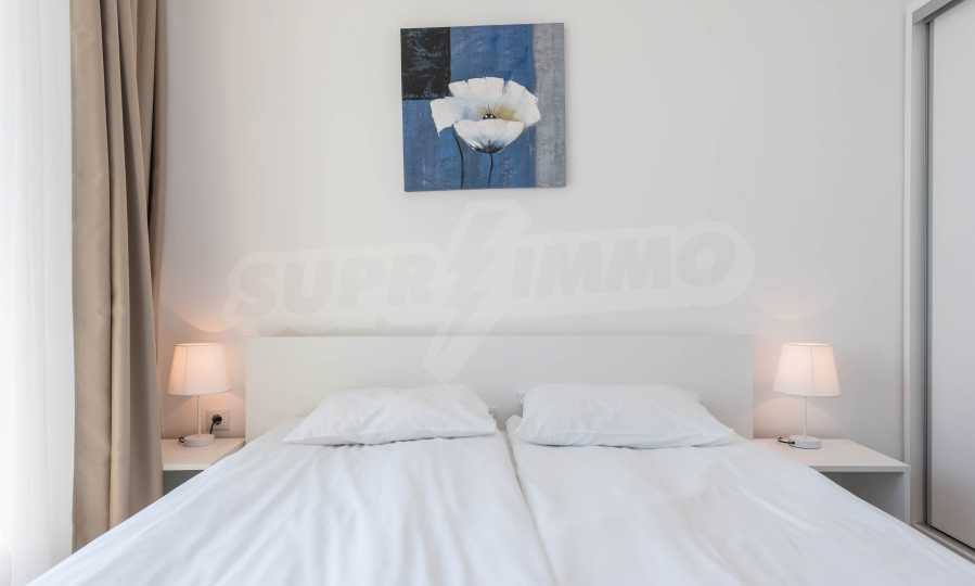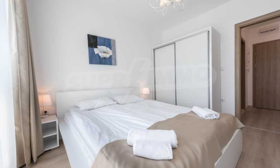 Представяме мебелиран двустаен апартамент под наем в жилищен комплекс на първа линия, само 3 километра от известните курорти "Златни пясъци" и "Св. Св. Константин и Елена".