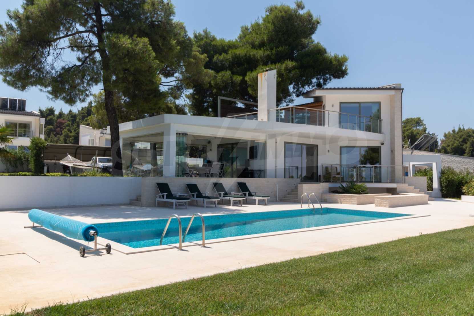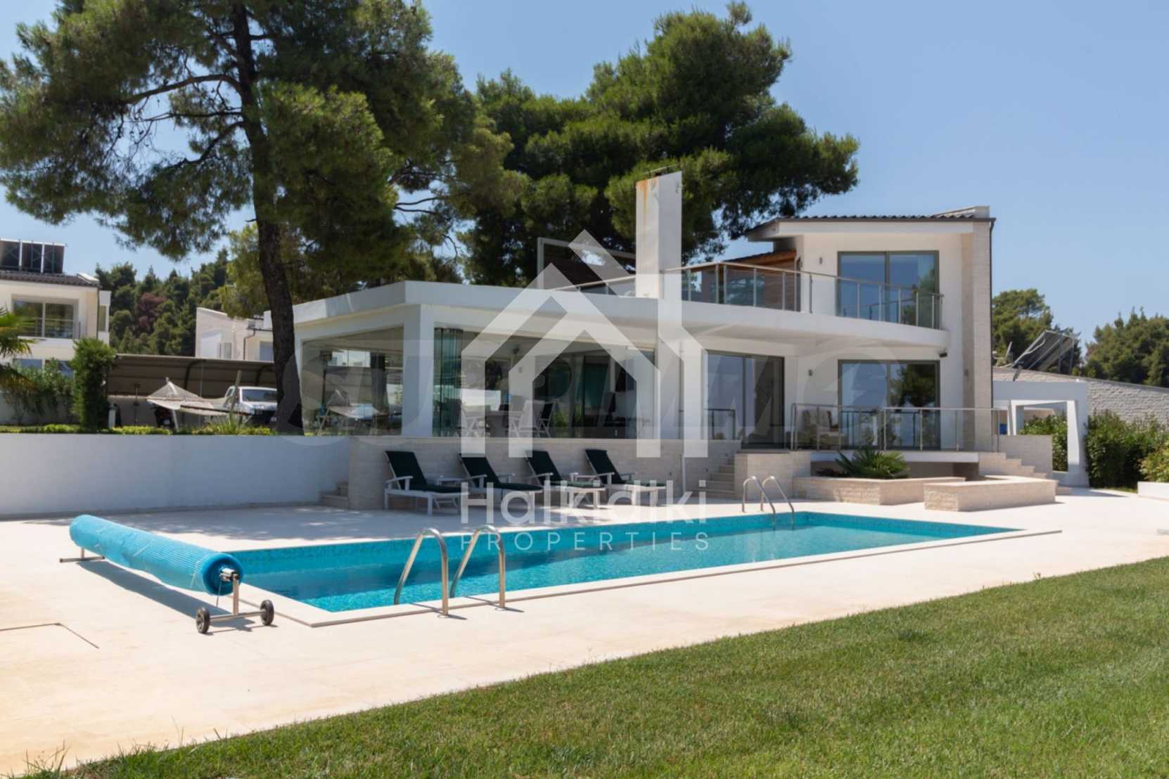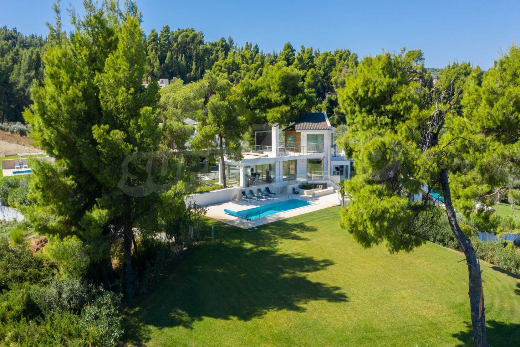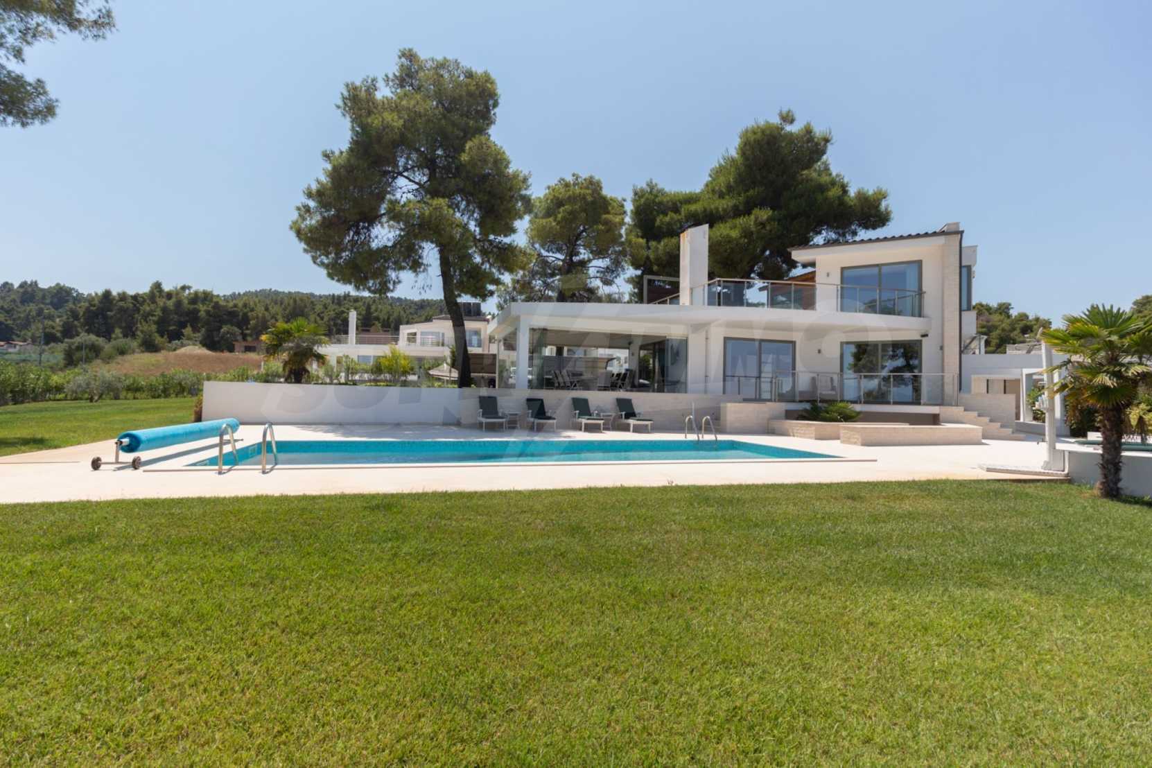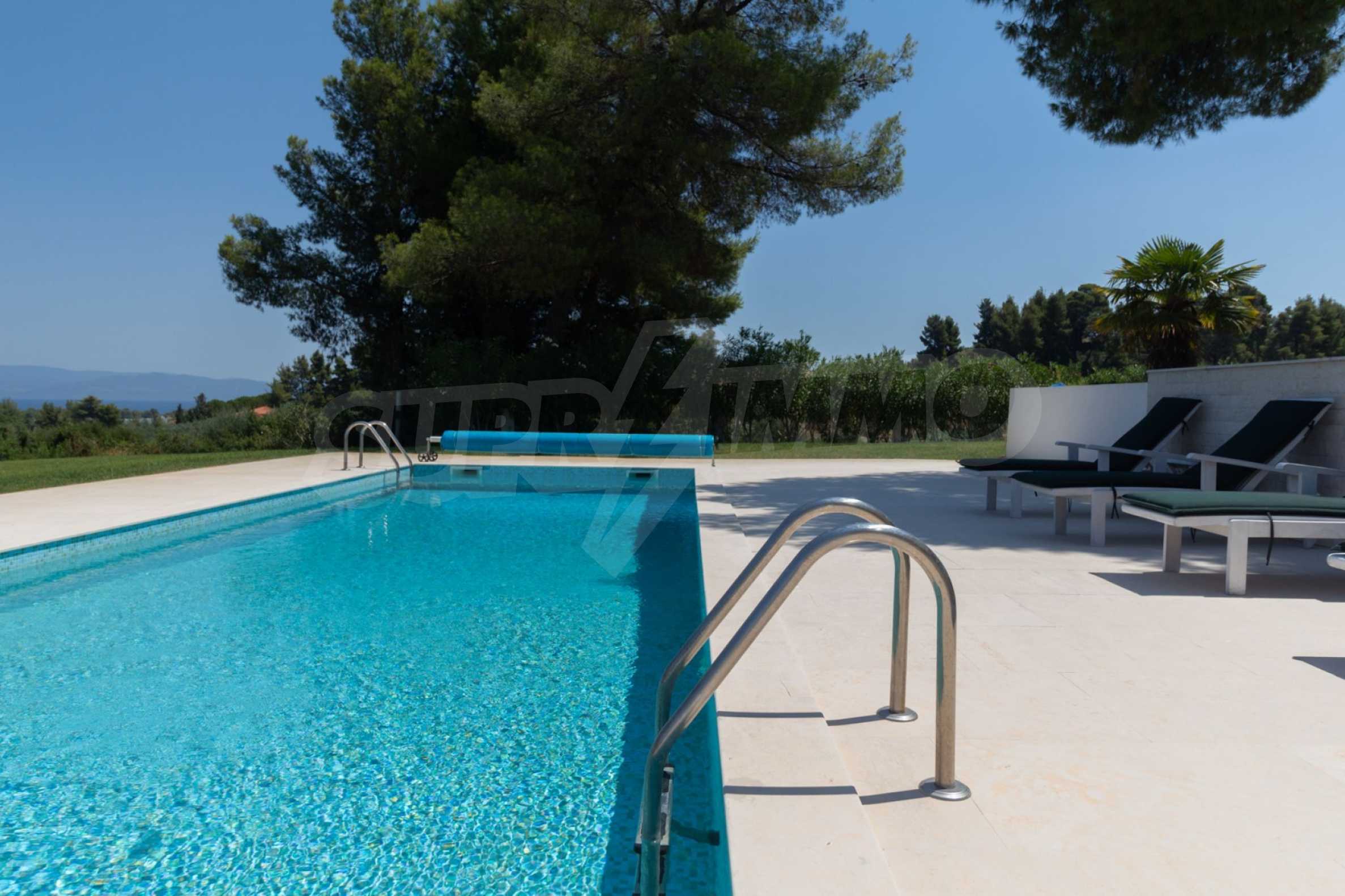 Представяме Ви луксозна, модерна вила със собствен басейн, разположена в новопостроен, малък, затворен жилищен комплекс в Пефкохори, Касандра.