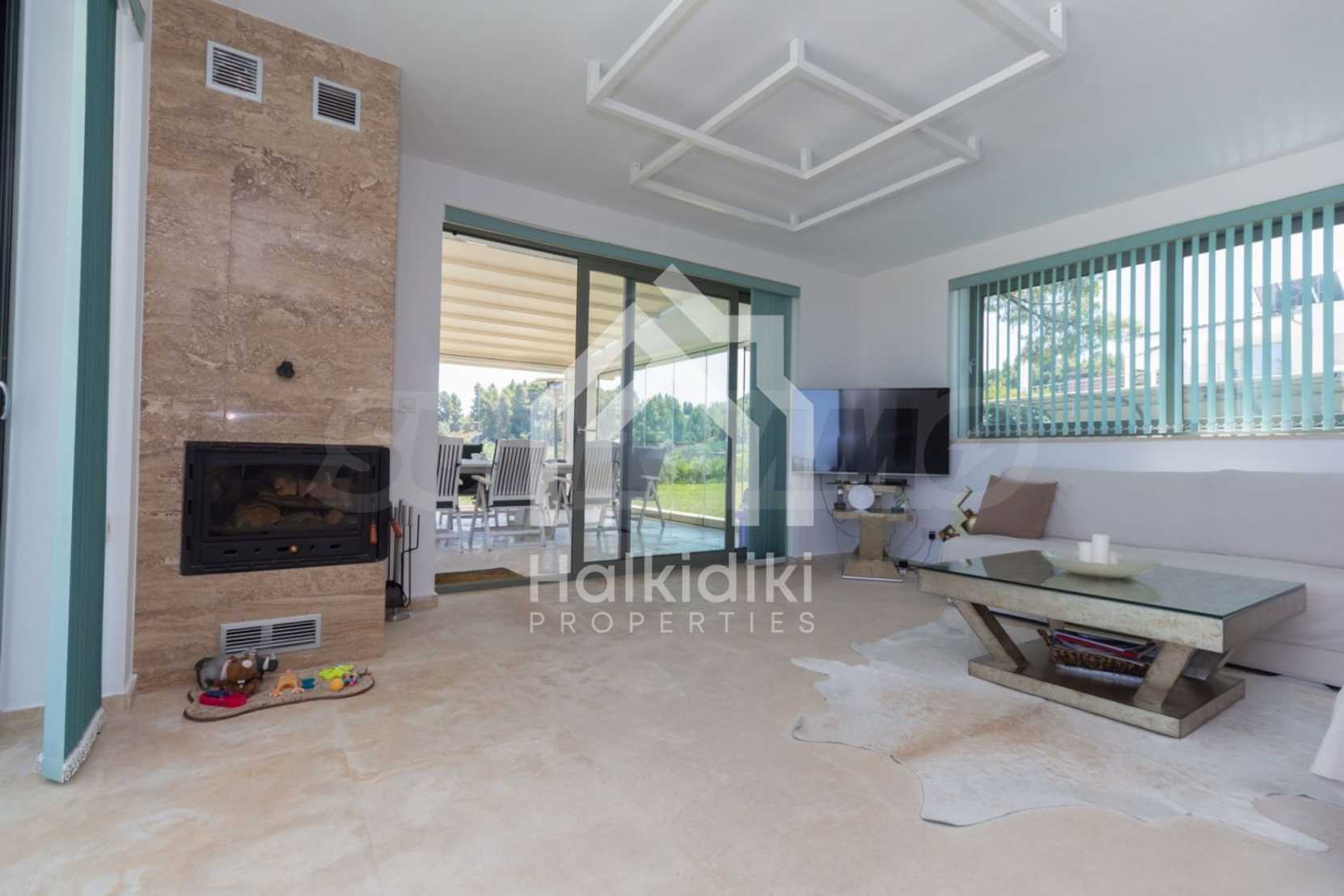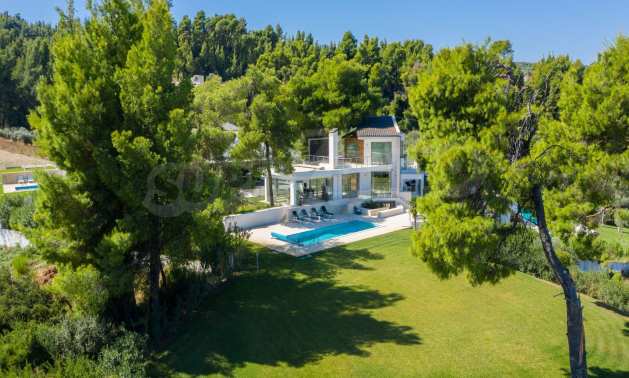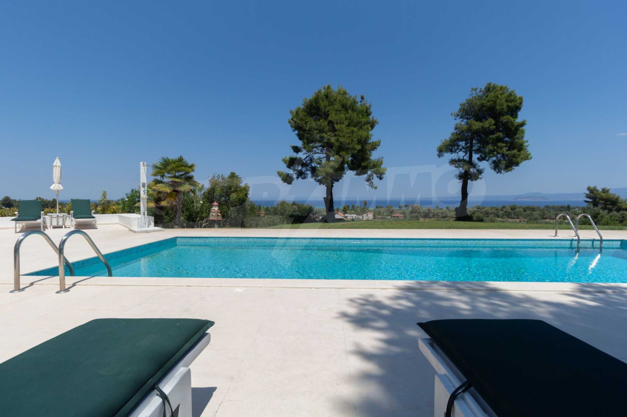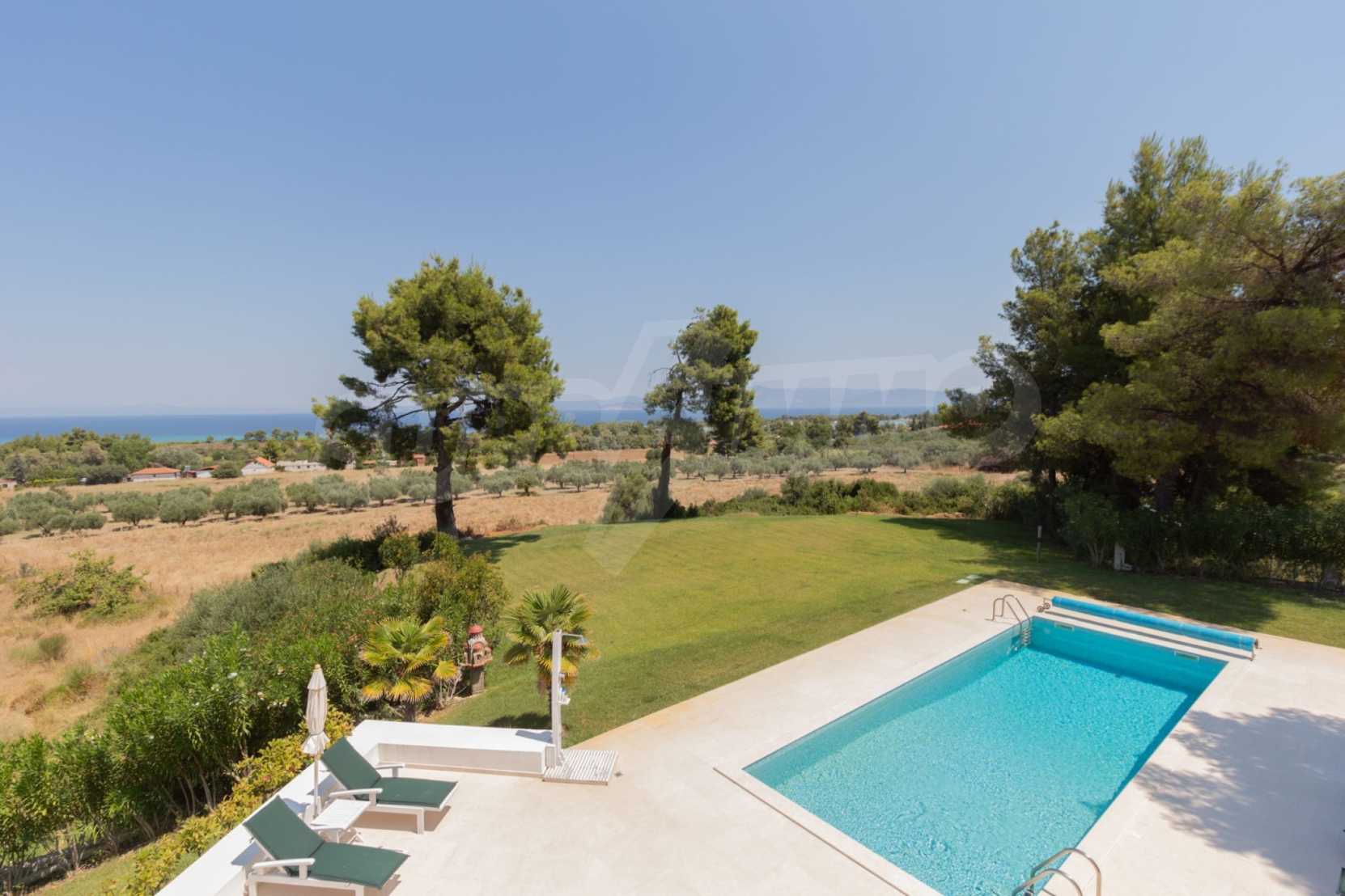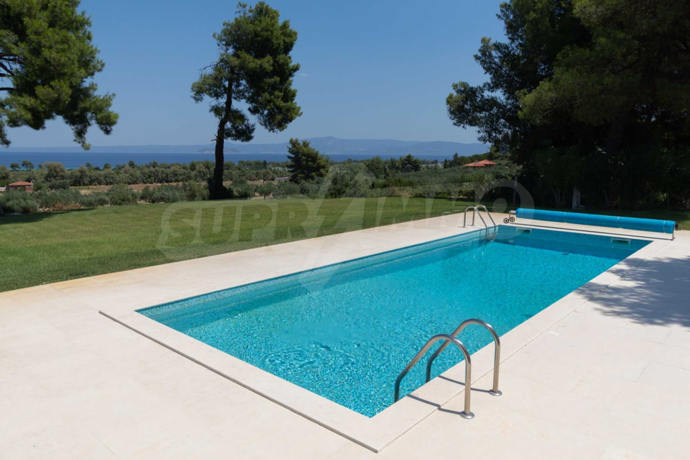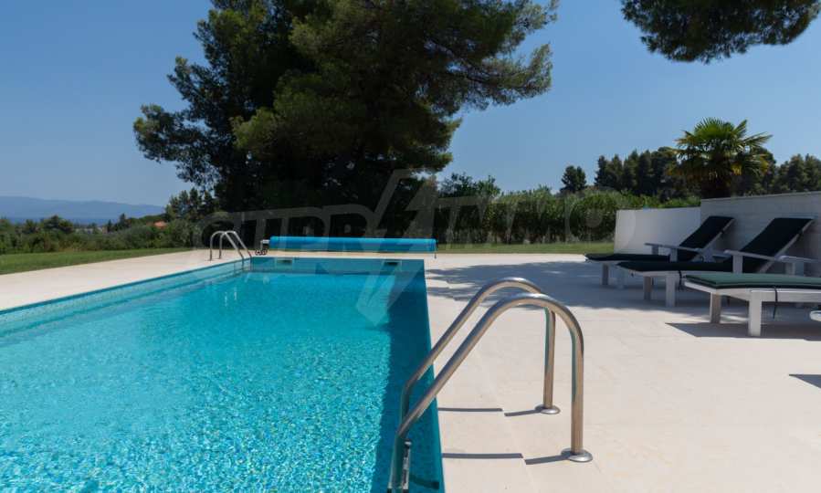 Представяме Ви луксозна, модерна вила със собствен басейн, разположена в новопостроен, малък, затворен жилищен комплекс в Пефкохори, Касандра.