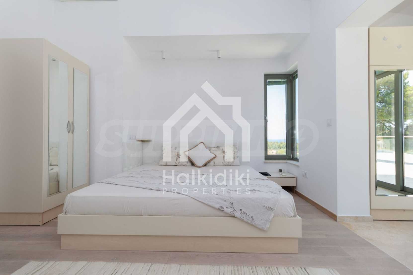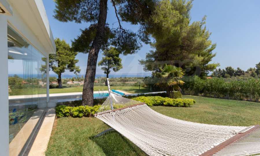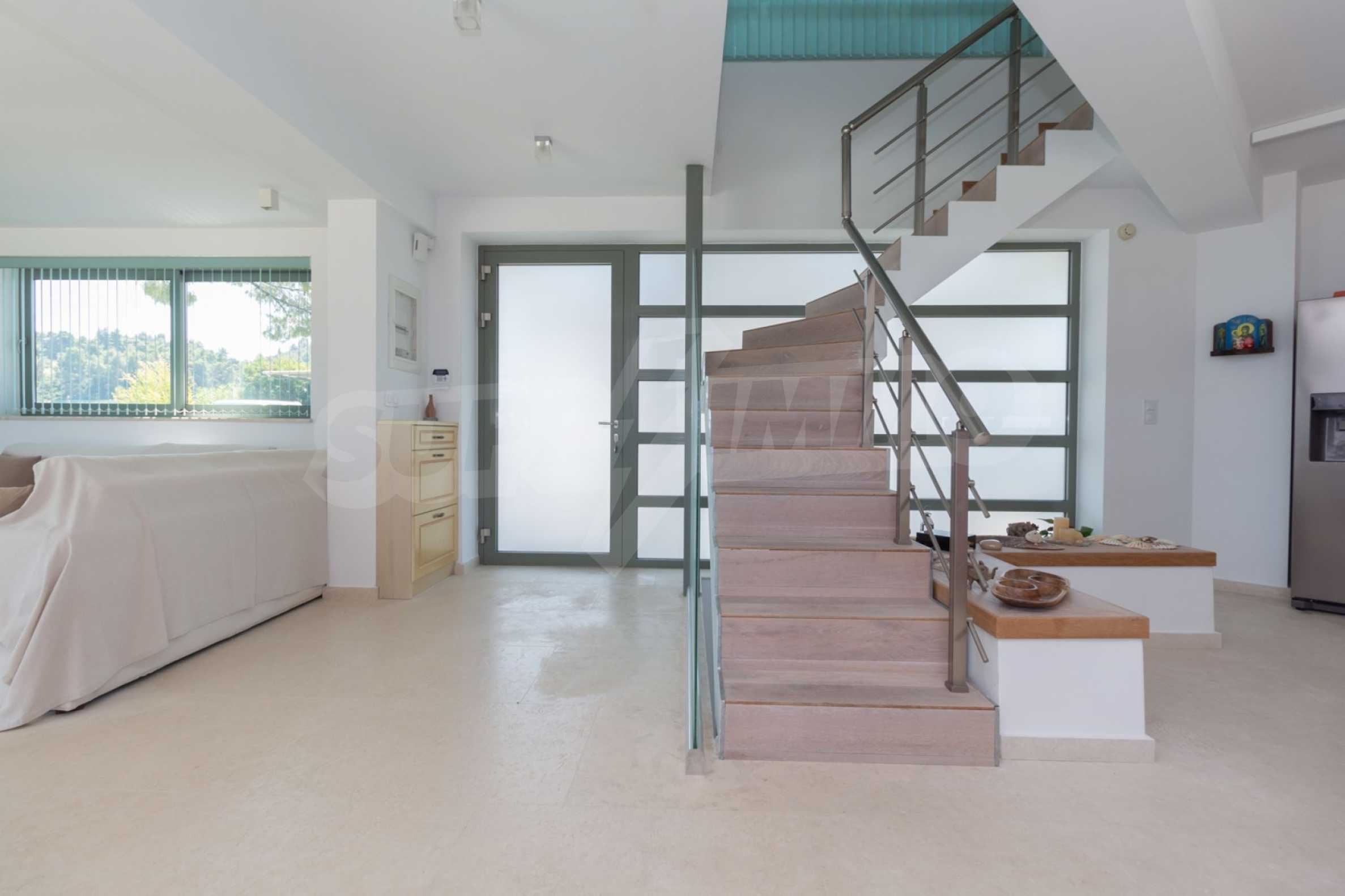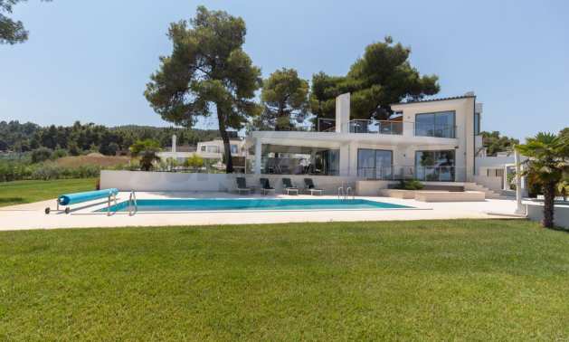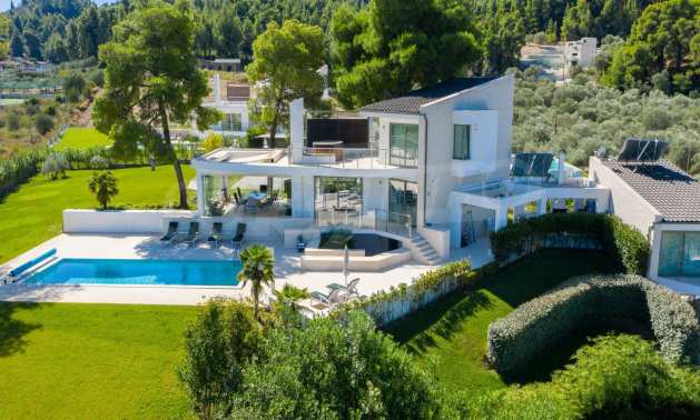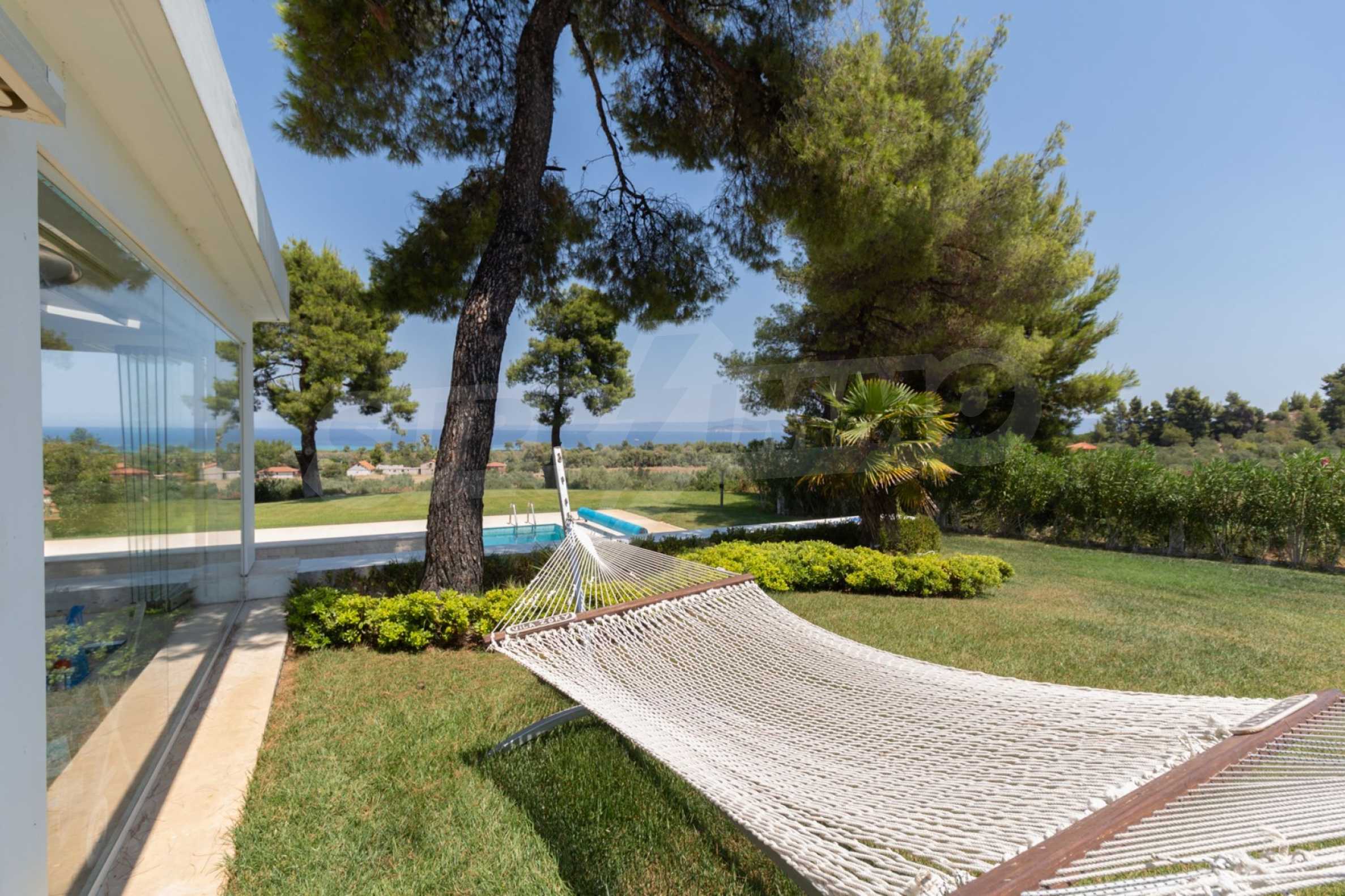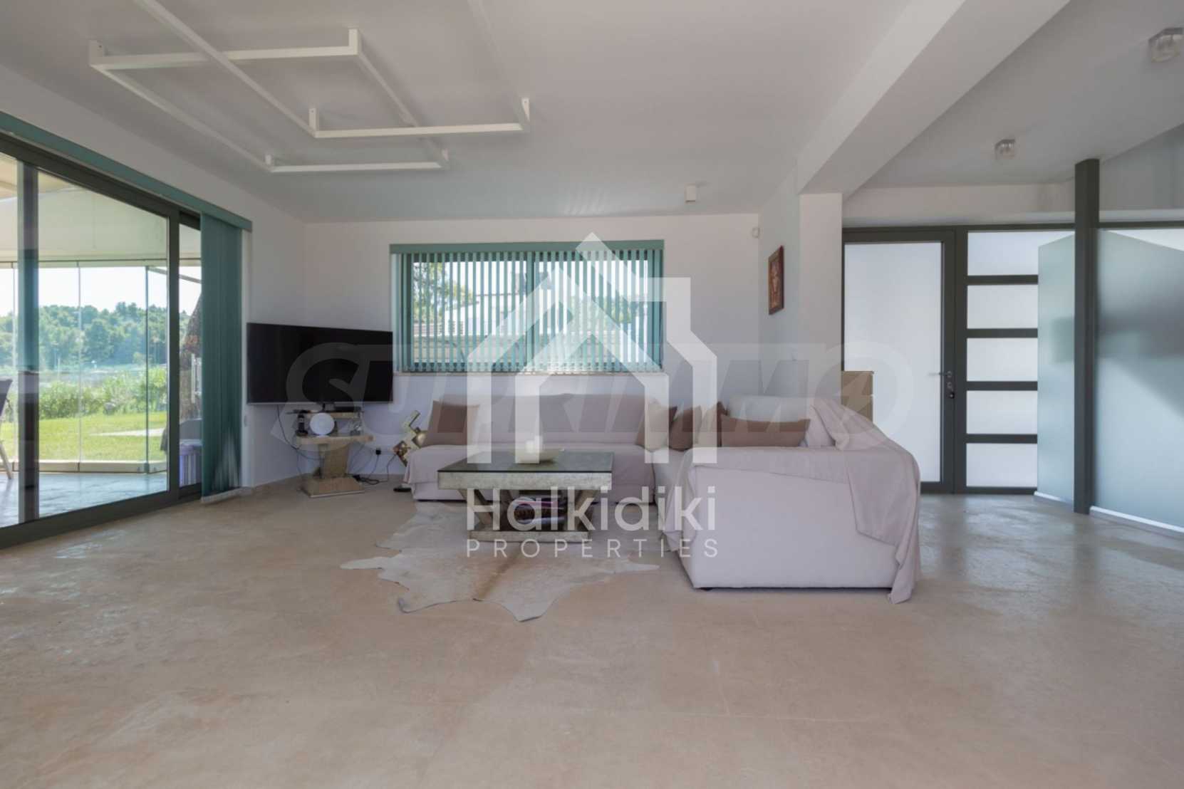 Представяме Ви луксозна, модерна вила със собствен басейн, разположена в новопостроен, малък, затворен жилищен комплекс в Пефкохори, Касандра.