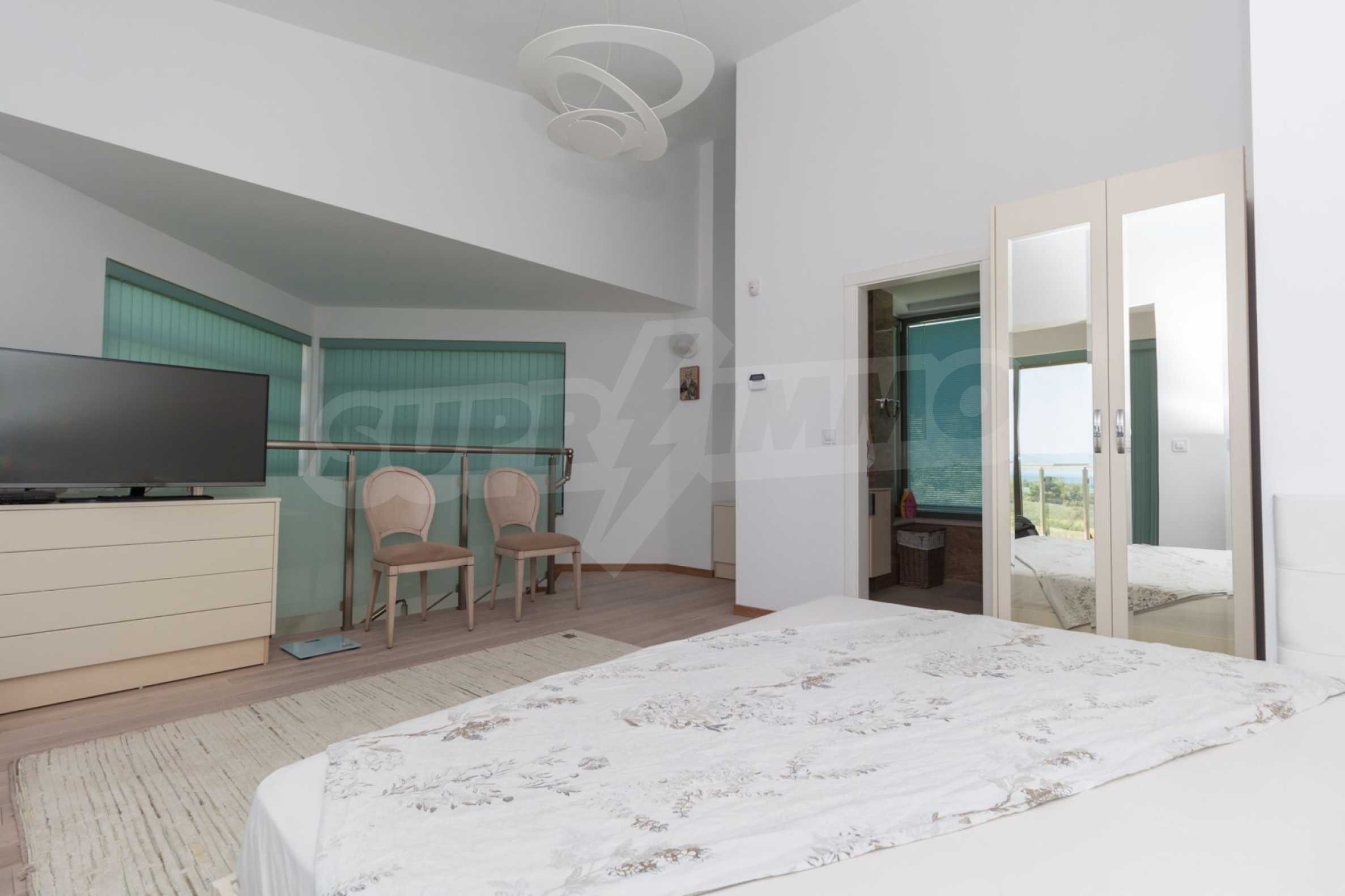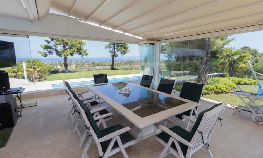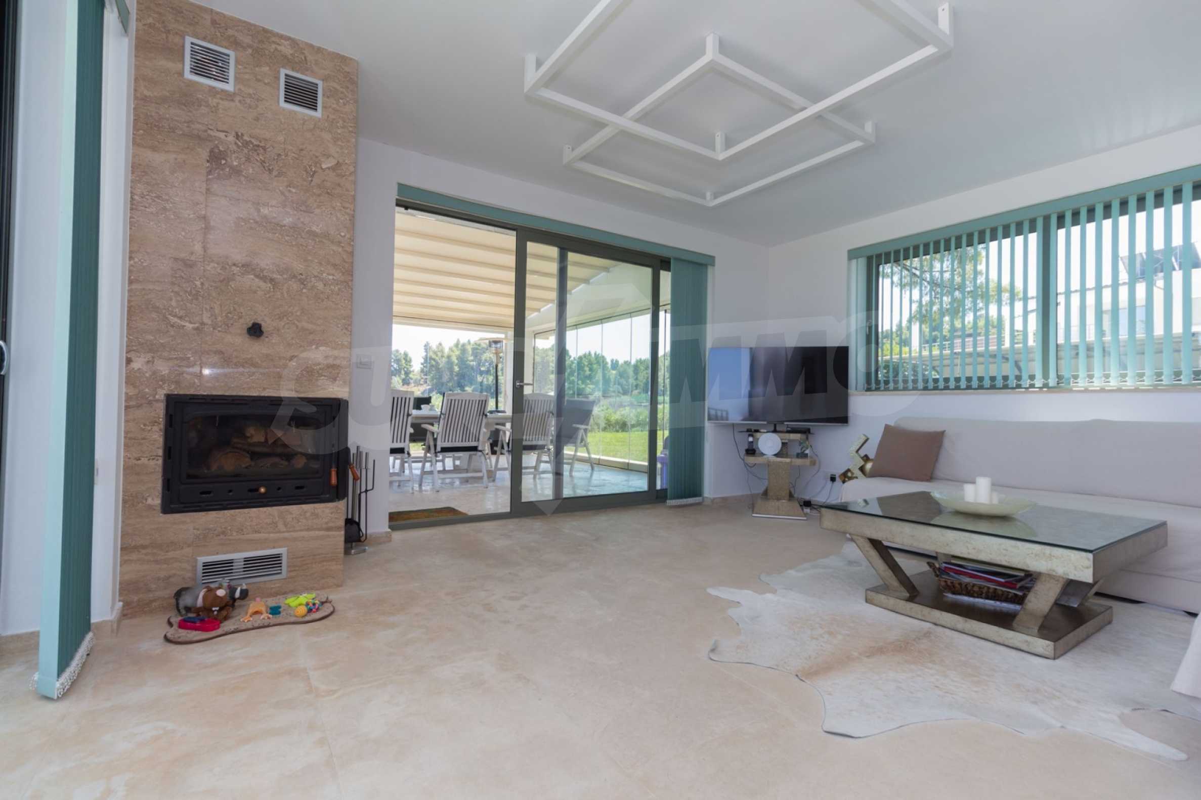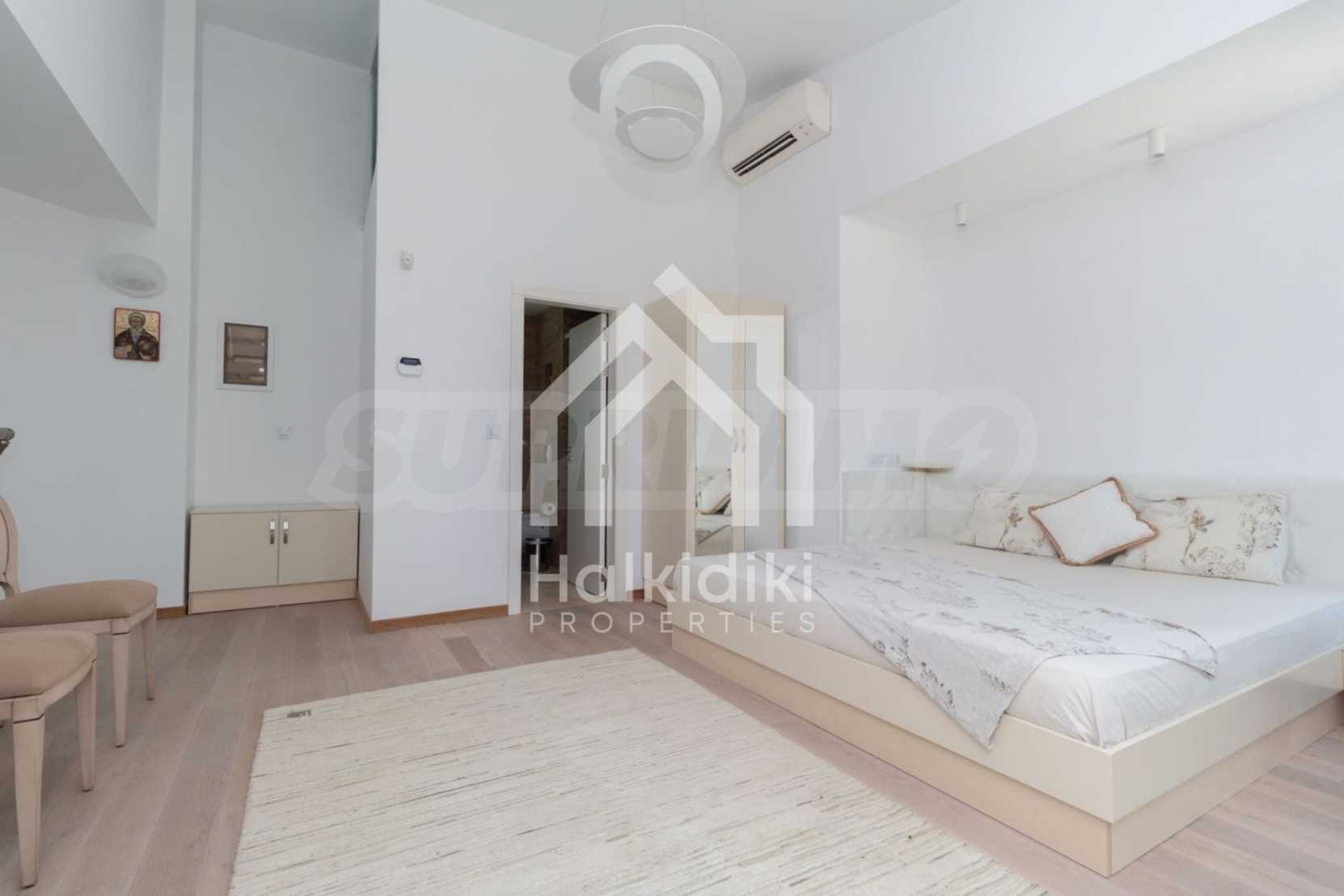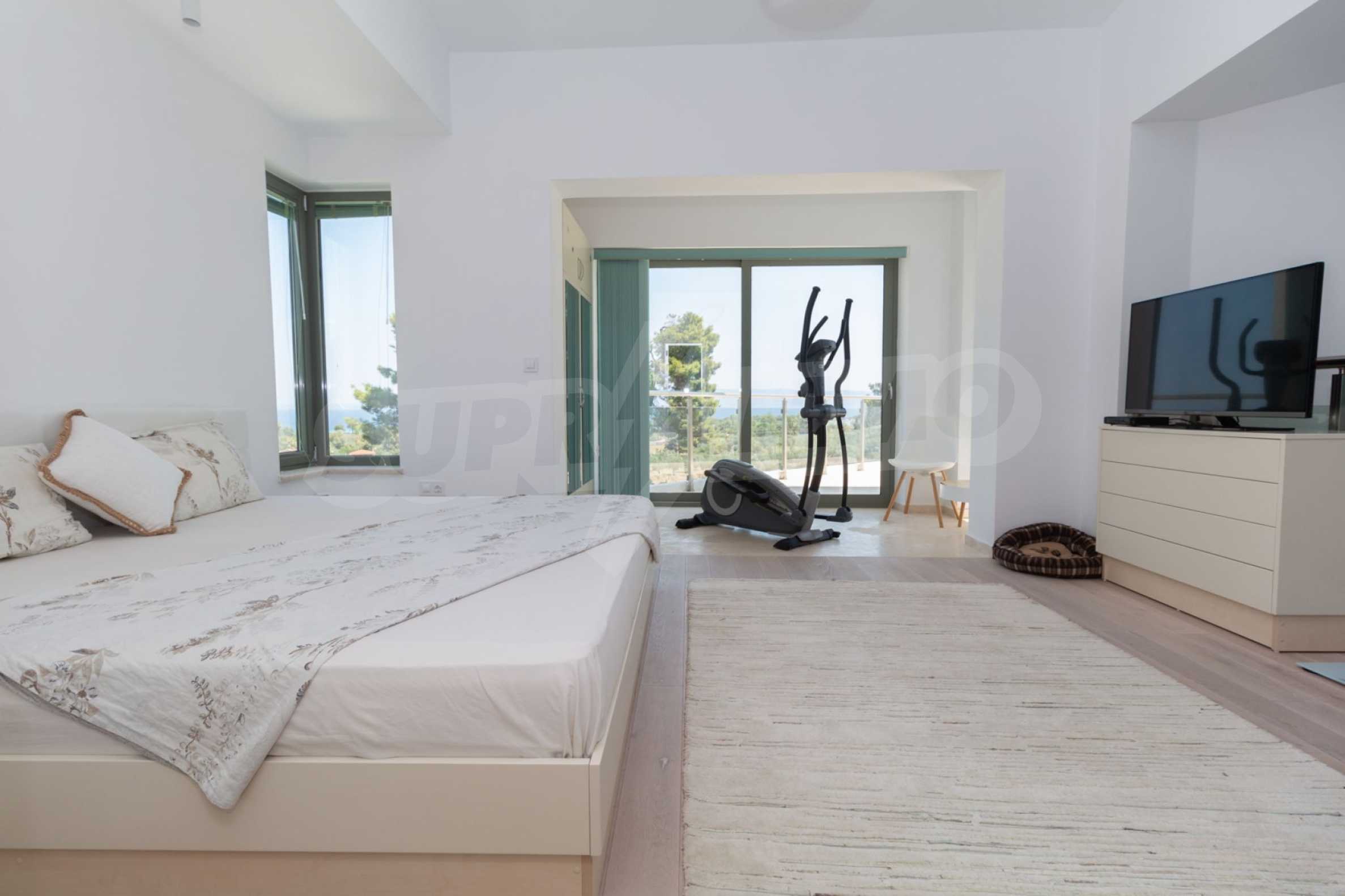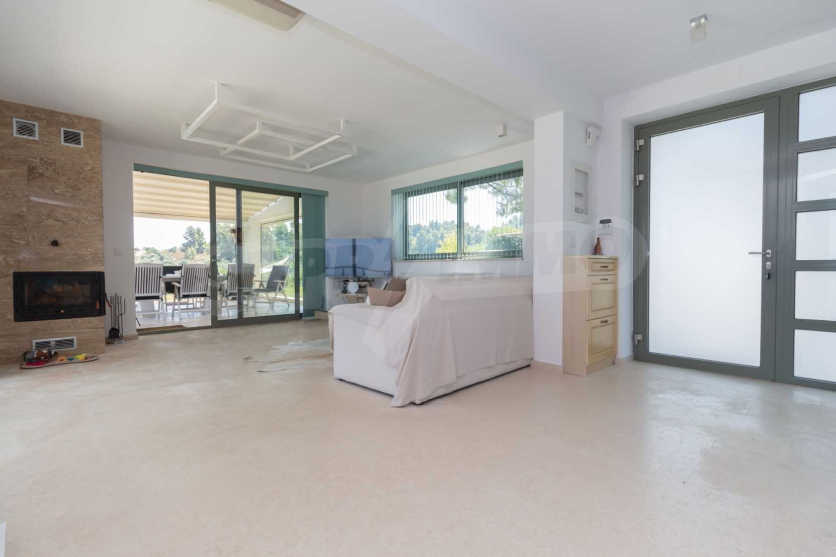 Представяме Ви луксозна, модерна вила със собствен басейн, разположена в новопостроен, малък, затворен жилищен комплекс в Пефкохори, Касандра.