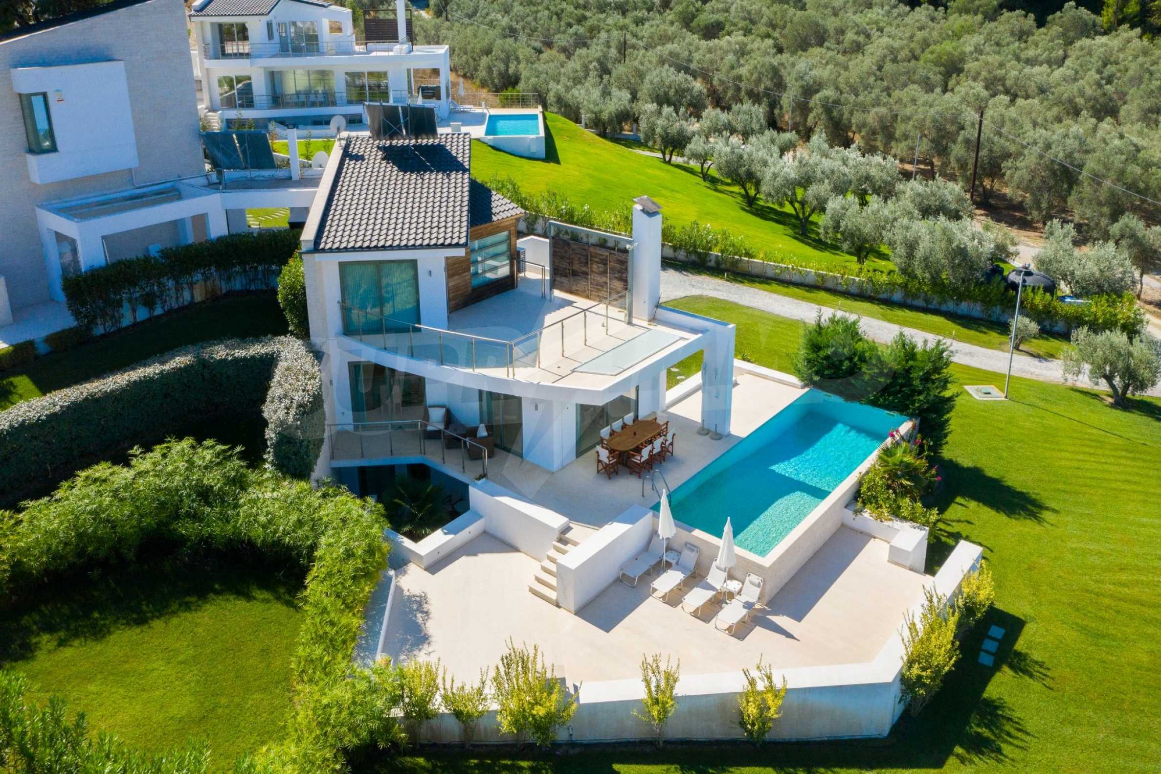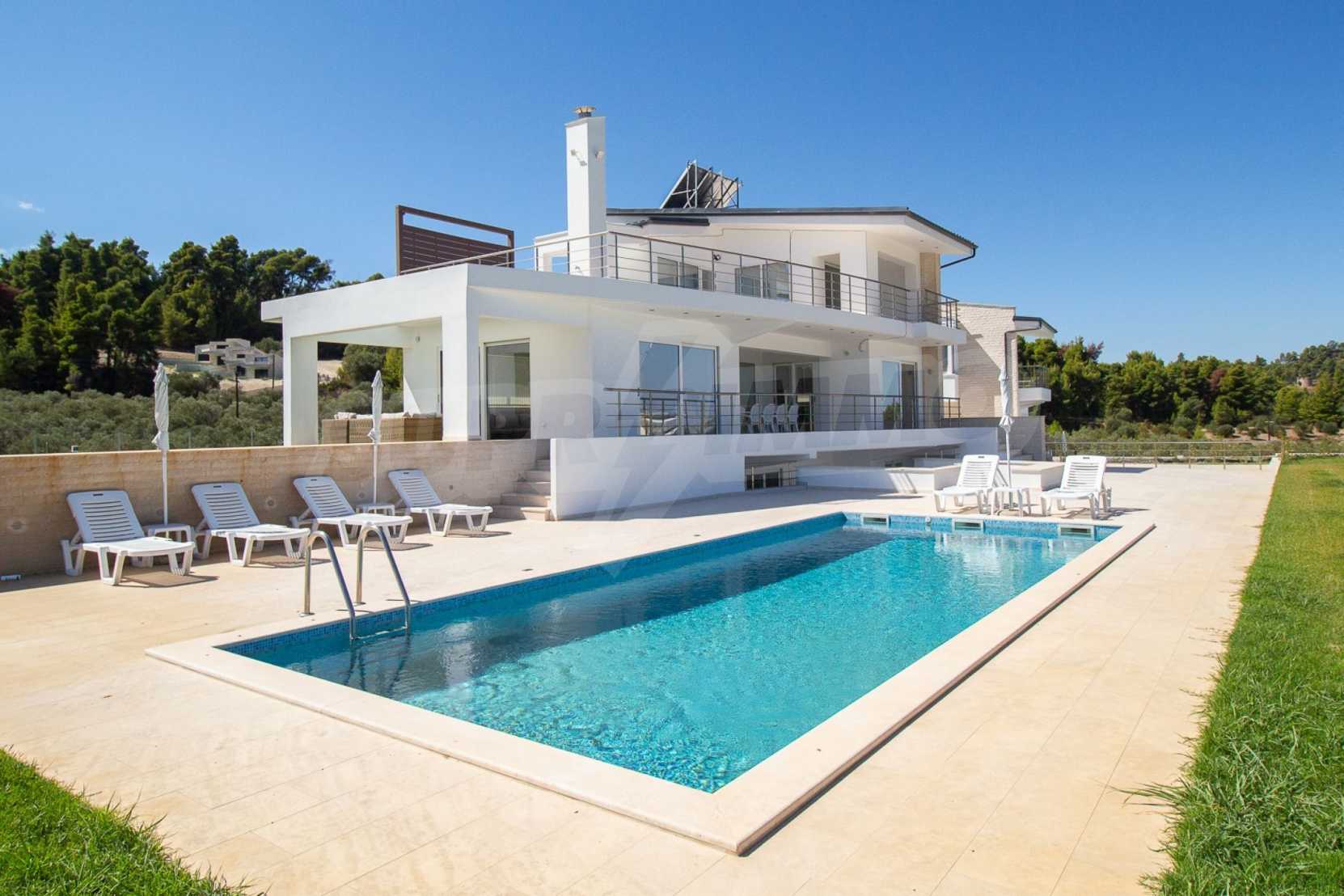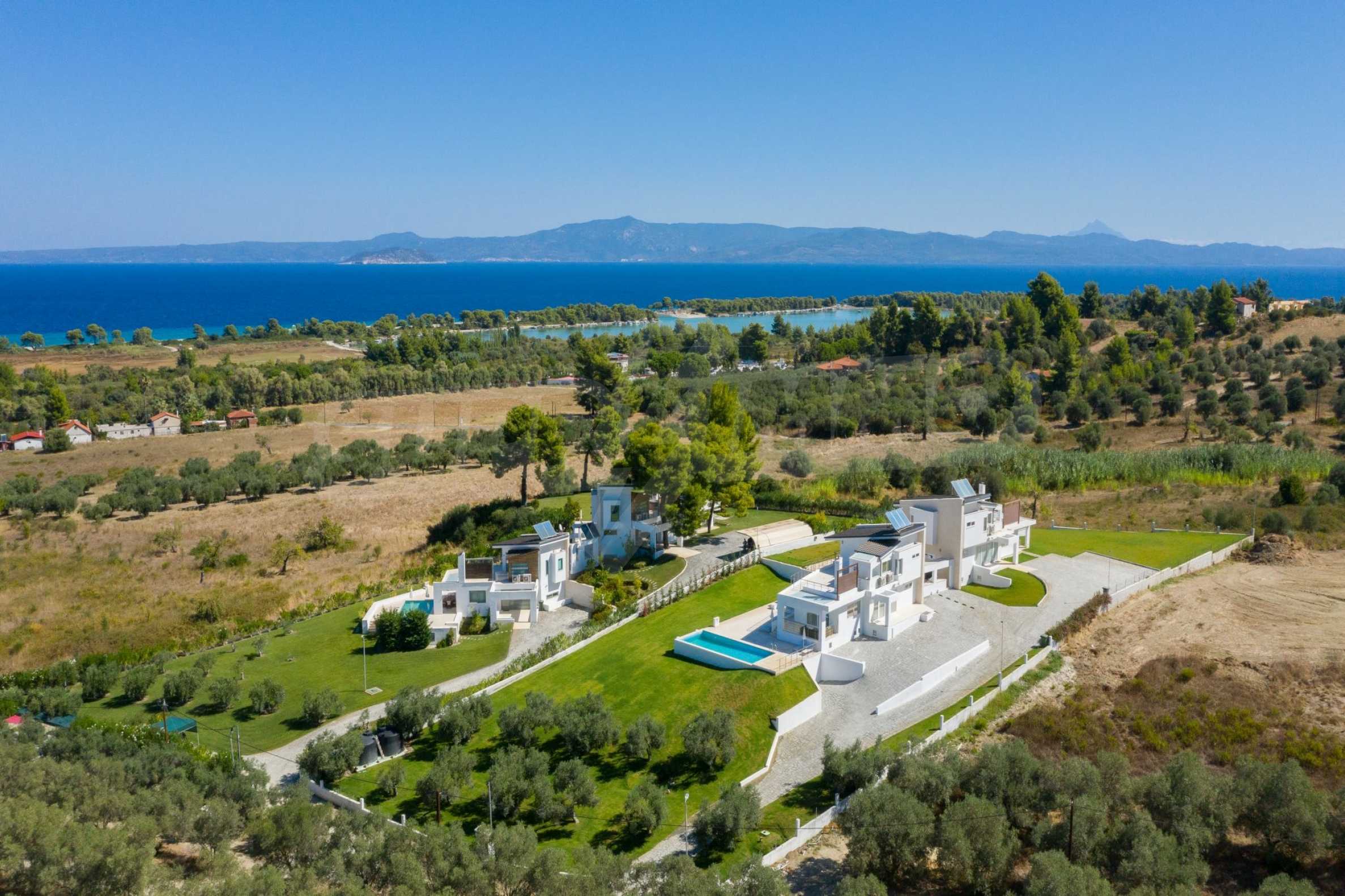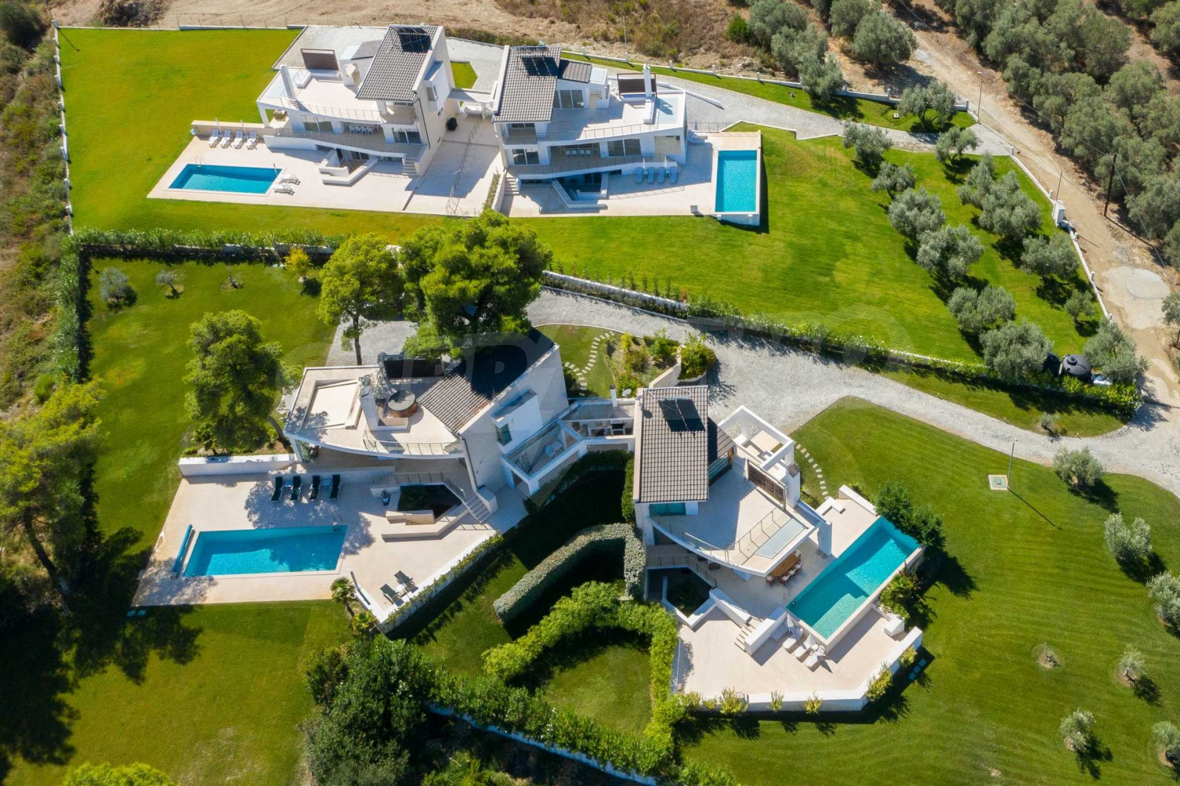 Новопостроен комплекс от 4 луксозни вили в Касандра, Халкидики, с прекрасна гледка към залива Торонайос. Комплексът се състои от 4 дневни, свързани с трапезариите с кухня, 19 спални, 14 бани, 4 тоалетни и 4 складови помещения. Парцелът е 8 акра и всяка вила разполага със собствен басейн и три паркоместа. Той е идеален за професионална експлоатация.