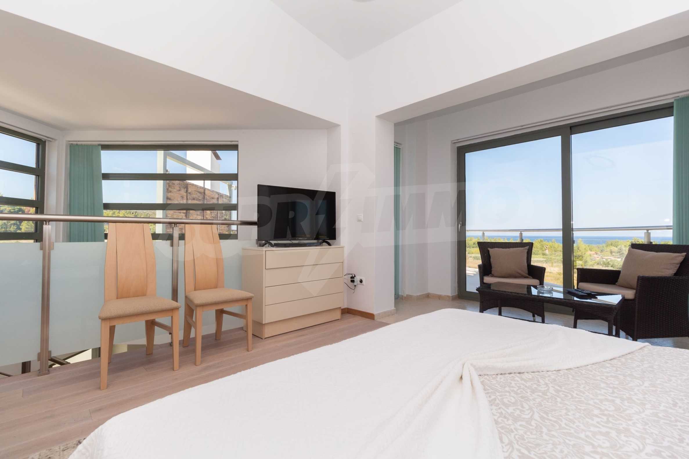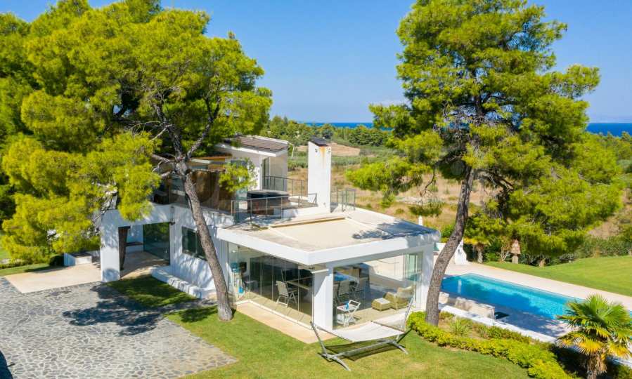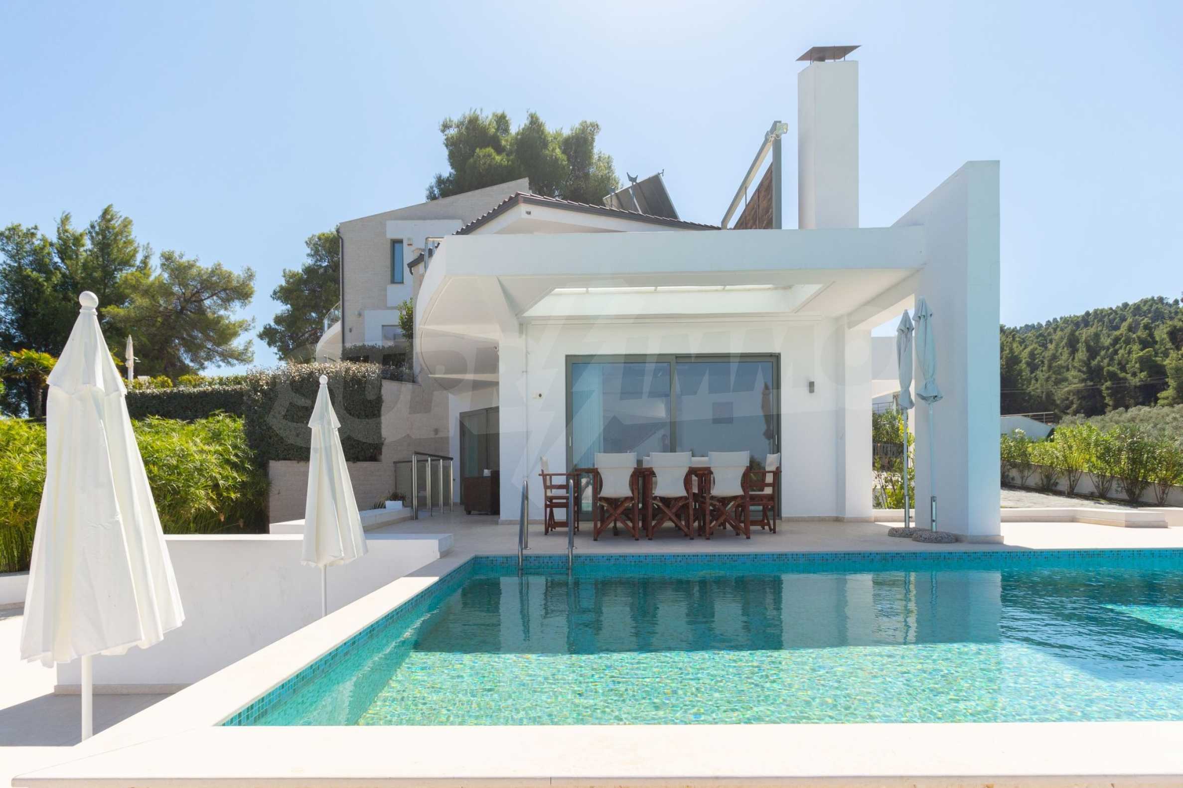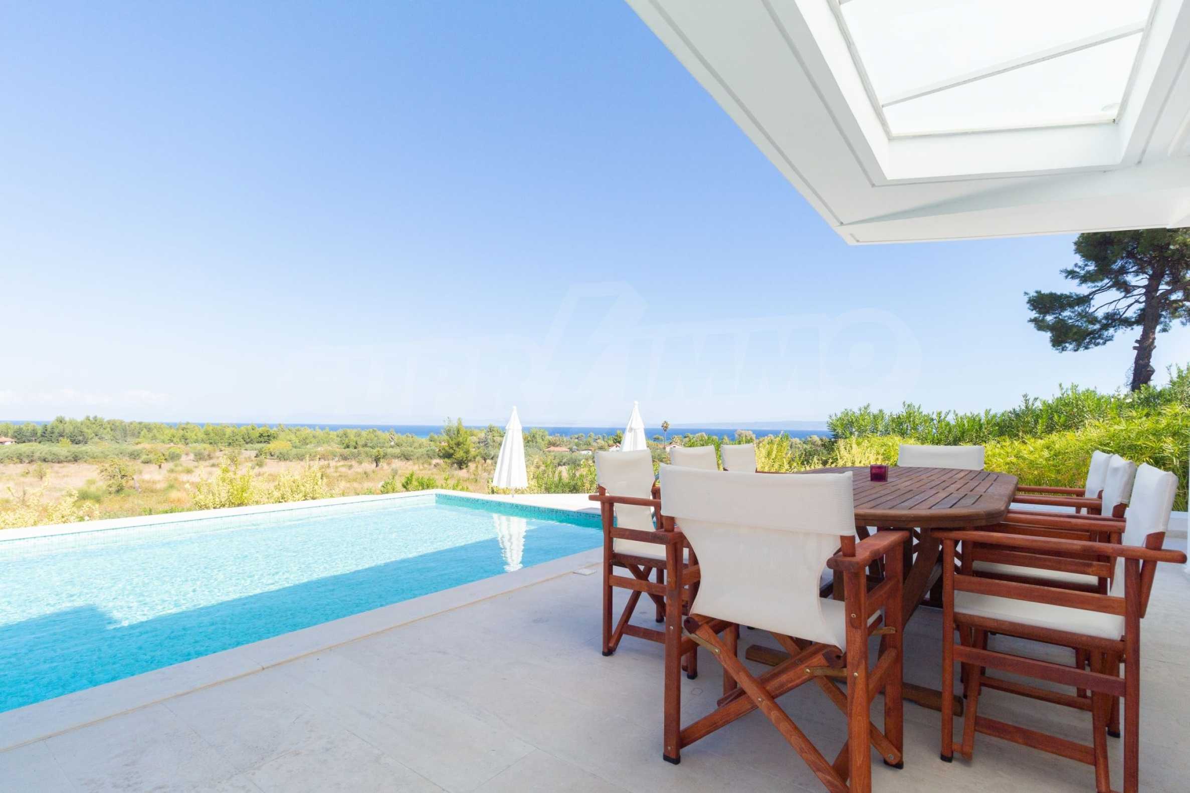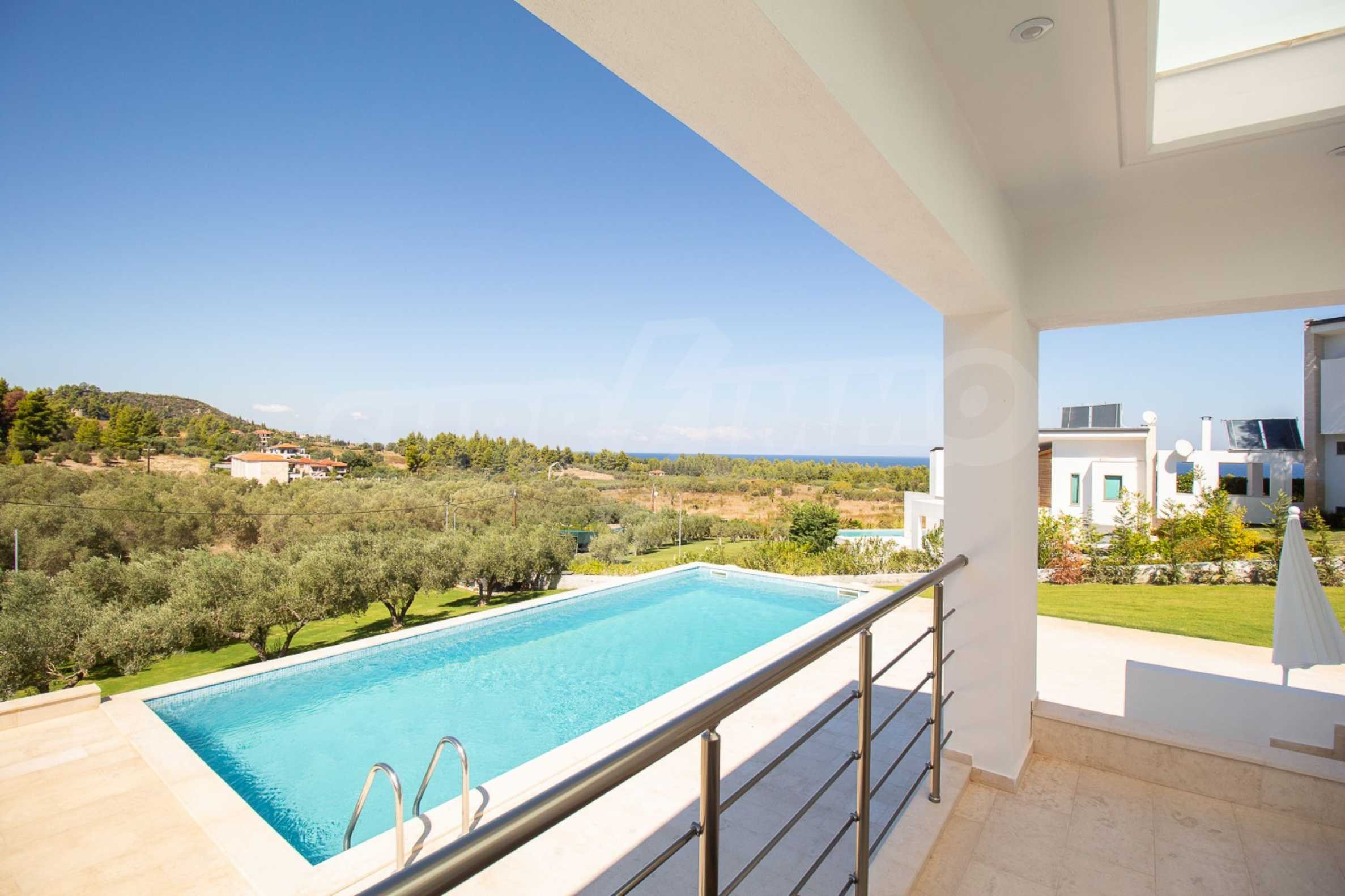 Новопостроен комплекс от 4 луксозни вили в Касандра, Халкидики, с прекрасна гледка към залива Торонайос. Комплексът се състои от 4 дневни, свързани с трапезариите с кухня, 19 спални, 14 бани, 4 тоалетни и 4 складови помещения. Парцелът е 8 акра и всяка вила разполага със собствен басейн и три паркоместа. Той е идеален за професионална експлоатация.