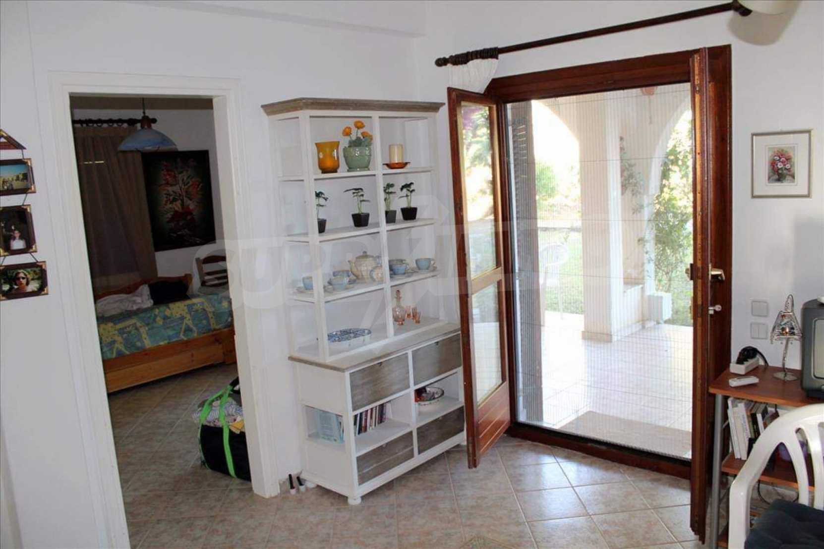 Прекрасен мезонет, в отлично състояние, на Атон, Халкидики, с невероятна панорамна гледка към морето, югозападна ориентация, само на няколко метра от плажа. Той е разделен на две нива, състоящ се от хол, свързан с кухнята, четири спални, две бани и килер. Разполага с големи тераси, дървена дограма, павилион, блиндирана врата, барбекю, външен душ и резервоари за вода.