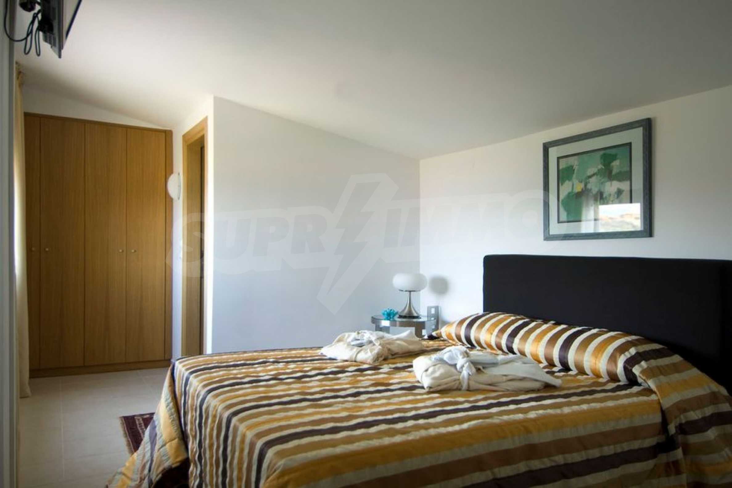 Луксозен, двуетажен мезонет, в комплекс, първо на морето, с прекрасна гледка и градина. Разполага с голям балкон, алуминиева дограма, подове с плочки, бойлер, вградена кухня, блиндирана врата, барбекю и джакузи. Състои се от хол, свързан с кухнята, две спални, баня, тоалетна и складово помещение. Това е отличен избор за експлоатация.