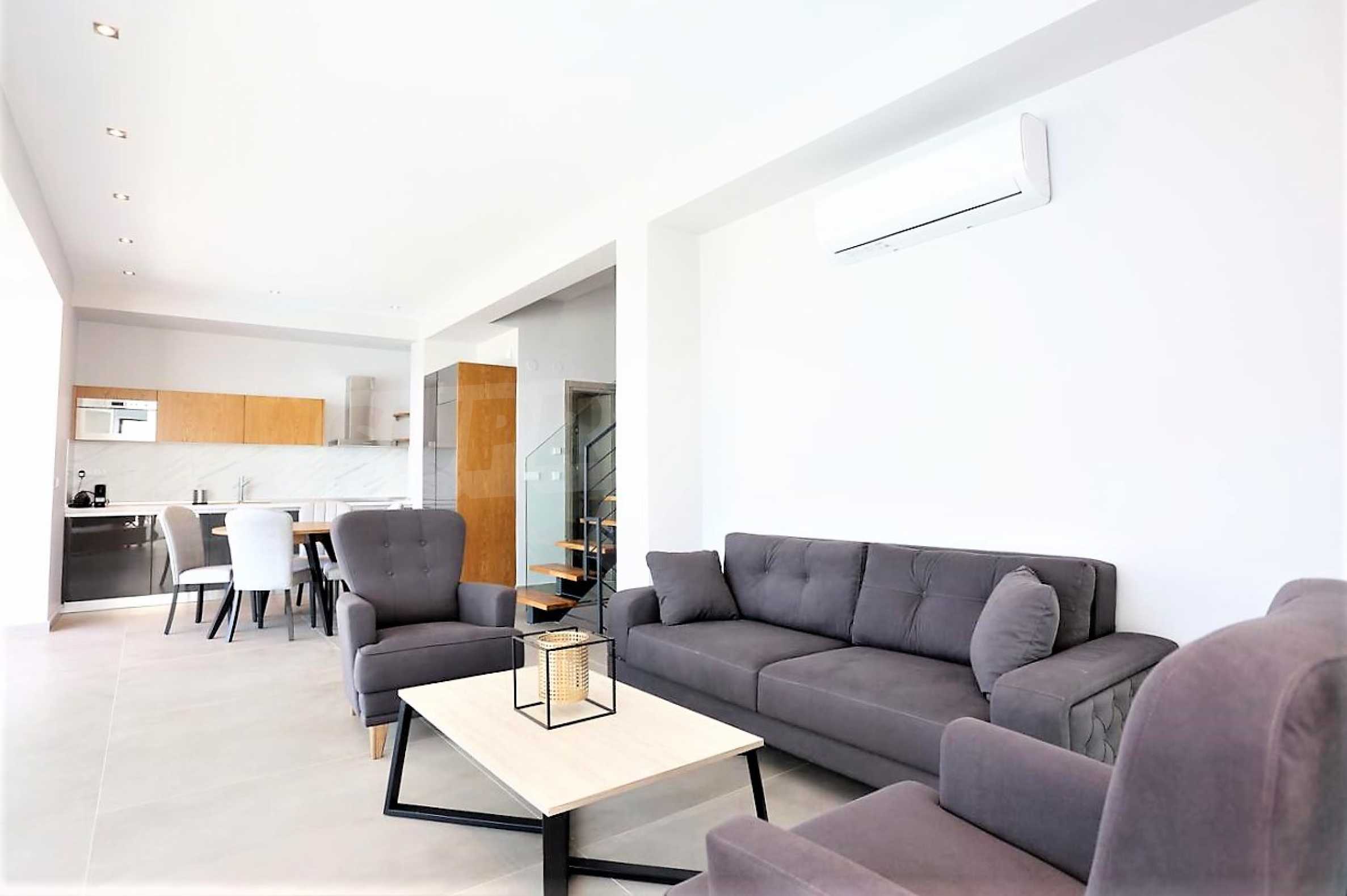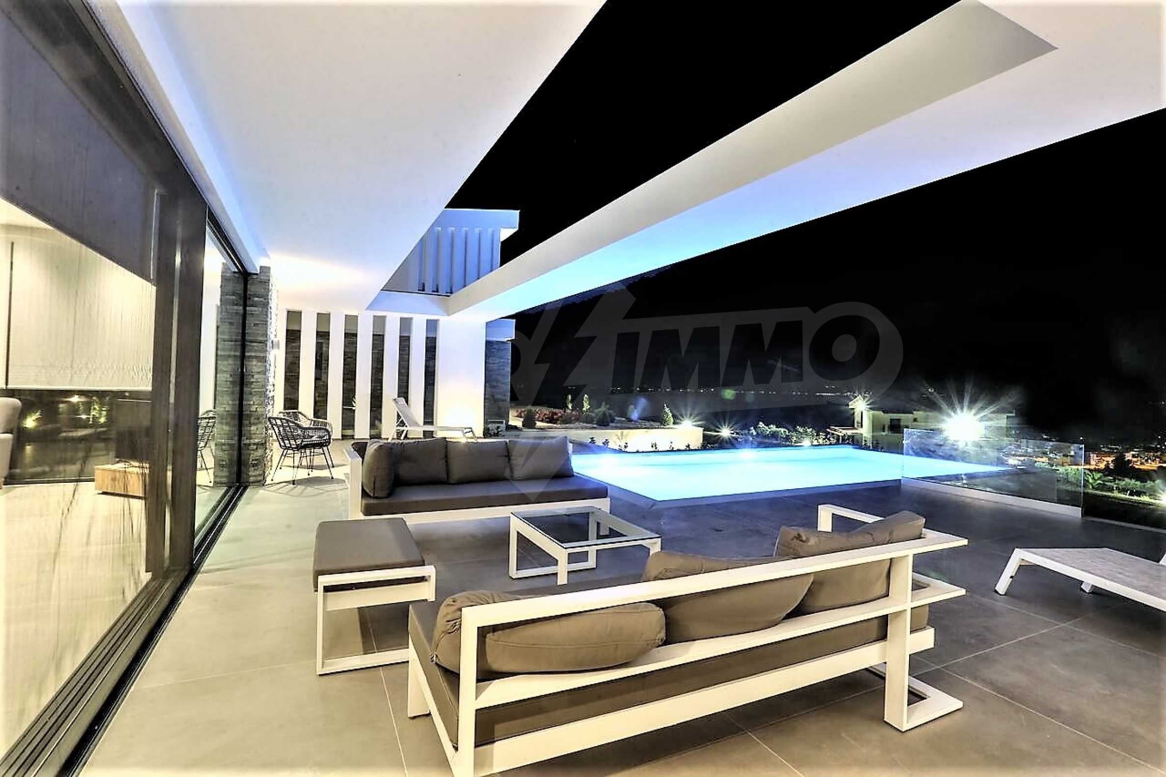 Вилата е част от малък затворен комплекс състоящ се от 3 самостоятелни вили, като всяка от тях разполага със собствен басейн и двор. Имотът се откроява със своята съвременна и модерна архитектура, локация и най-вече с безпрепядствената, панорамна гледка към тюркоазено сините води на Егейско море.