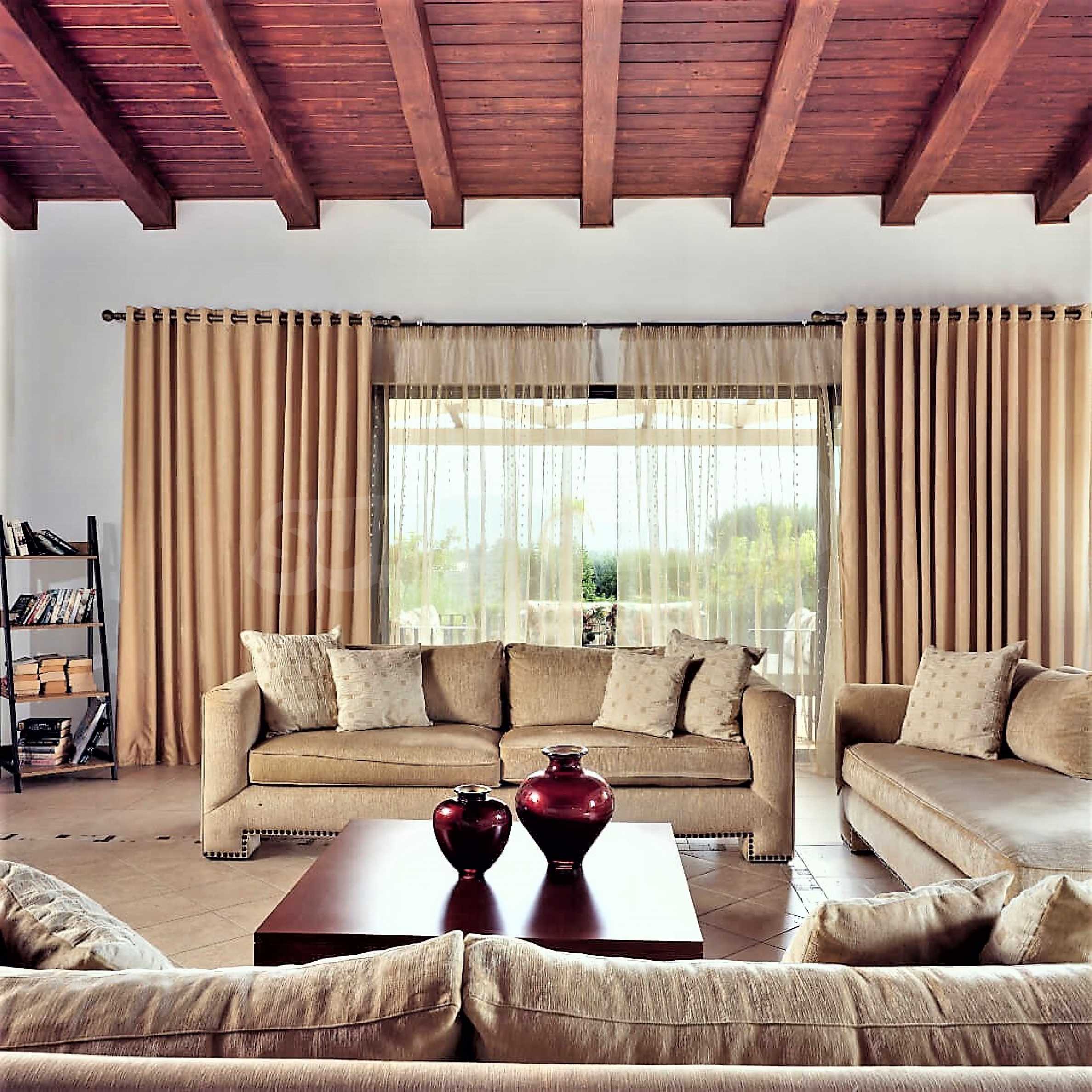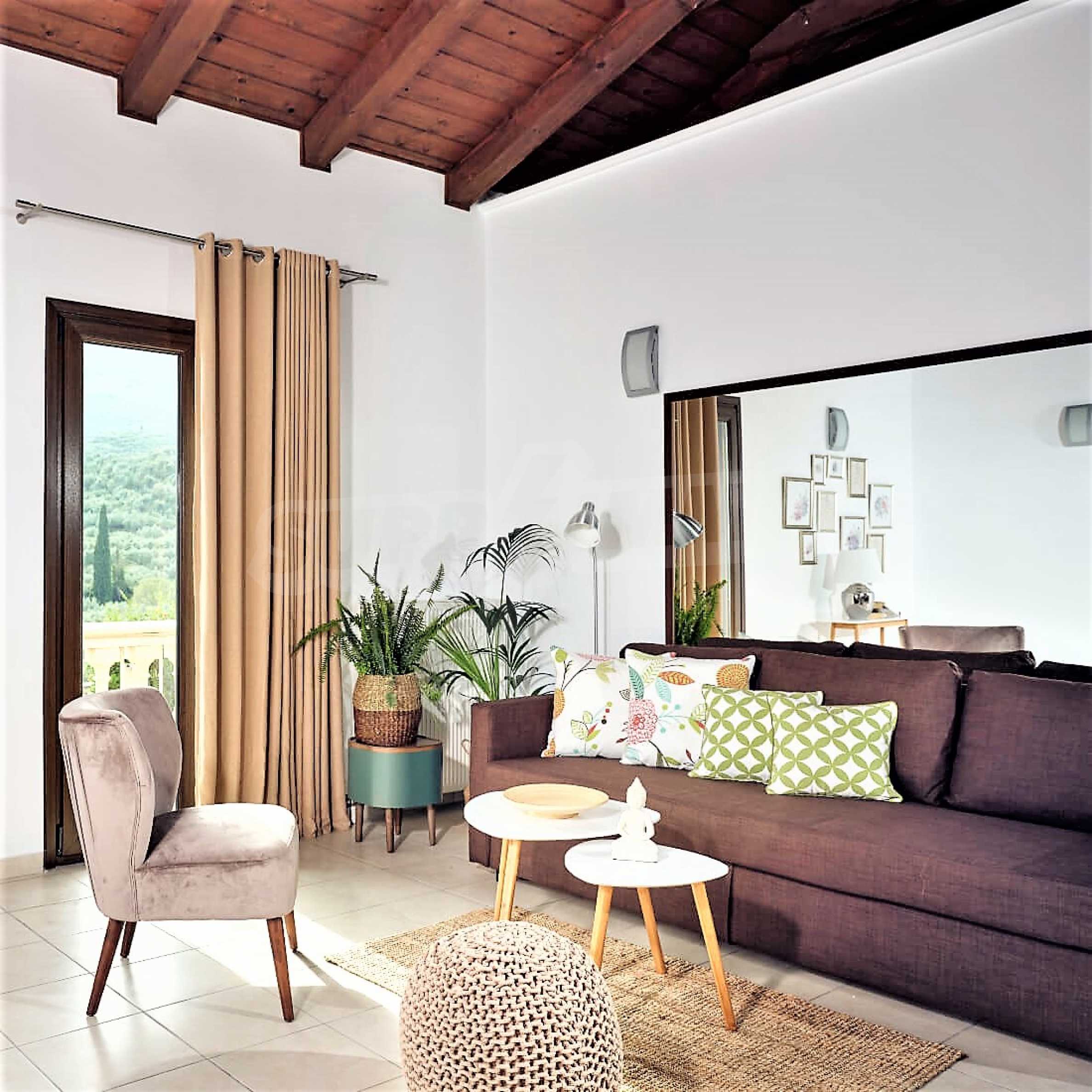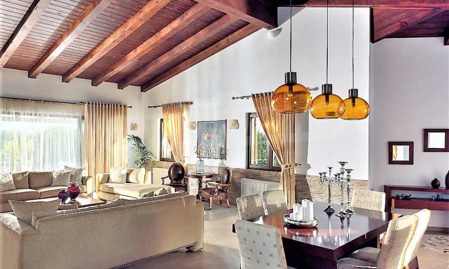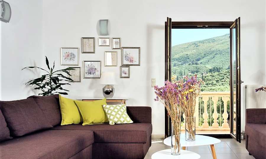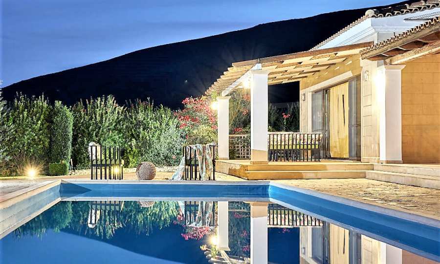 Това е един изключително луксозен имот с красива градина и басейн, както и безкрайна гледка към морето. Вилата е построена на две нива и се състои от 4 спални, 4 бани, 2 дневни и просторна кухня., обширни тераси и веранди, лятна кухня и външни кътове за отдих. Имотът е разположен на върха на частен хълм с безпрепятствен изглед към Йонийско море, уединен в недокосната, девствена природна среда, но и в непосредствена близост до Лагана, където ще намерите всичко от което имате нужда, магазини, характерни за острова ресторанти и таверни, но също и модерни барове, клубове и кафетерии.