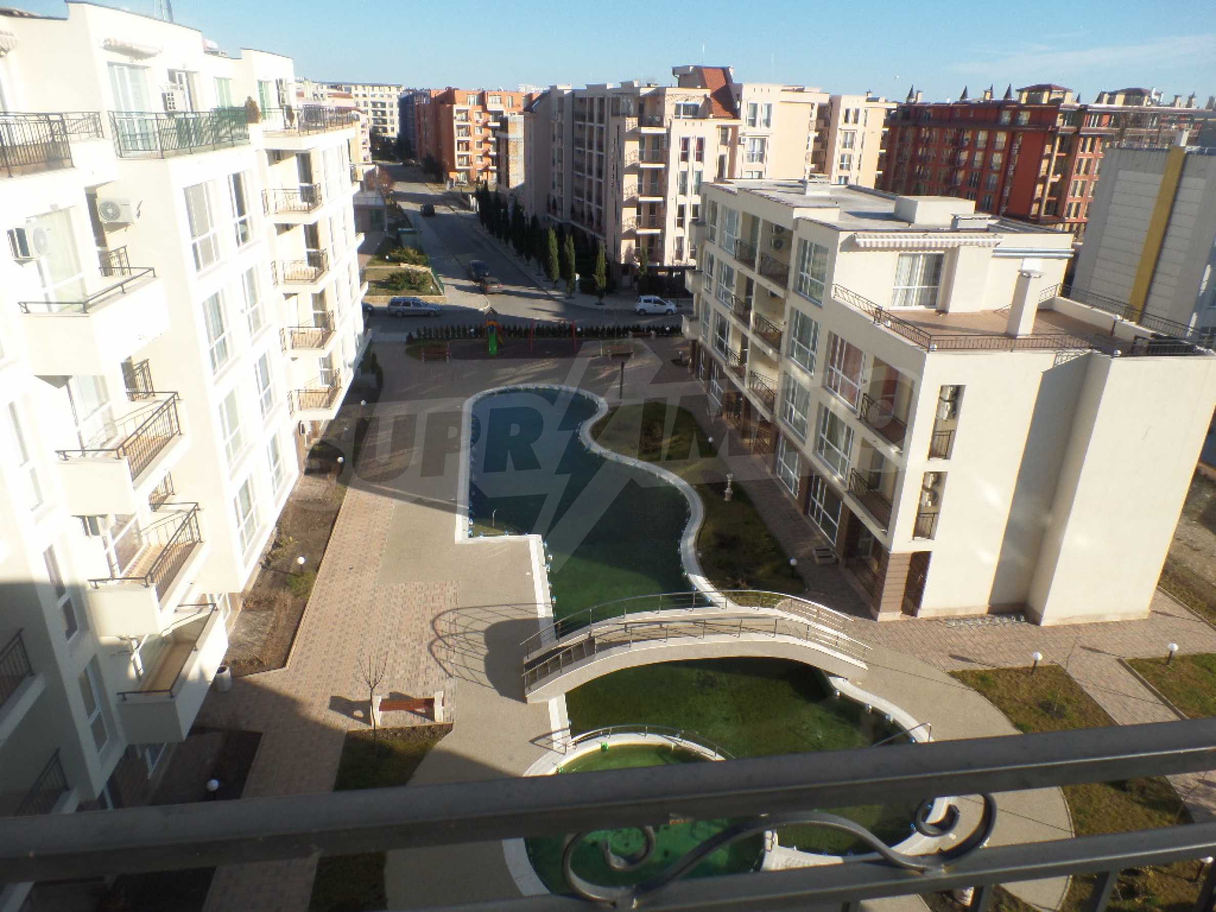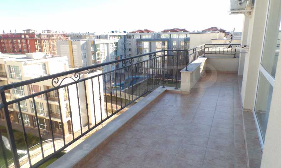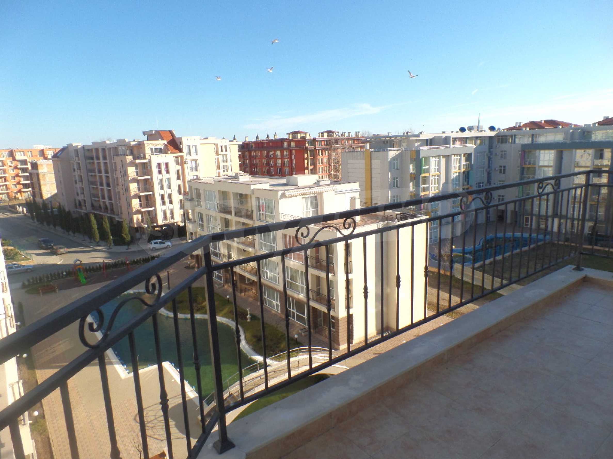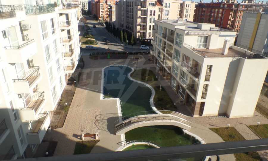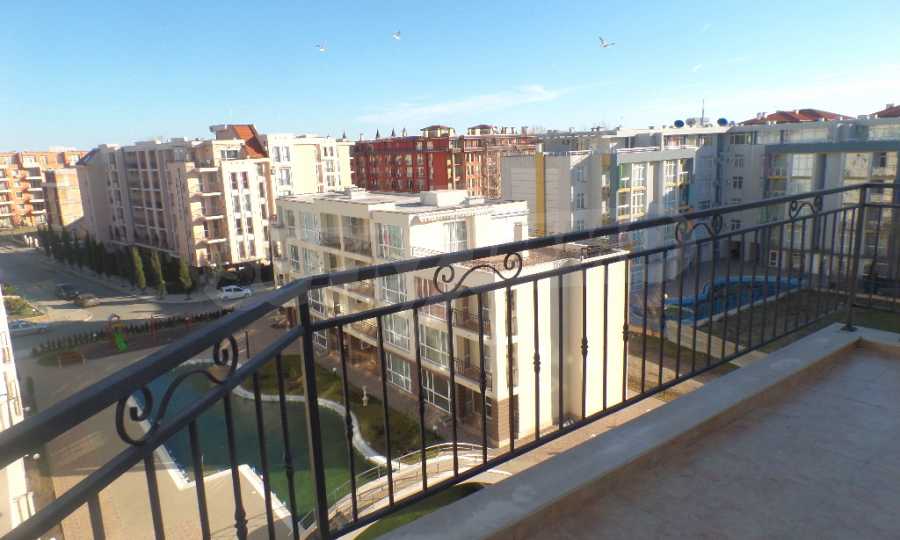 Имотът е разположен на 6-ти, висок етаж, с гледка към басейна и обзорна гледка към града, без насрещни тераси.