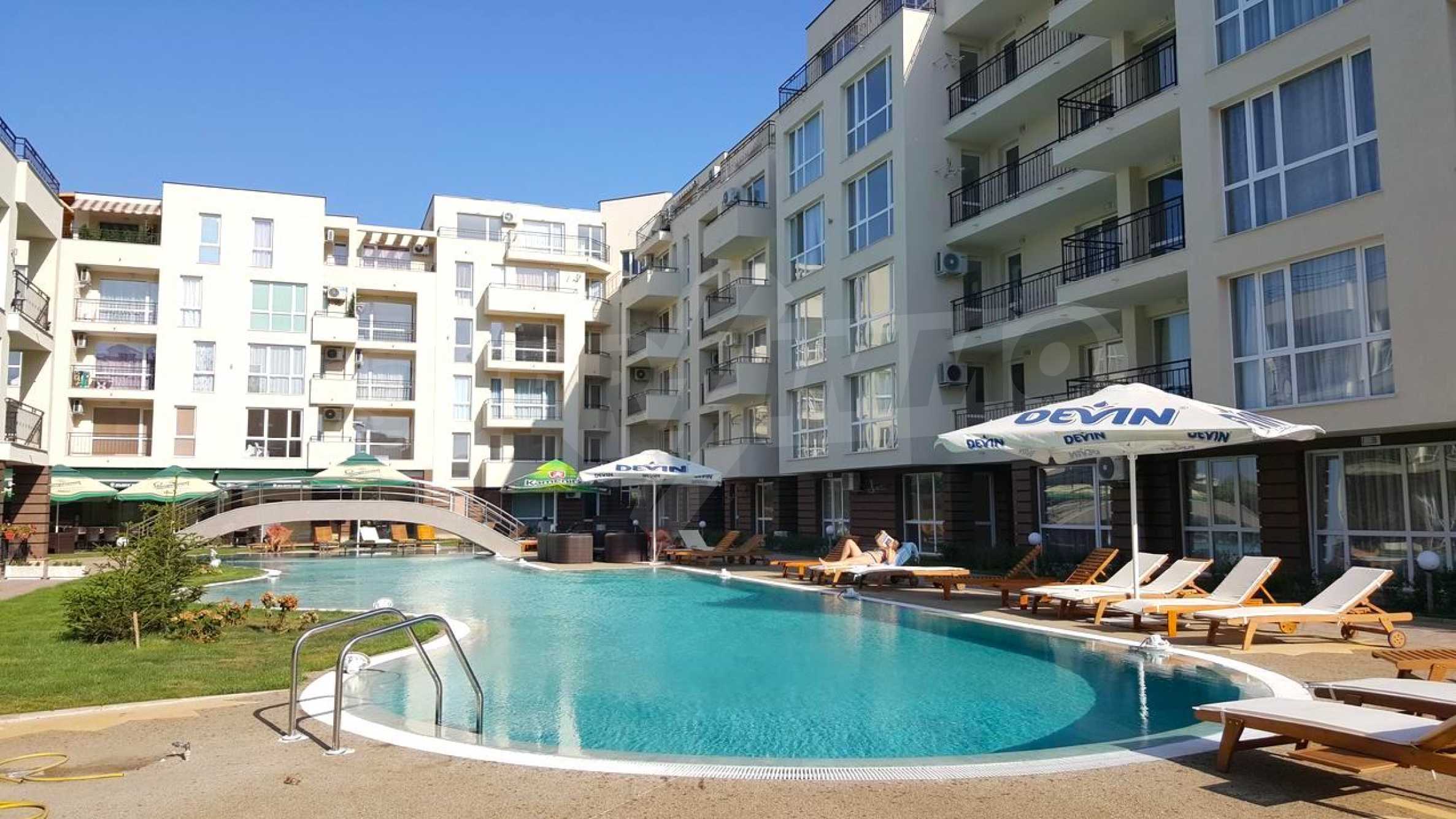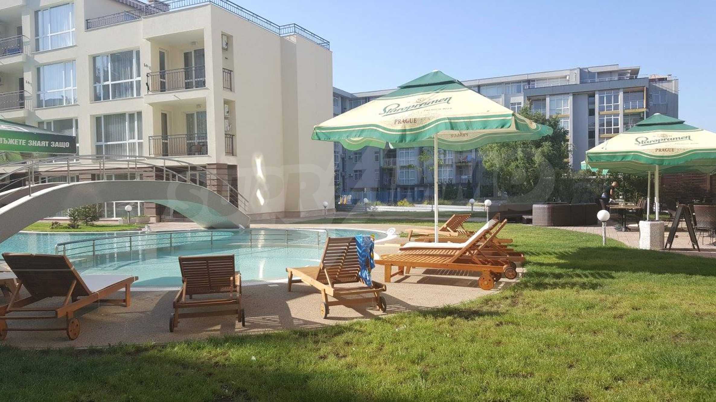 - приятна архитектурна визия на комплекса, с практично вътрешно разпределение, множество удобства и басейн;
