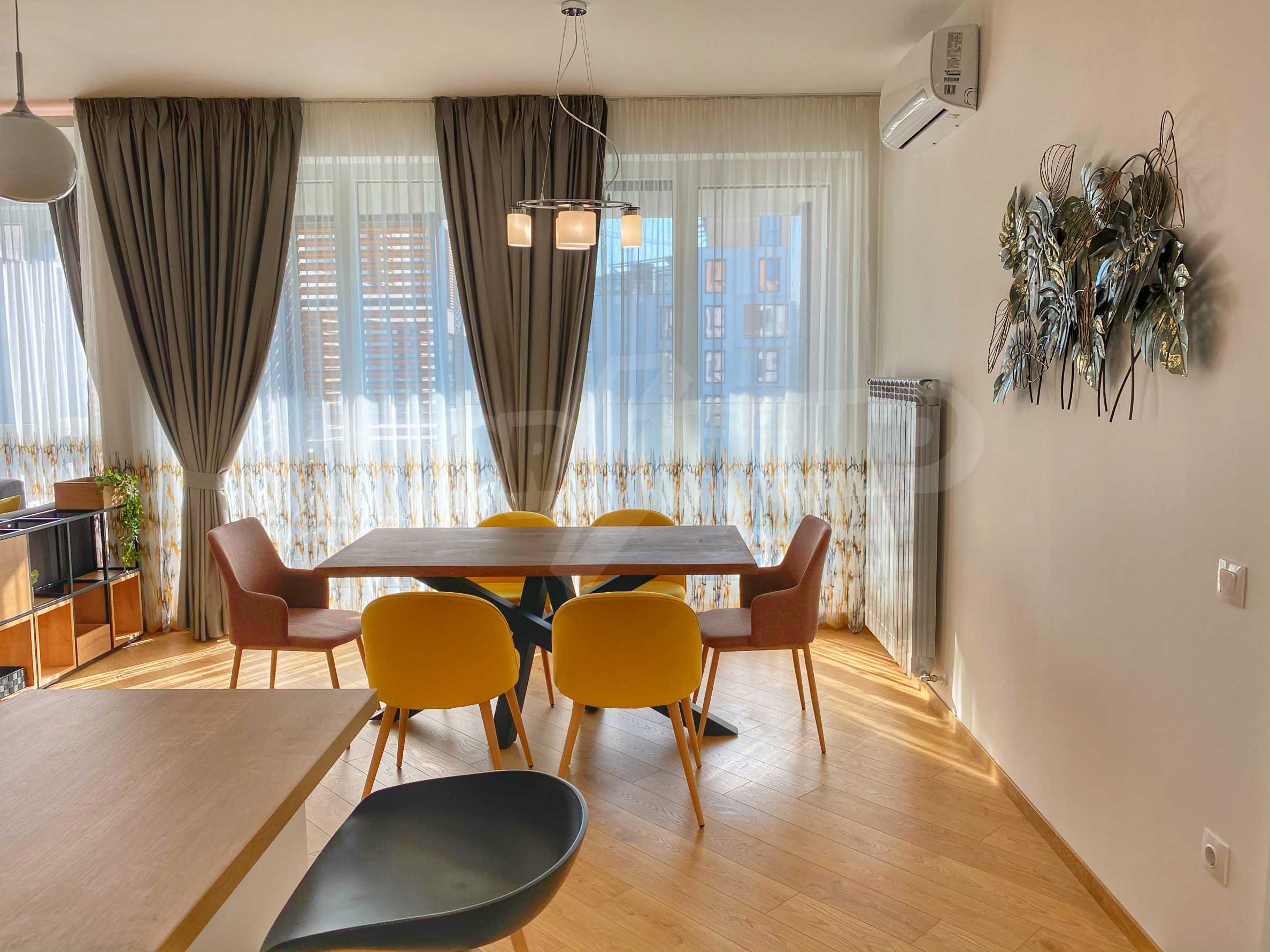 Жилището е изпълнено по дизайнерски проект с внимание към всеки детайл и предлага практичност на съвременното домакинство. Отоплението е с ТЕЦ, както и с инверторни климатици с възможност за online управление. В баните има подово отопление. Имотът е окабелен с оптика за интернет и кабелна телевизия, има и охранителен СОТ.