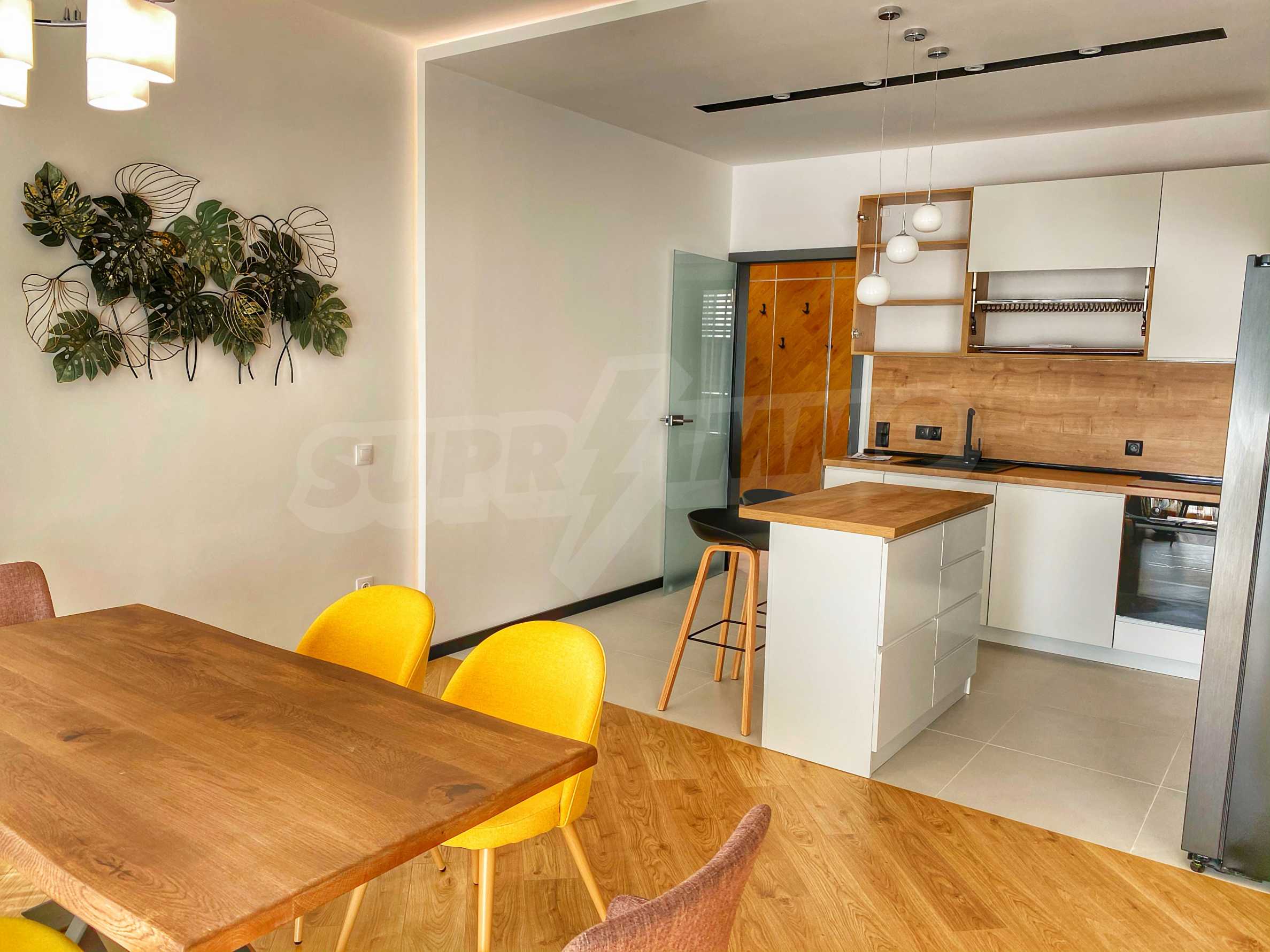 - просторна дневна с кухненски бокс и трапезария;