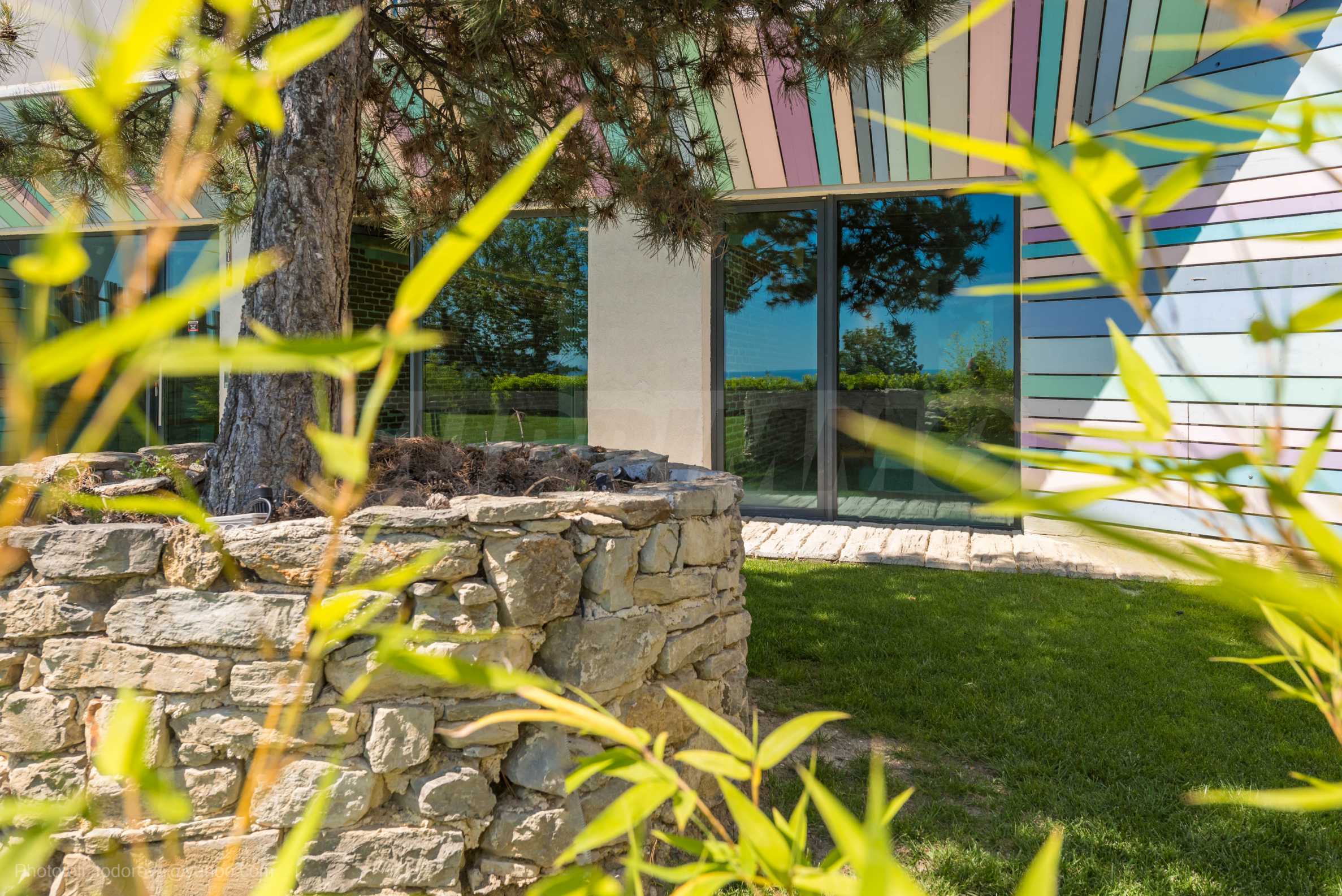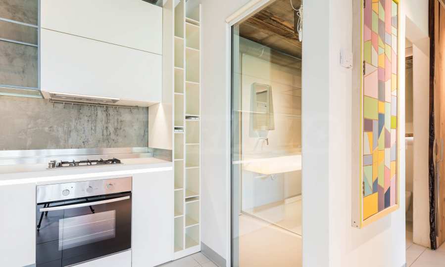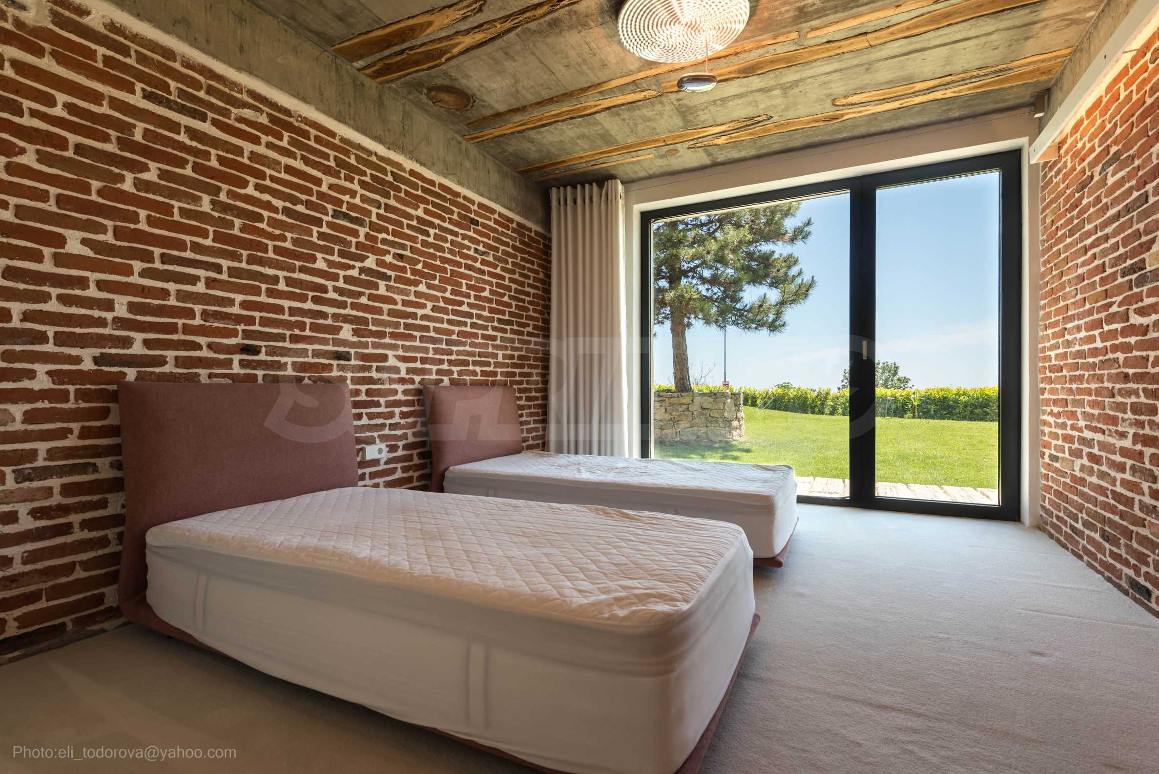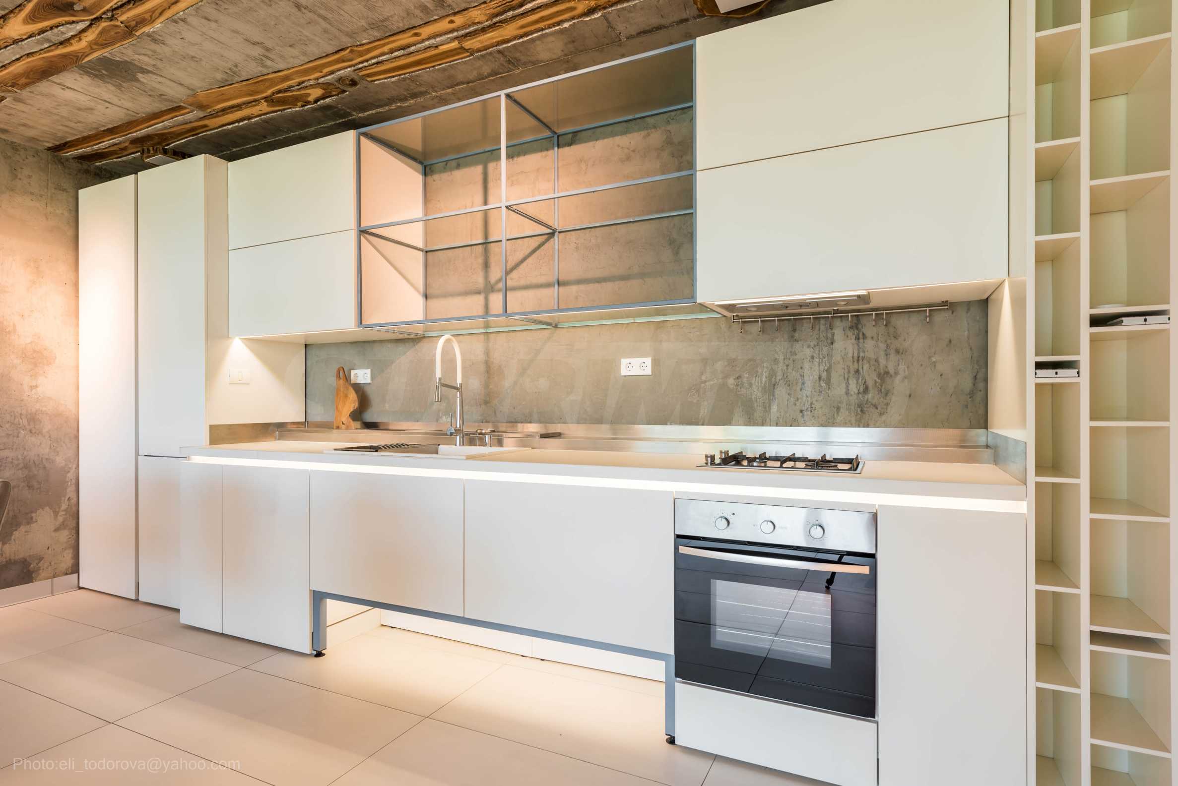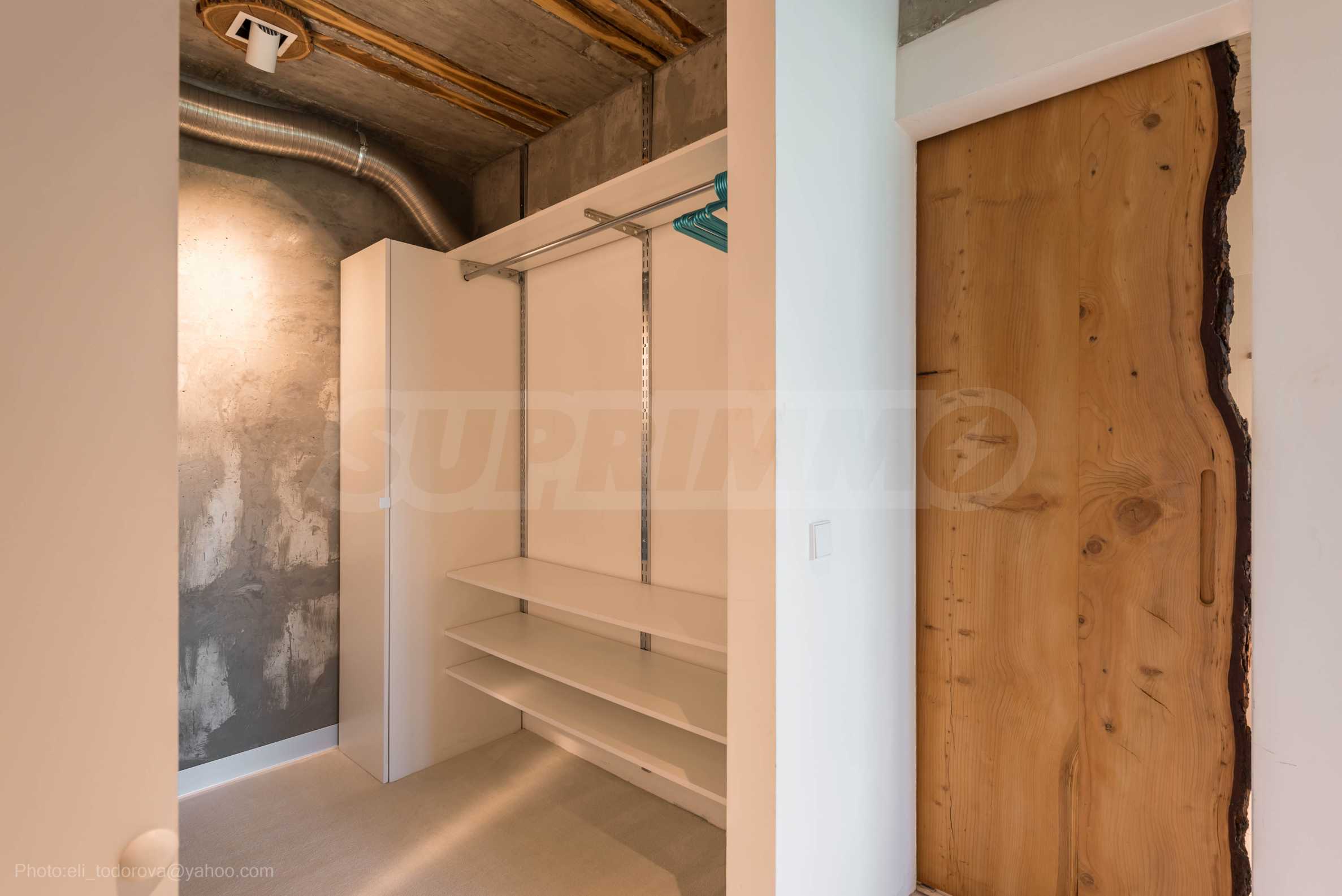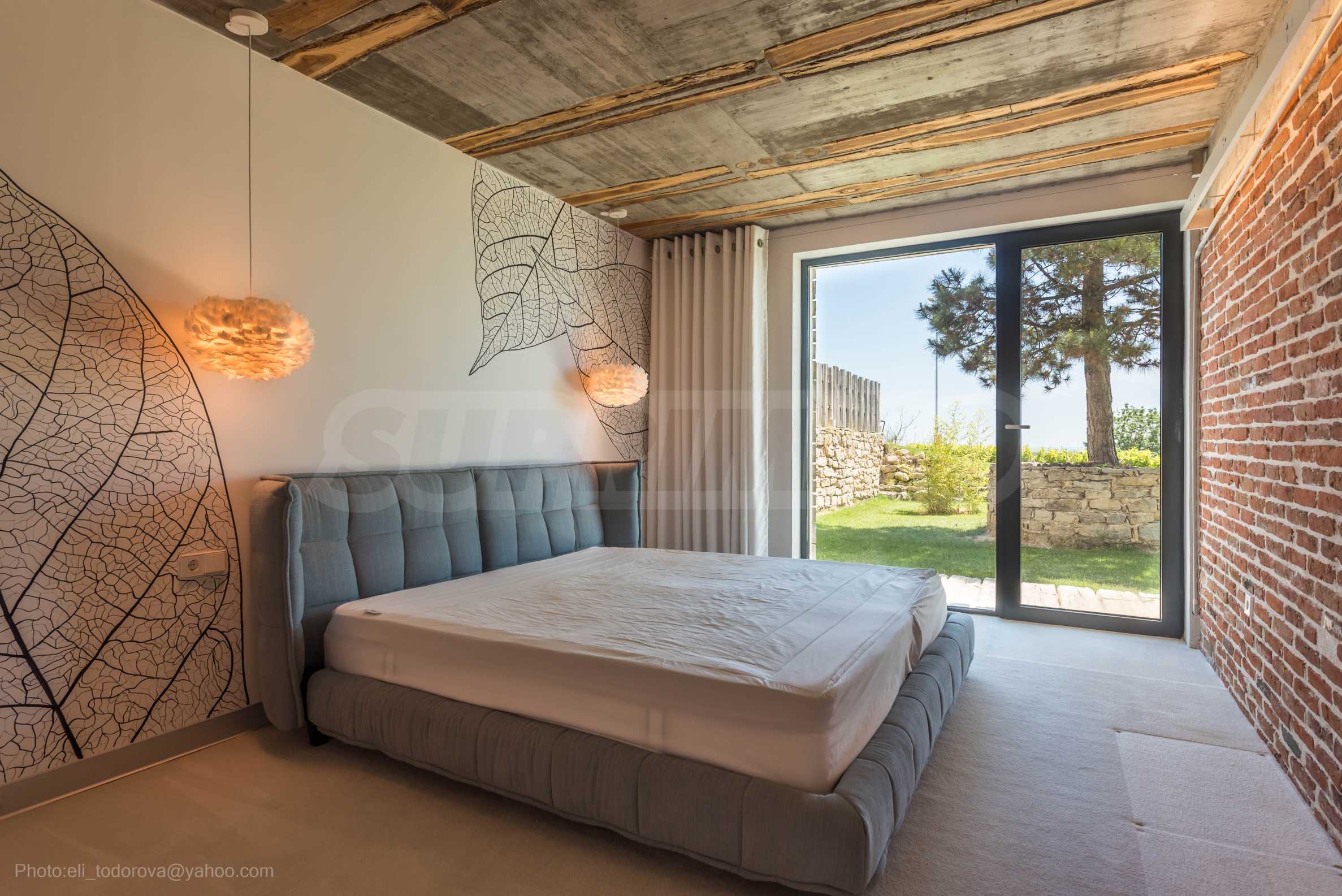 Дизайнът е уникален - естествен и модерен, предизвикателен и светъл, носещ посланието на автономност, релакс и морската атмосфера. В бетоновите плочи по тавана на апартамента са вградени естествени дървени орнаменти от акация. Тухлените стени и бетонът са използвани за естествена декорация, като са допълнително обработени, импрегнирани и грундирани. Мебели, кухня, матраци и дивани, атрактивни плочки, осветителни тела - всички са на известни италиански марки. Вниманието в трапезария е с акцент на екстравагантната маса, изработена по поръчка, от ценно и рядко дърво от Амазонка. Банята е отделена със стъклена врата, за изобилието на слънчева светлина, а всички санитарии са първокласно немско качество.
