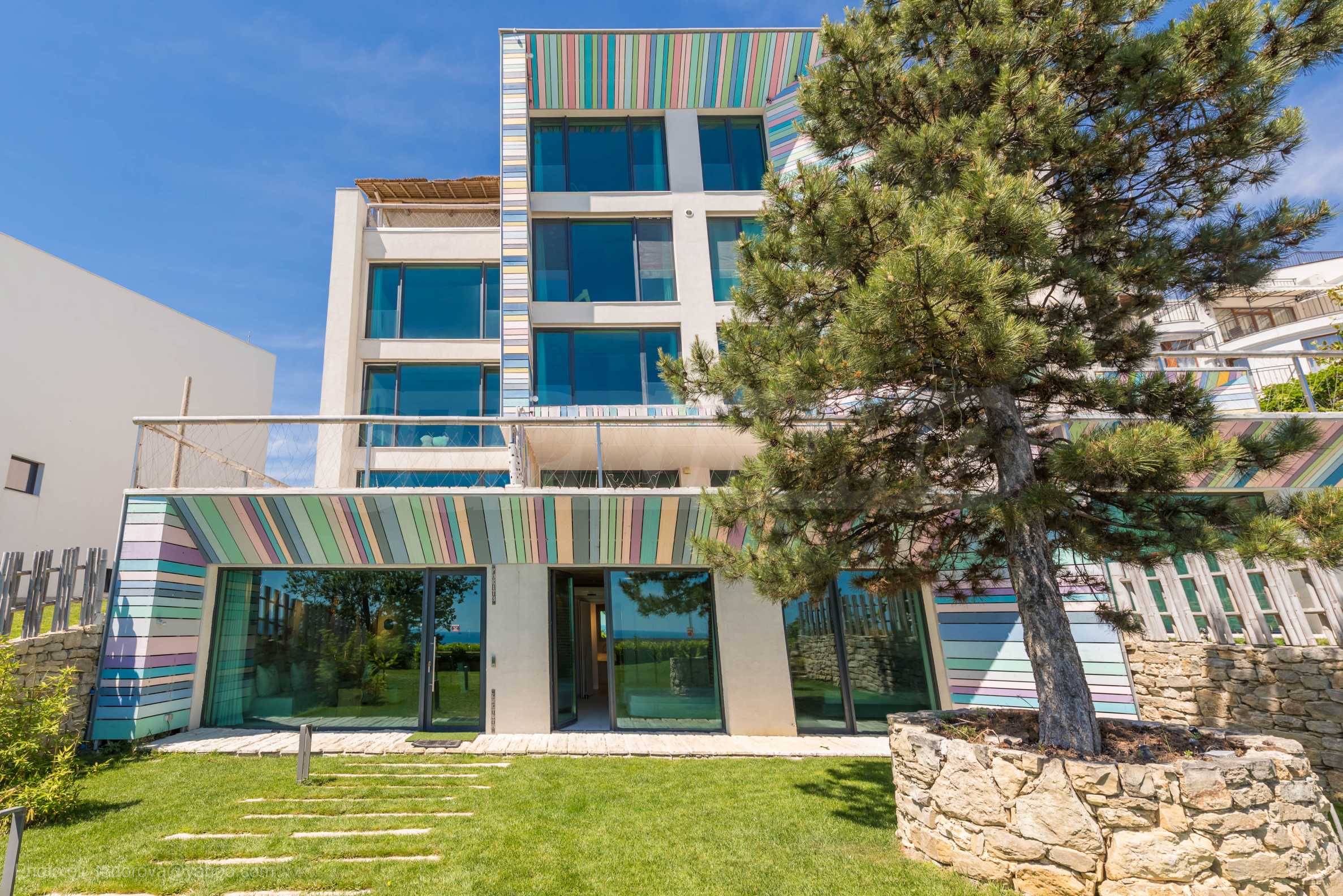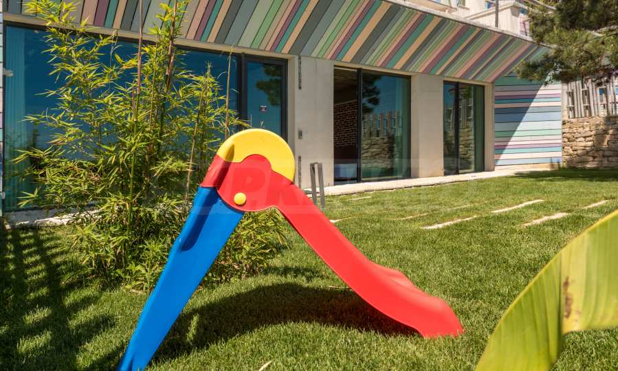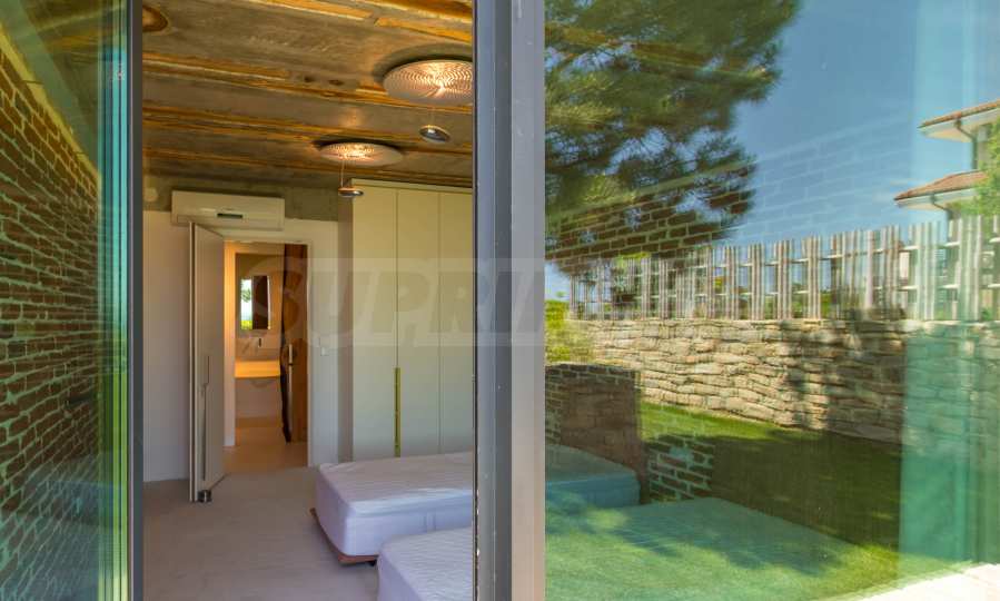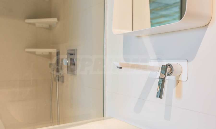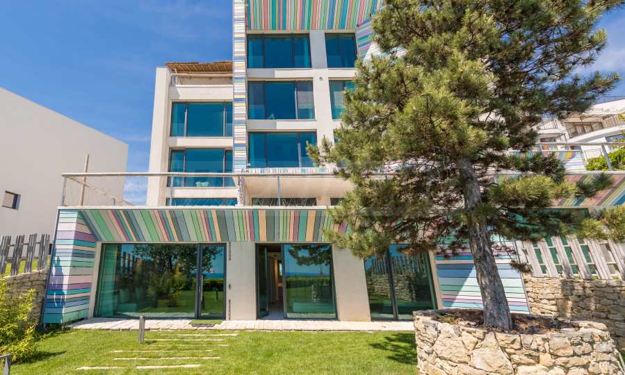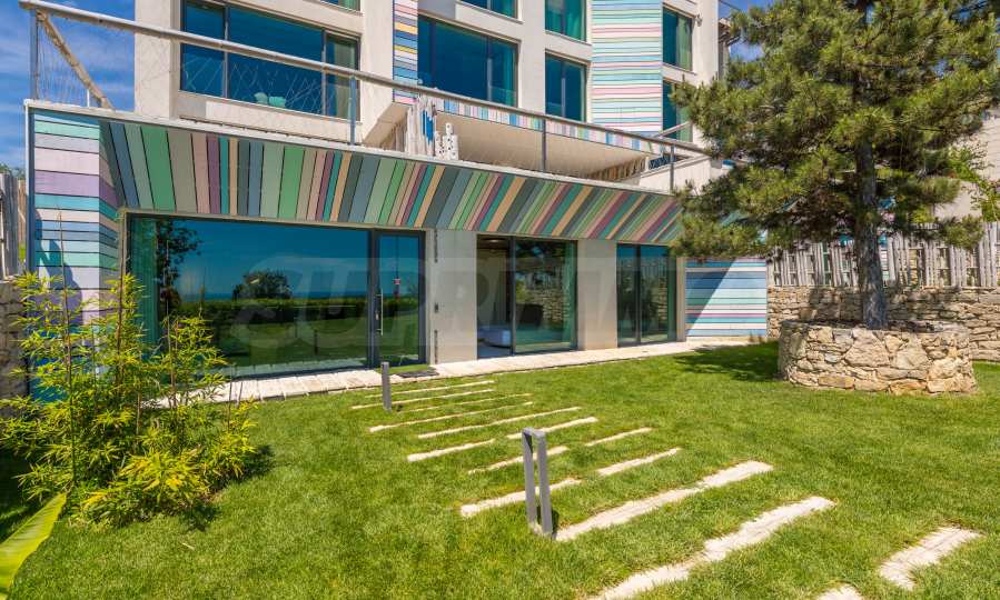 Неподражаемият тристаен апартамент е разположен на приземен етаж и притежава обширна веранда с несравнима морска панорама. В обзавеждането са използвани материали и брандове от най-висок клас, но най-голямото предимство на жилището е, че апартаментът е чисто нов и не е обитаван до момента. Апартаментът с площ от 119 кв.м се състои от просторна и светла всекидневна, две спални и две бани. Родителската спалня е със собствена баня и дрешник, а от всички стаи може да се излезе директно на панорамната веранда на апартамента.