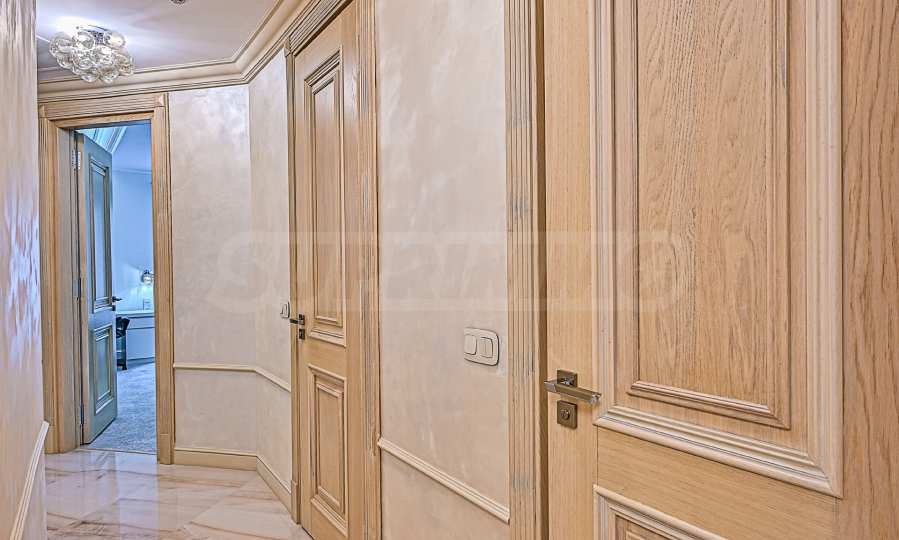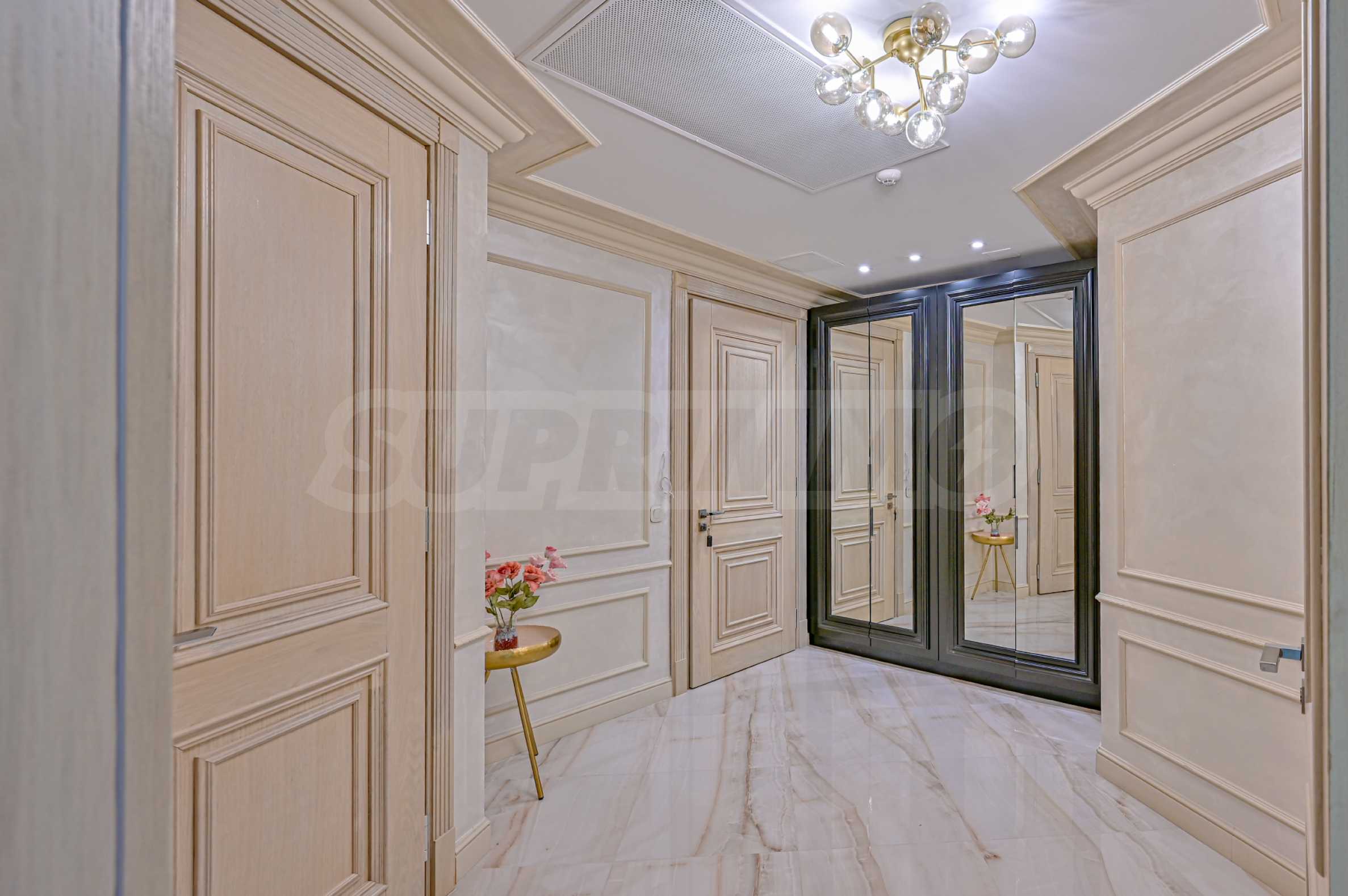 Ако трябва само с една дума да се опише този имот, то тя е "изящество". Високи тавани, масивни врати с височина 2.40 м. , гипсови орнаменти, топли цветова, висок клас обзавеждане и електроуреди. Удобство, комфорт, уют и усещане за истински дом. Имотът е напълно завършен и готов за нанасяне.