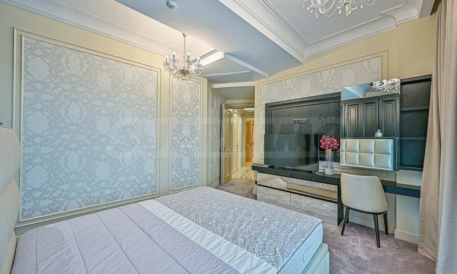 Апартаментът е с функционално разпределение с обща площ 176.18 кв.м. и се състои от: антре, дневна с кухня, две спални,кабинет, три бани с тоалетна и тераса.