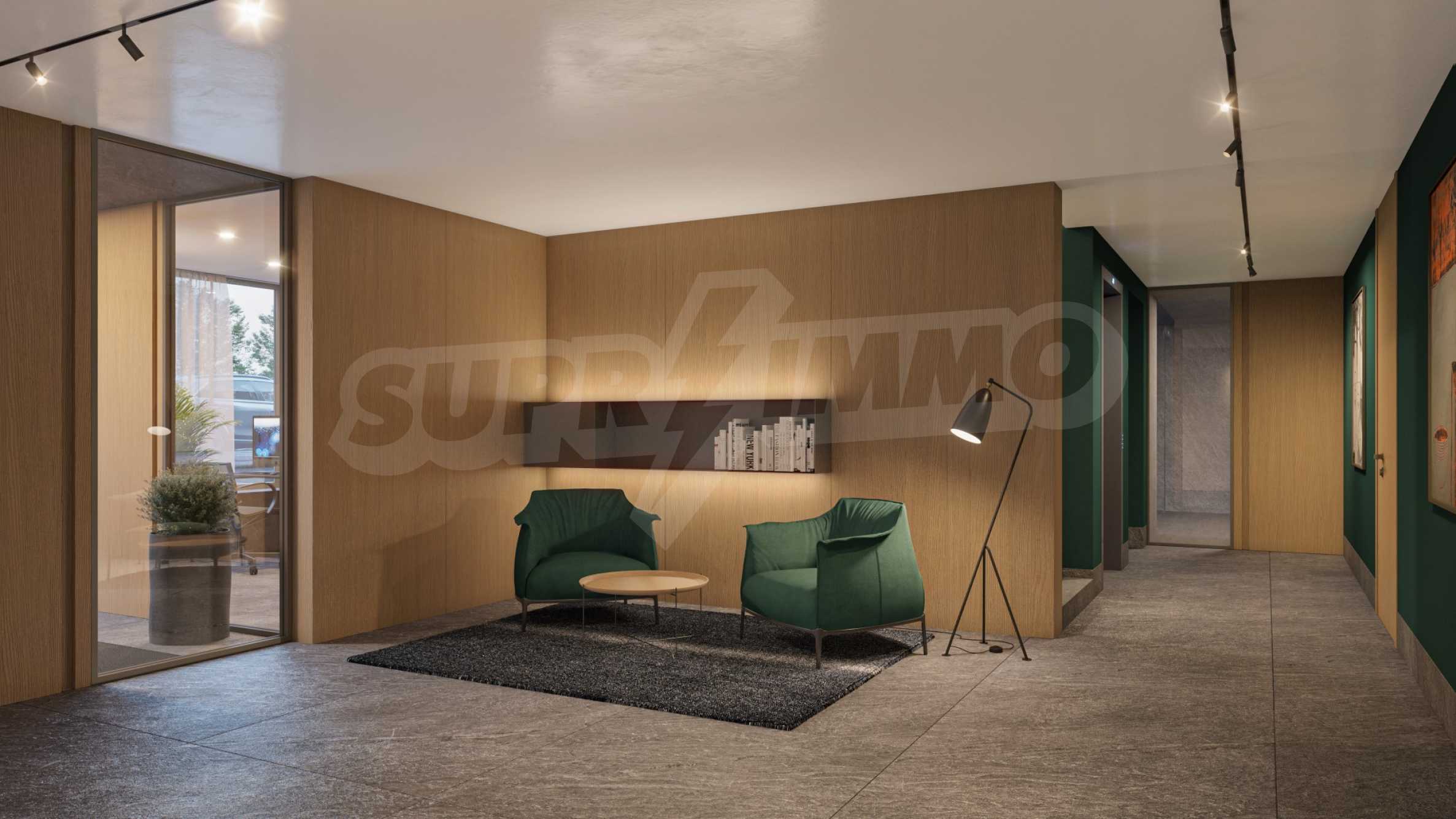 - Общи части: подове: настилки от полиран гранит; стени: декоративни мазилки на основата на минерални вещества, осигуряващи висока степен на устойчивост на материалите; тавани: латекс с вградено сензорно осветление; включително интериорно оформление на входното пространство с развита социална среда;