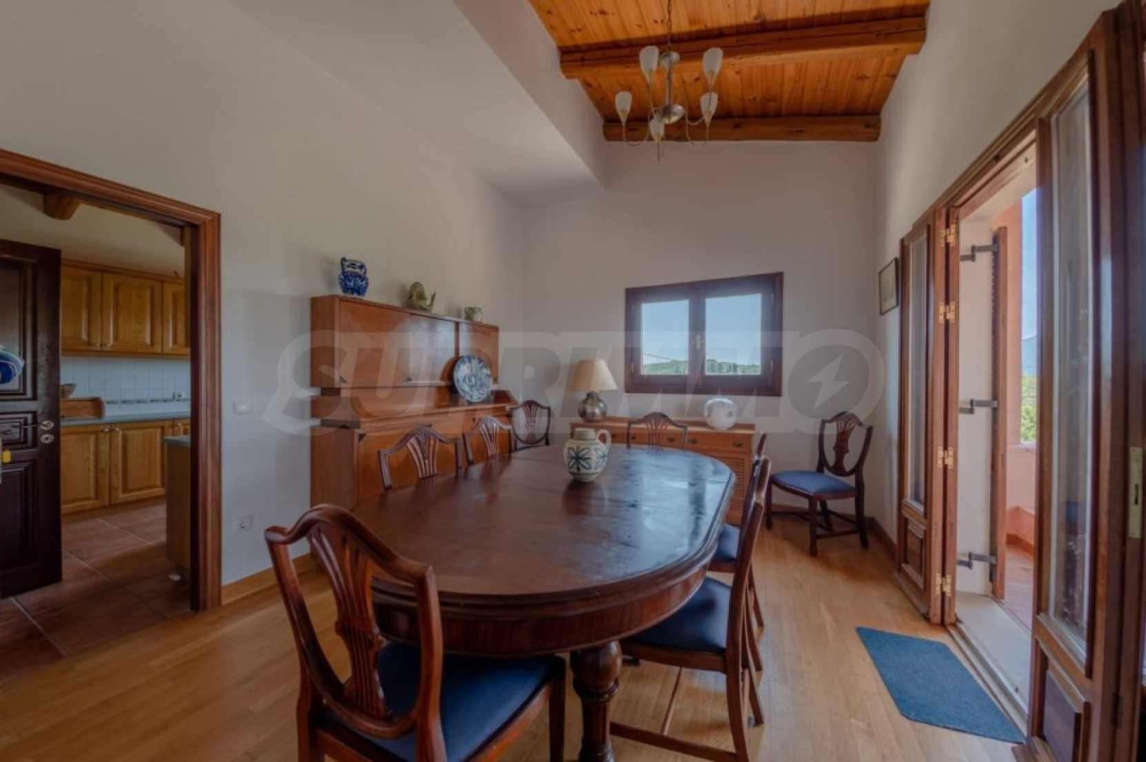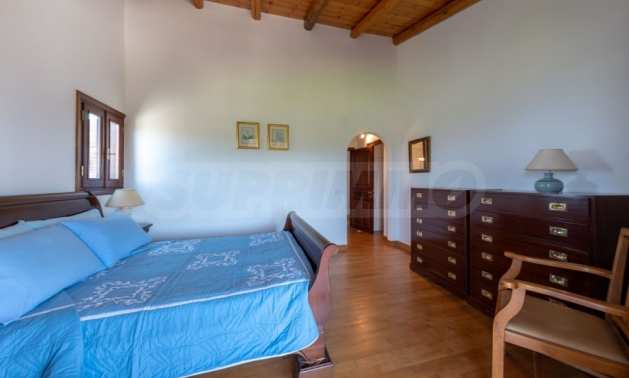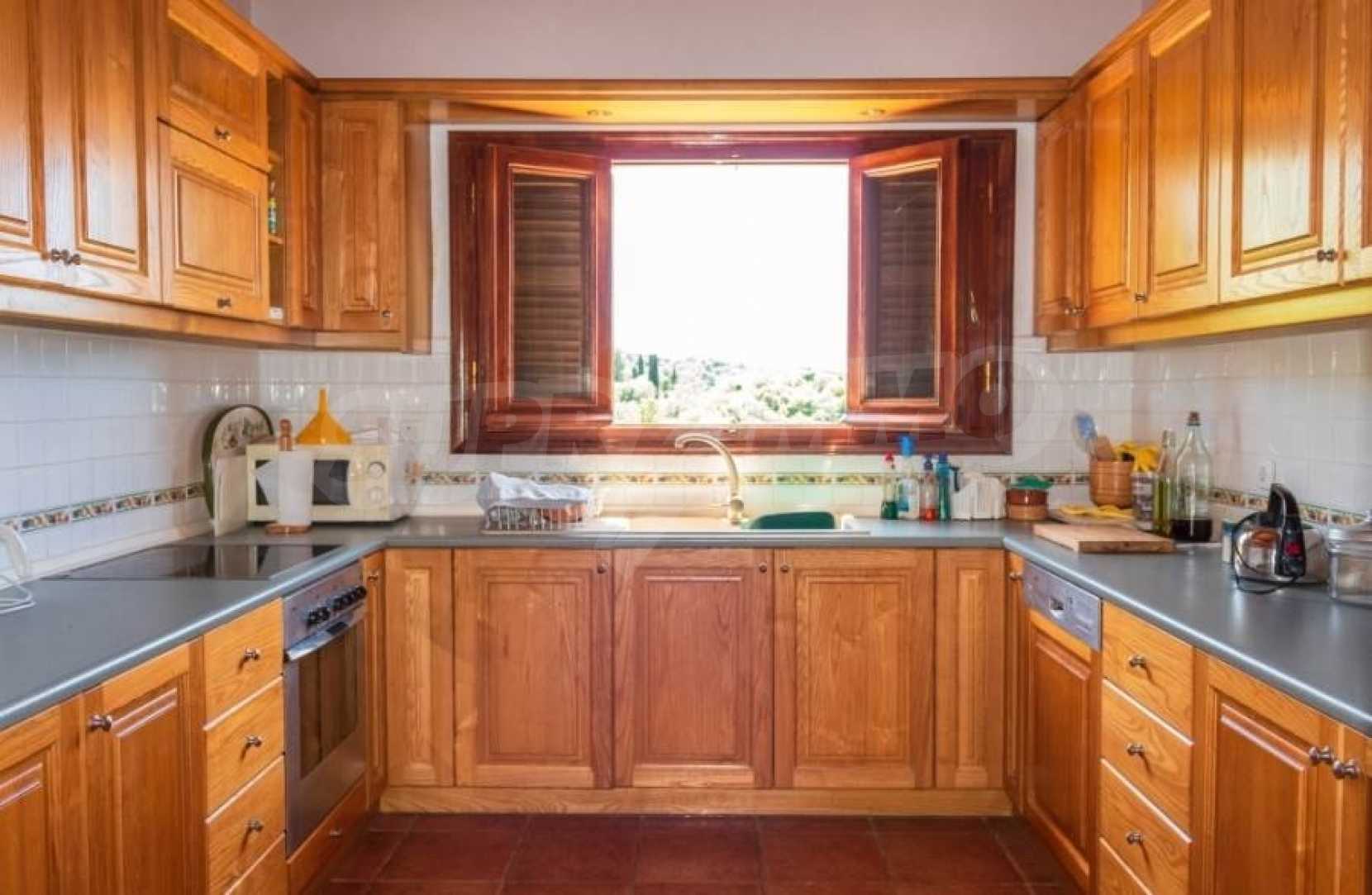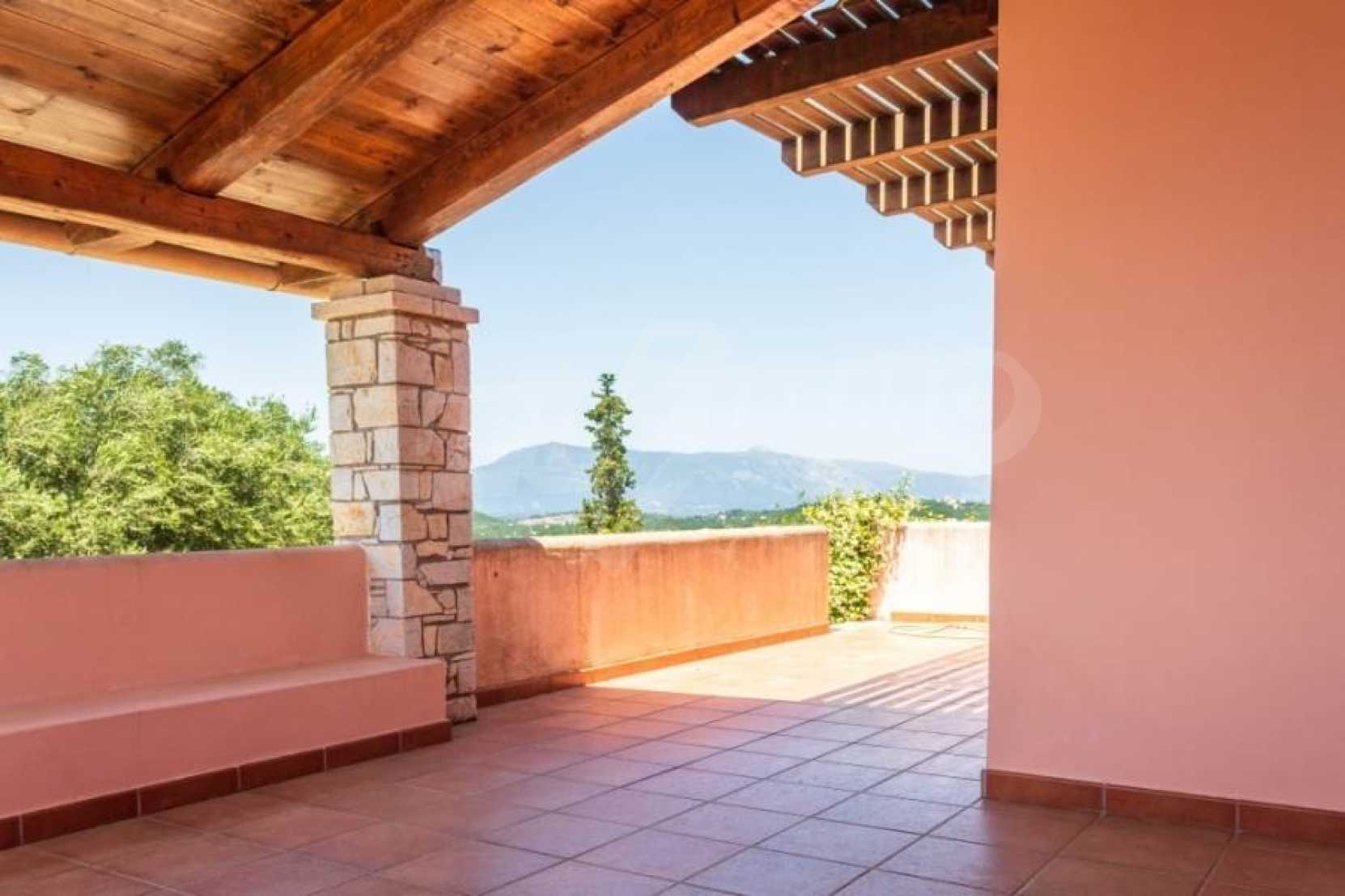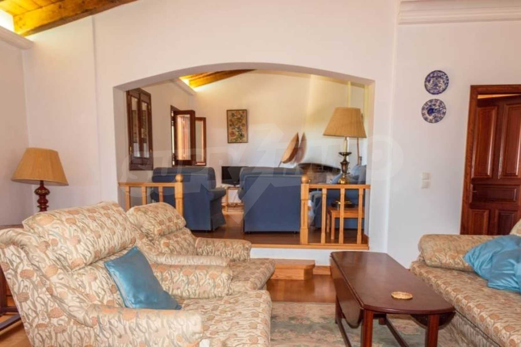 На прекрасно място, издигната и с панорамна гледка към провинцията и подвижните планини, се намира тази красива вила от 342кв.м, построена на три нива.