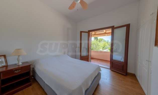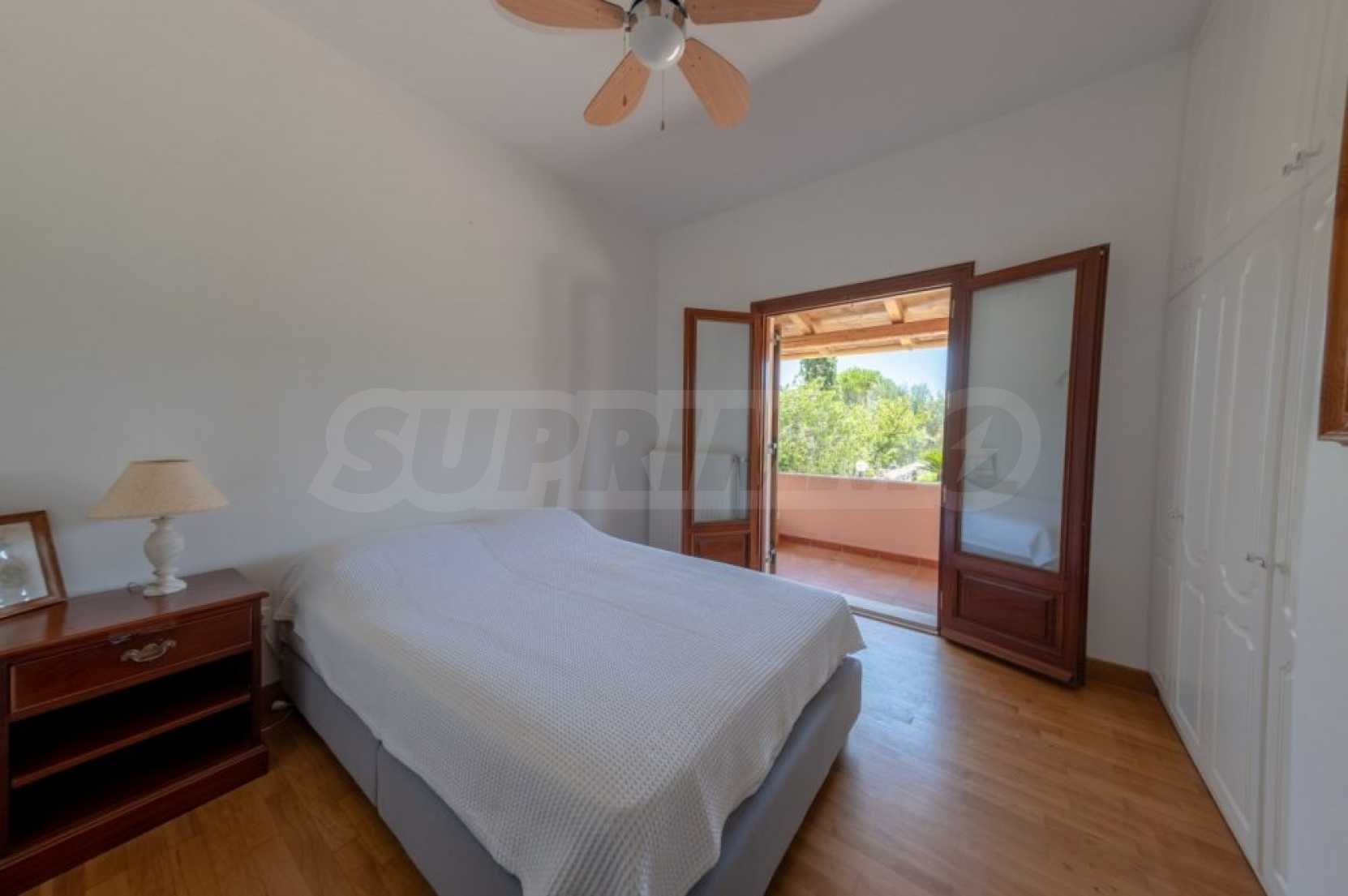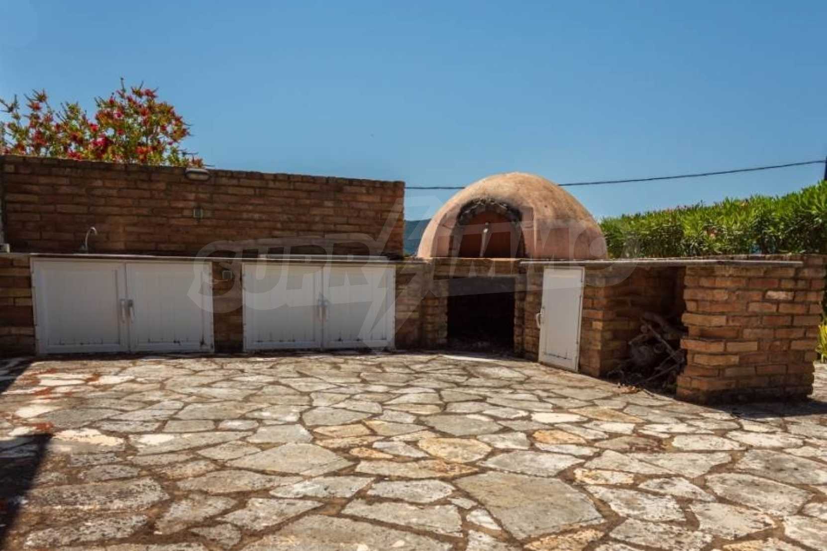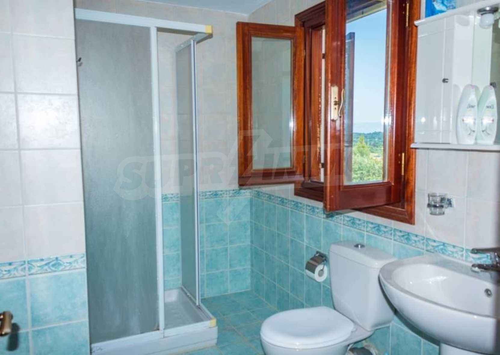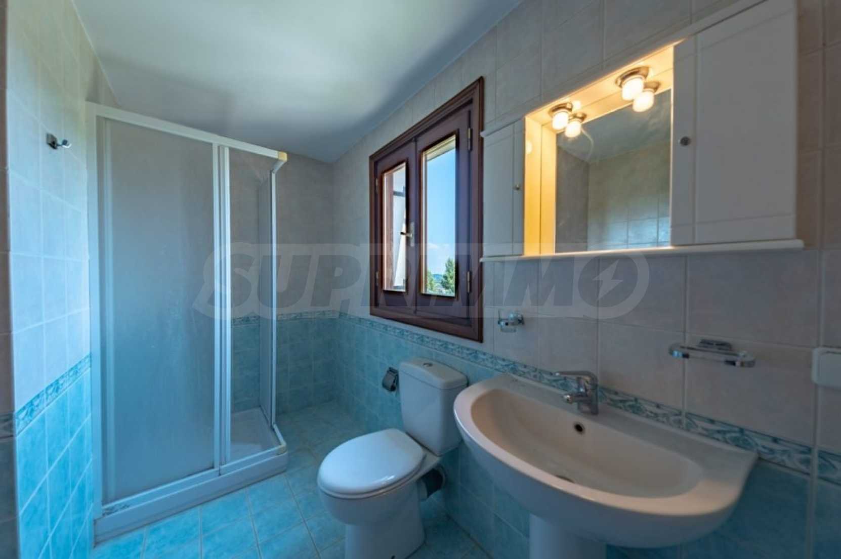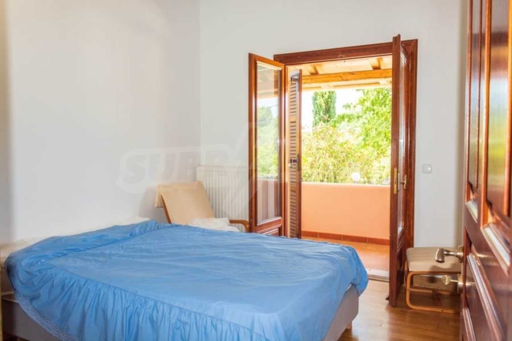 Горните нива също се състоят от големи веранди и балкони с невероятна гледка към околната природа от всяка част на къщата. Мазето, което има собствен вход, но също така и вътрешно стълбище, което се свързва с приземния етаж, се състои от голяма отворена планирайте стая, две спални, една баня с душ, малко складово помещение и отделно котелно помещение. Външната площ е просторна, наполовина с каменна настилка и наполовина превърната в прекрасна градина с морава, дървета, храсти и цветя.