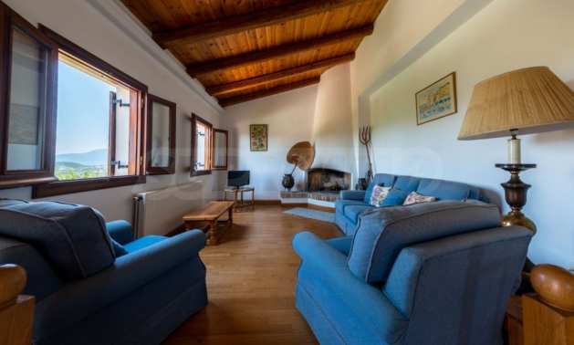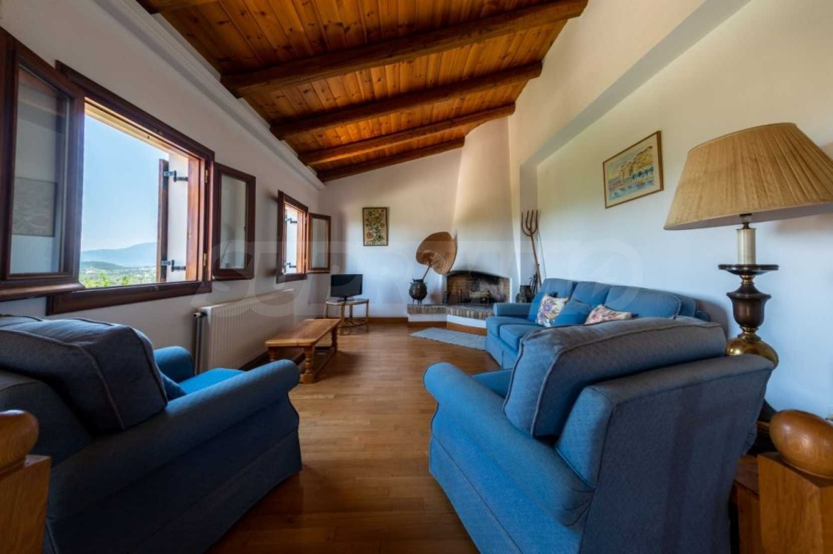 Разположен в живописното селце Ag.Ioannis, в очарователна градина от (приблизително) 5015m?, която е красиво оформена в малък рай.Партерът се състои от широк коридор, хол с камина, допълнителна зона за сядане, трапезария, голяма кухня, тоалетна, спалня със самостоятелна баня с душ и още две спални, които споделят голяма баня с вана. Дървено стълбище води до първия етаж, където има голяма площ на залата, която също може работи като хол, една голяма спалня и една баня с душ.