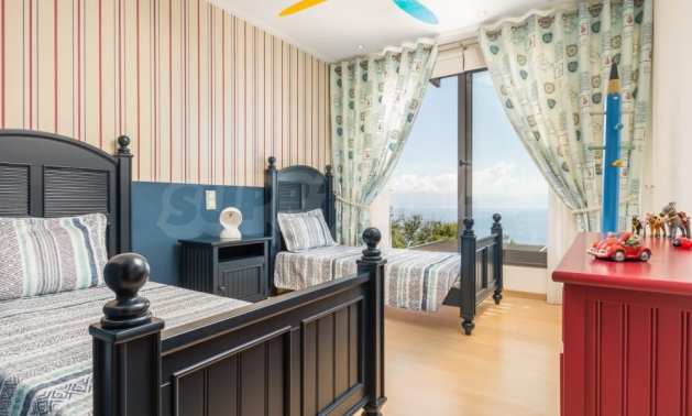 Вторият етаж е с размери 120,8 кв.м и се състои от основната спалня със собствен гардероб и баня и три спални със самостоятелни бани, всички от които предлагат невероятна гледка към морето.