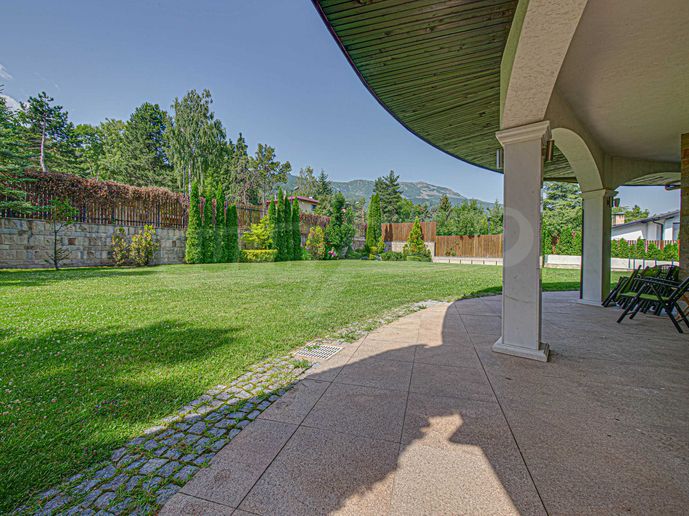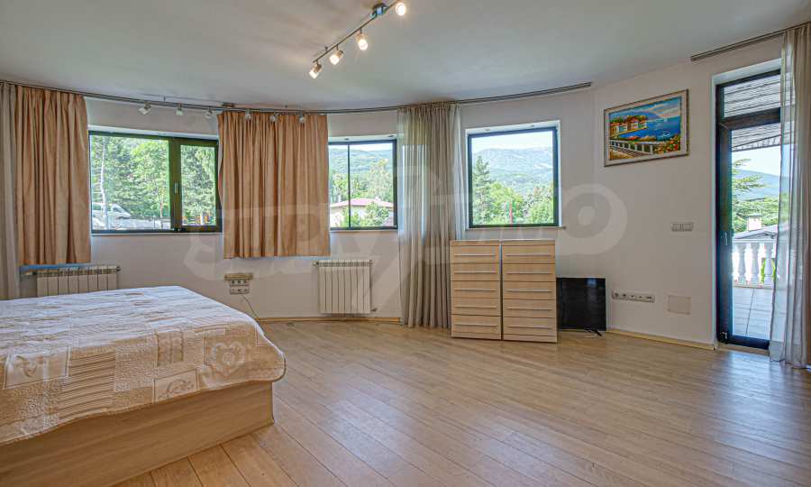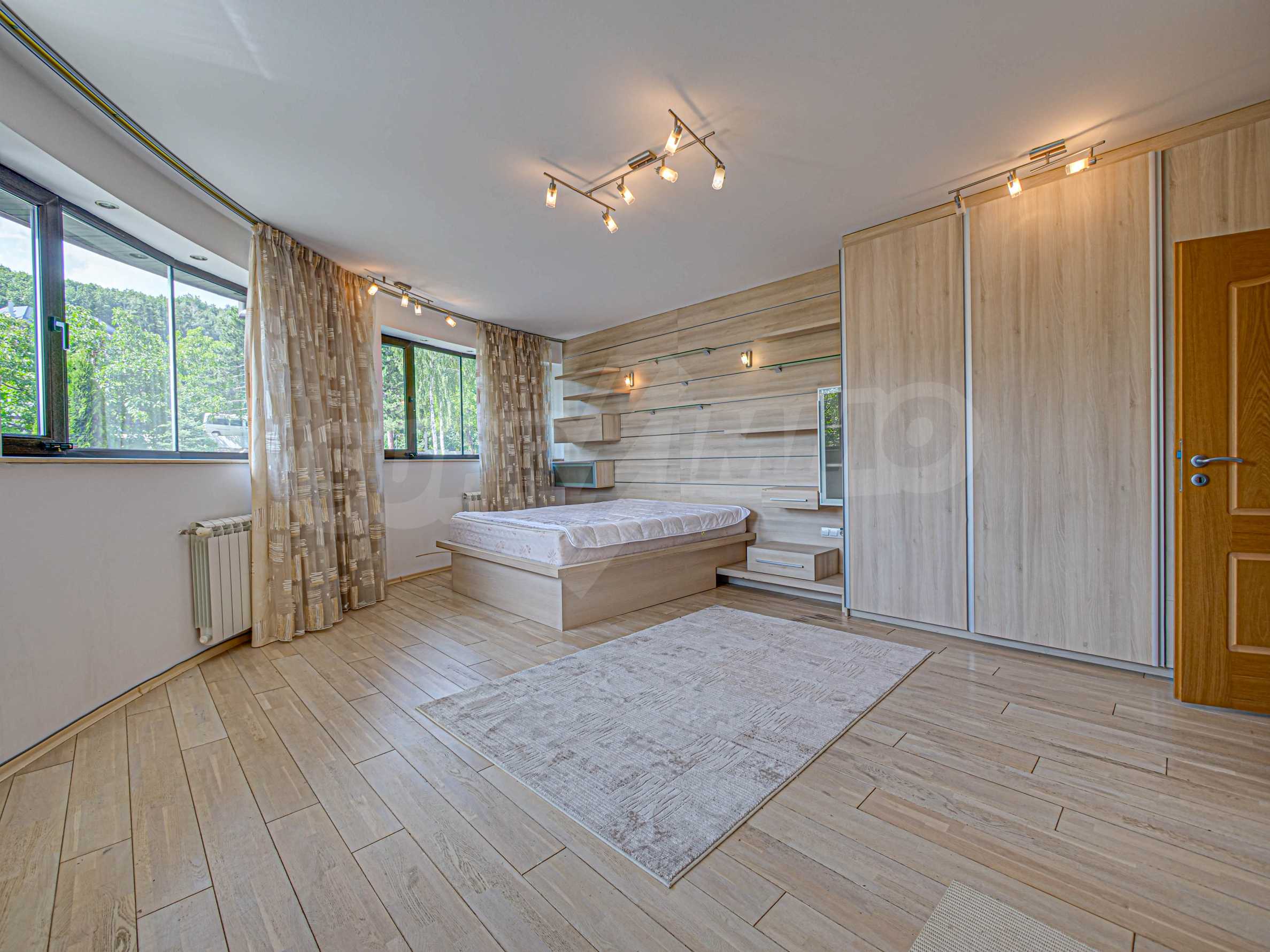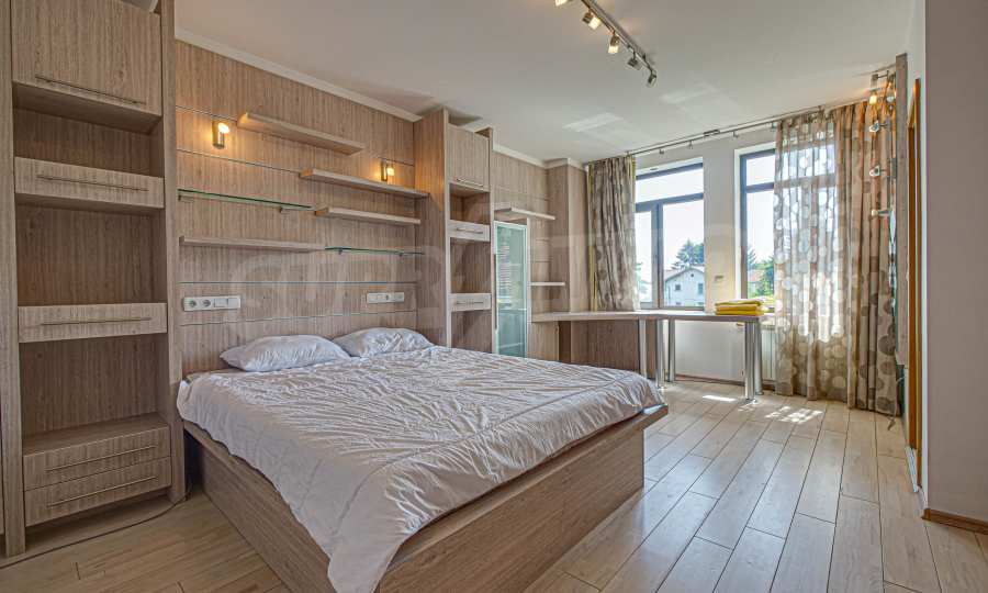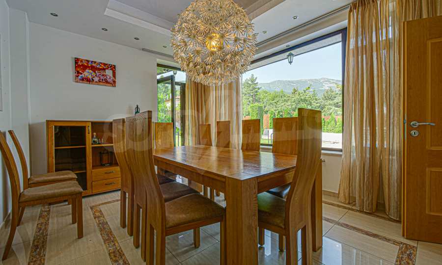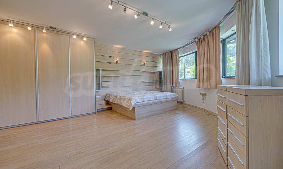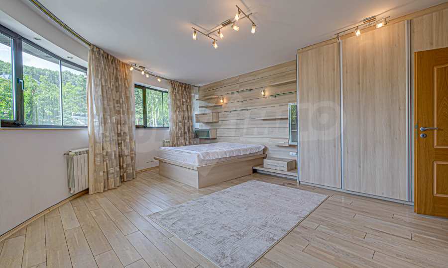 Имотът се отличава с неповторими гледки към планина и просторен двор, с басеин и барбекю. Бъдещите наематели могат да се насладят на комфорта и уединението в един от топ районите на столицата. Къщата е на три нива, с високи тавани, просторни стаи с големи прозорци, осигуряващи изобилие от естествена светлина и невероятни гледки към Витоша и прекрасно аранжирания двор.