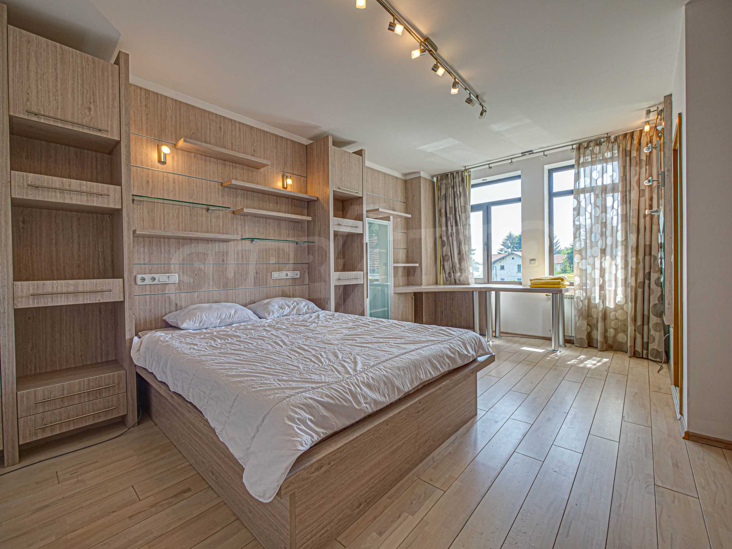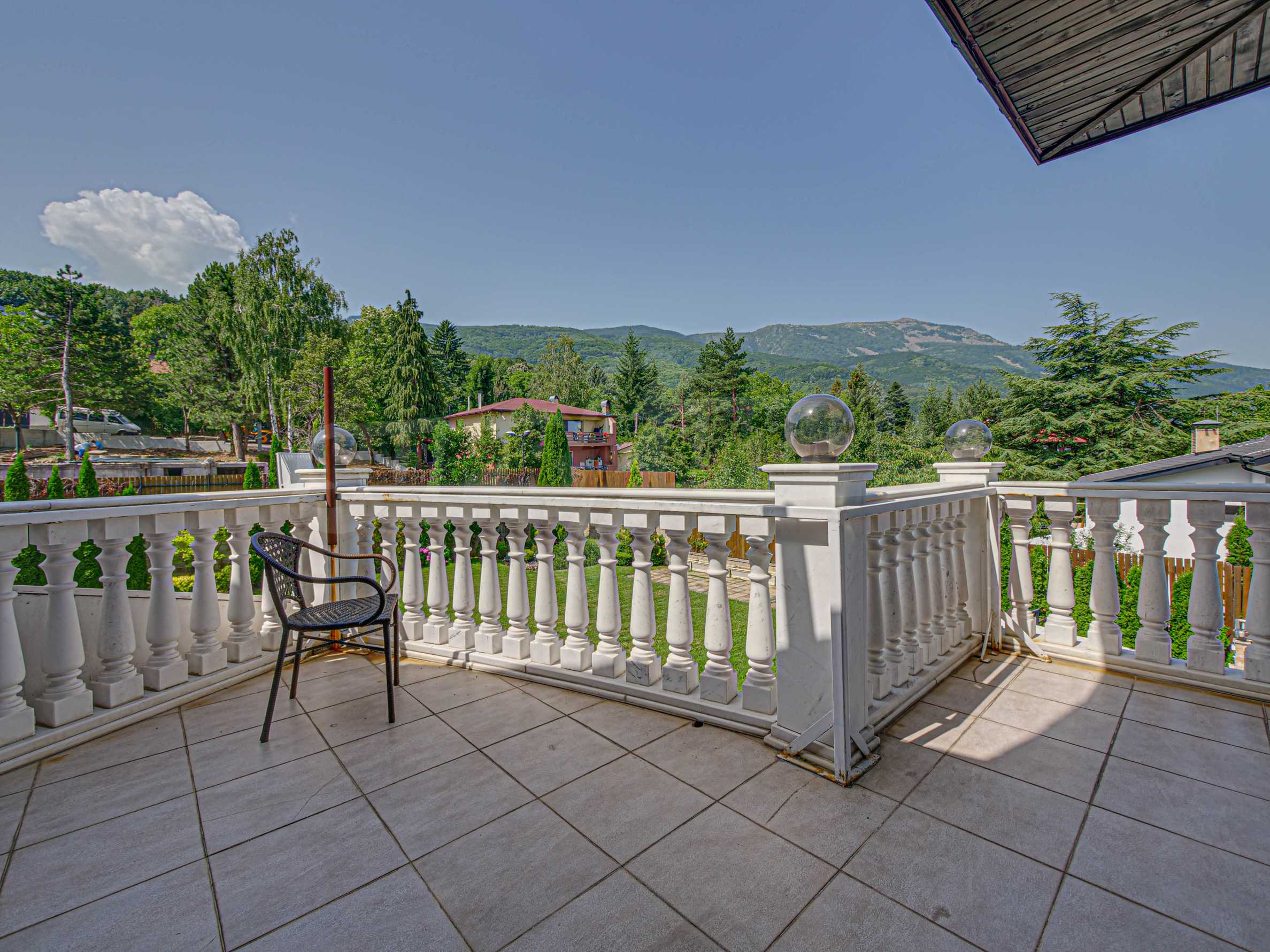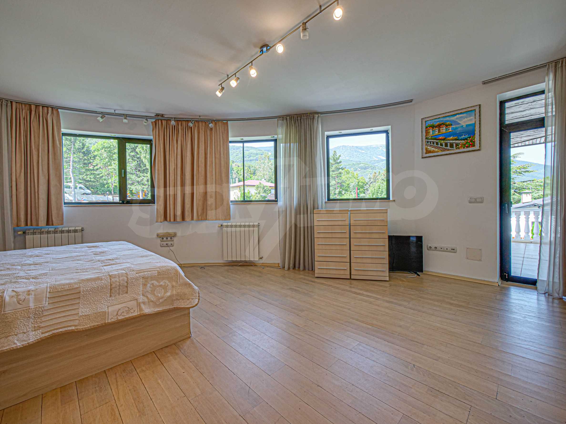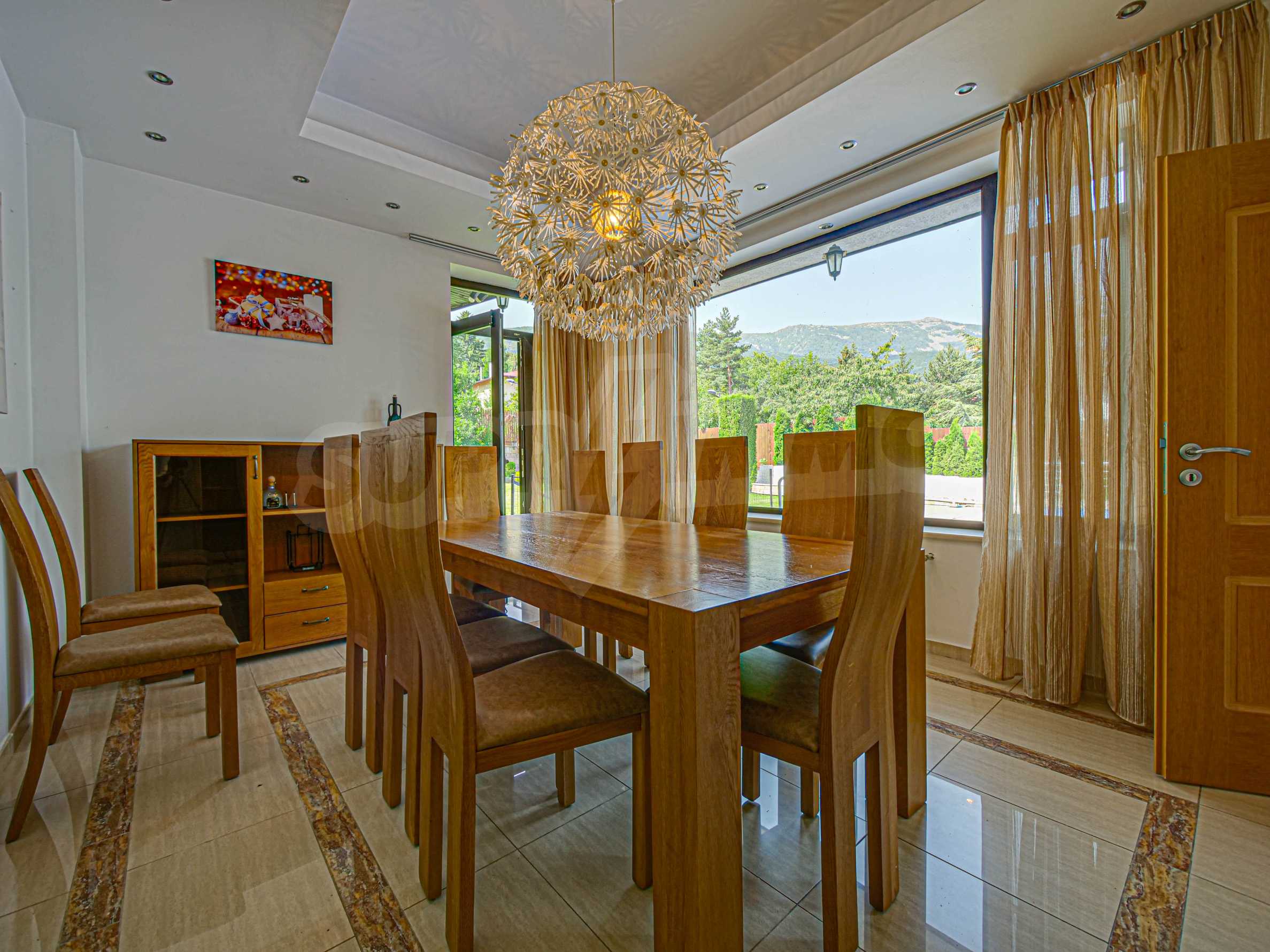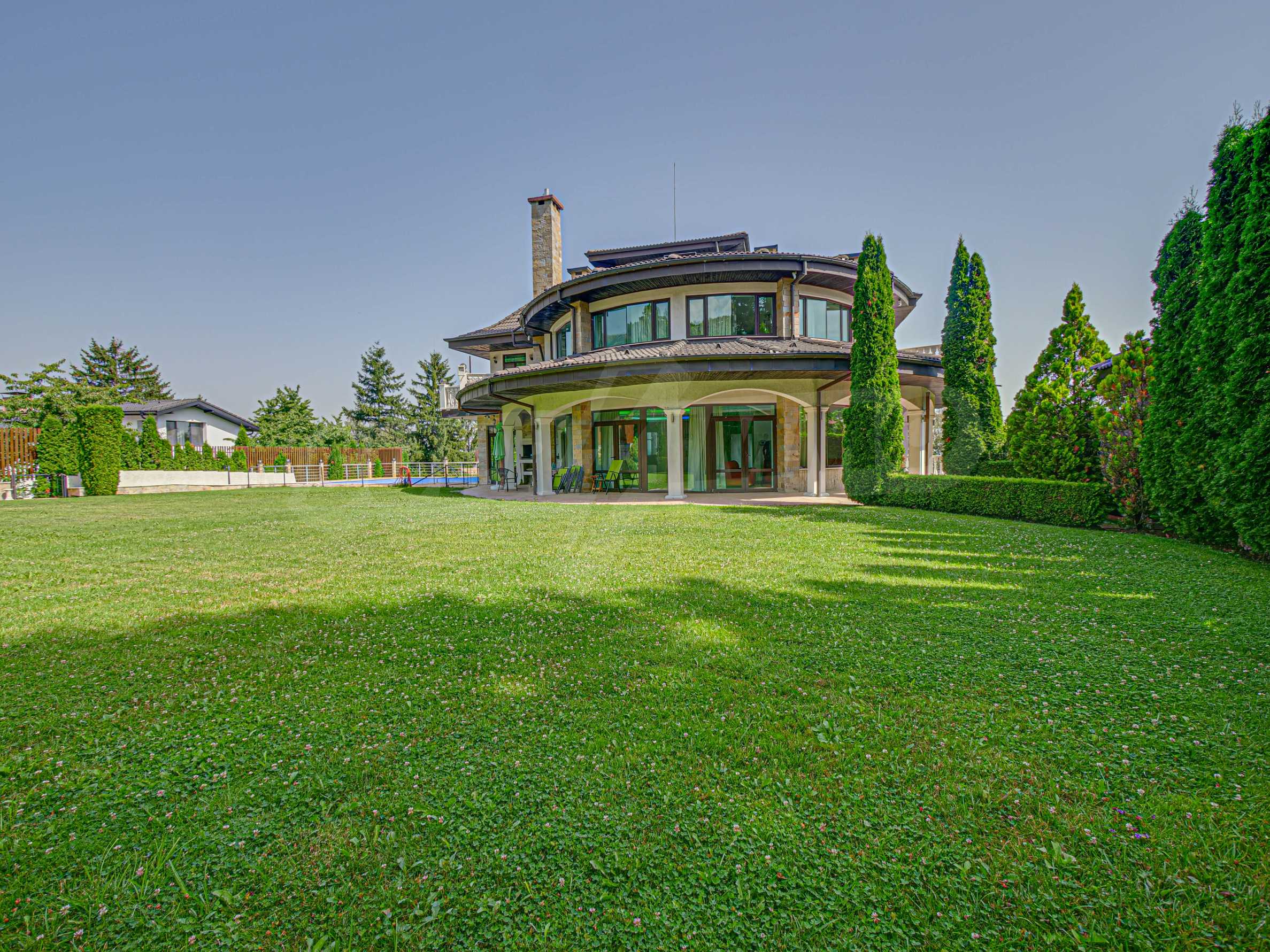 Имотът се отличава с неповторими гледки към планина и просторен двор, с басеин и барбекю. Бъдещите наематели могат да се насладят на комфорта и уединението в един от топ районите на столицата. Къщата е на три нива, с високи тавани, просторни стаи с големи прозорци, осигуряващи изобилие от естествена светлина и невероятни гледки към Витоша и прекрасно аранжирания двор.