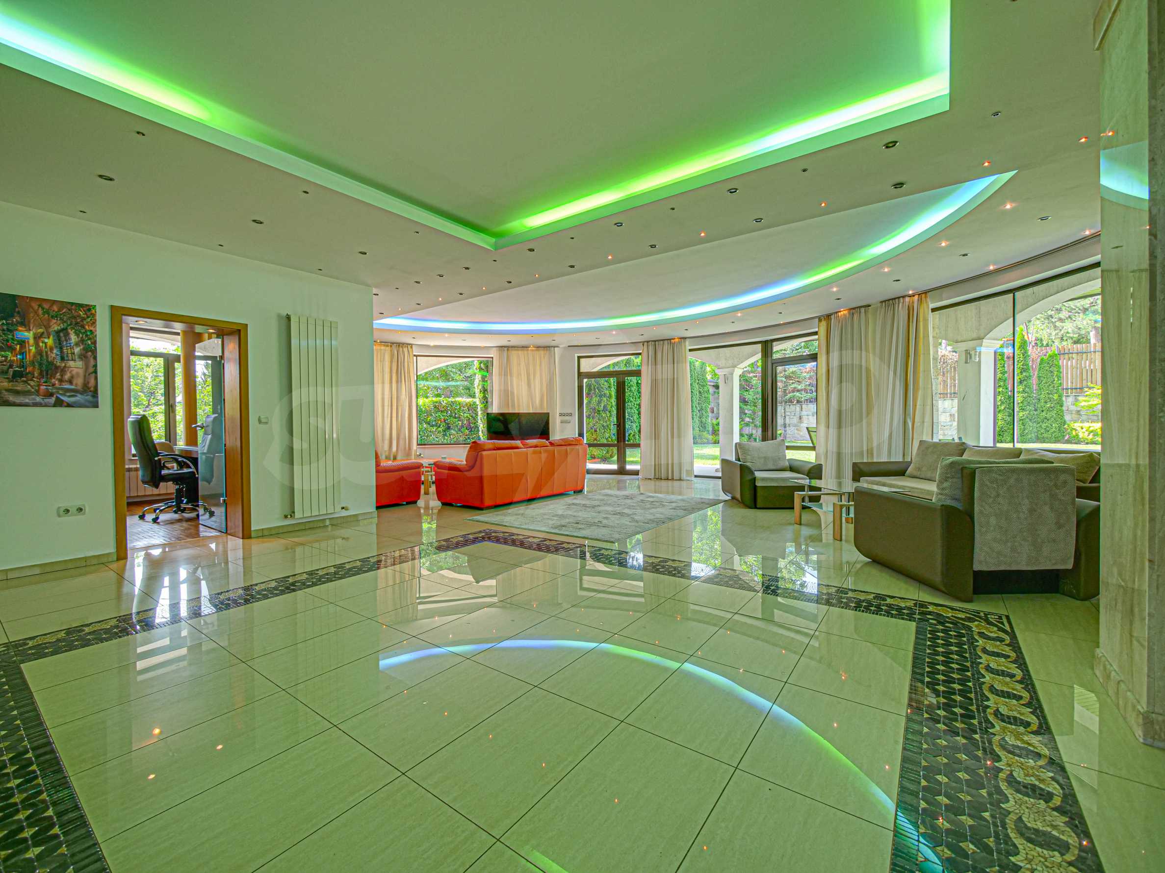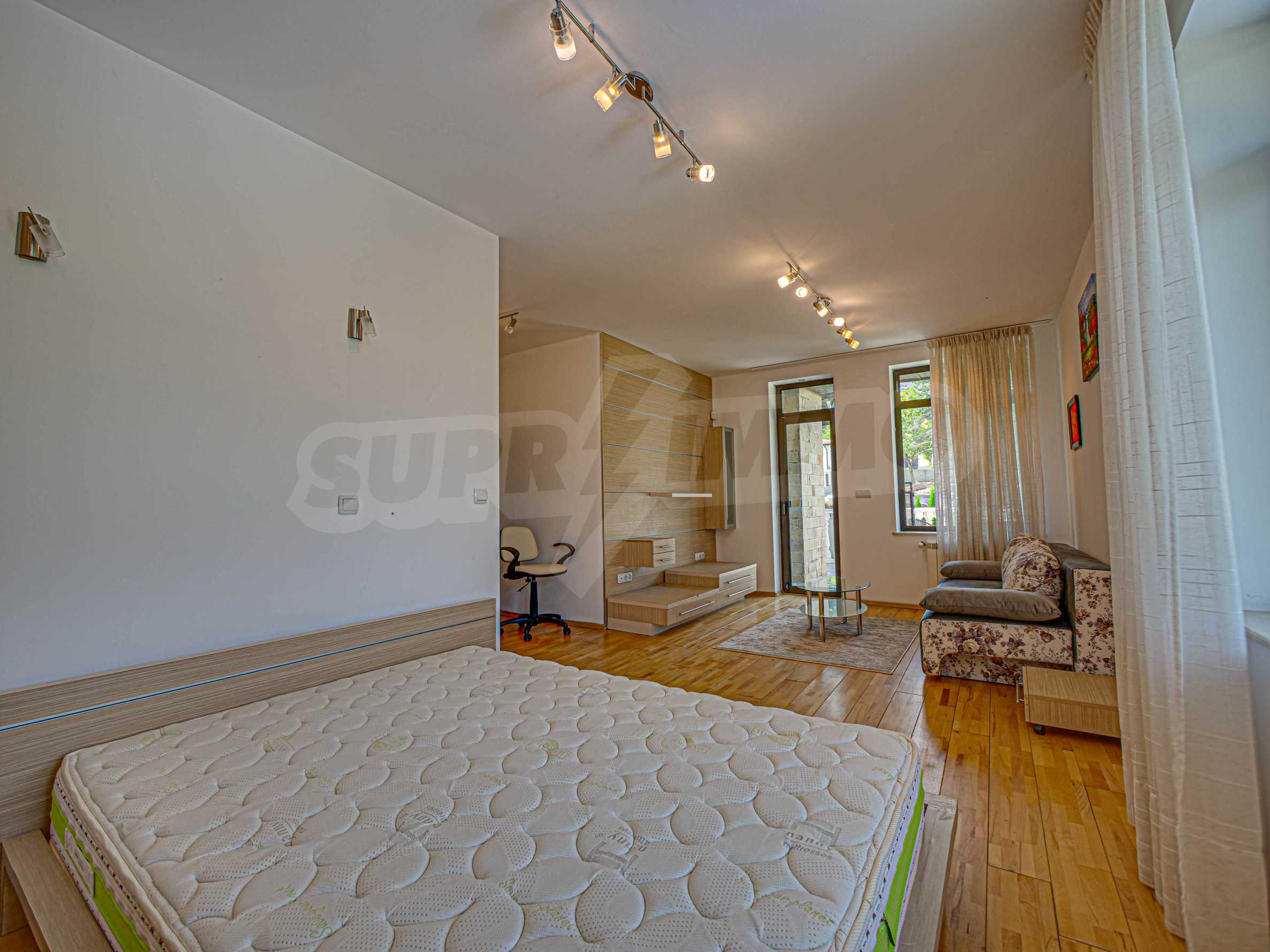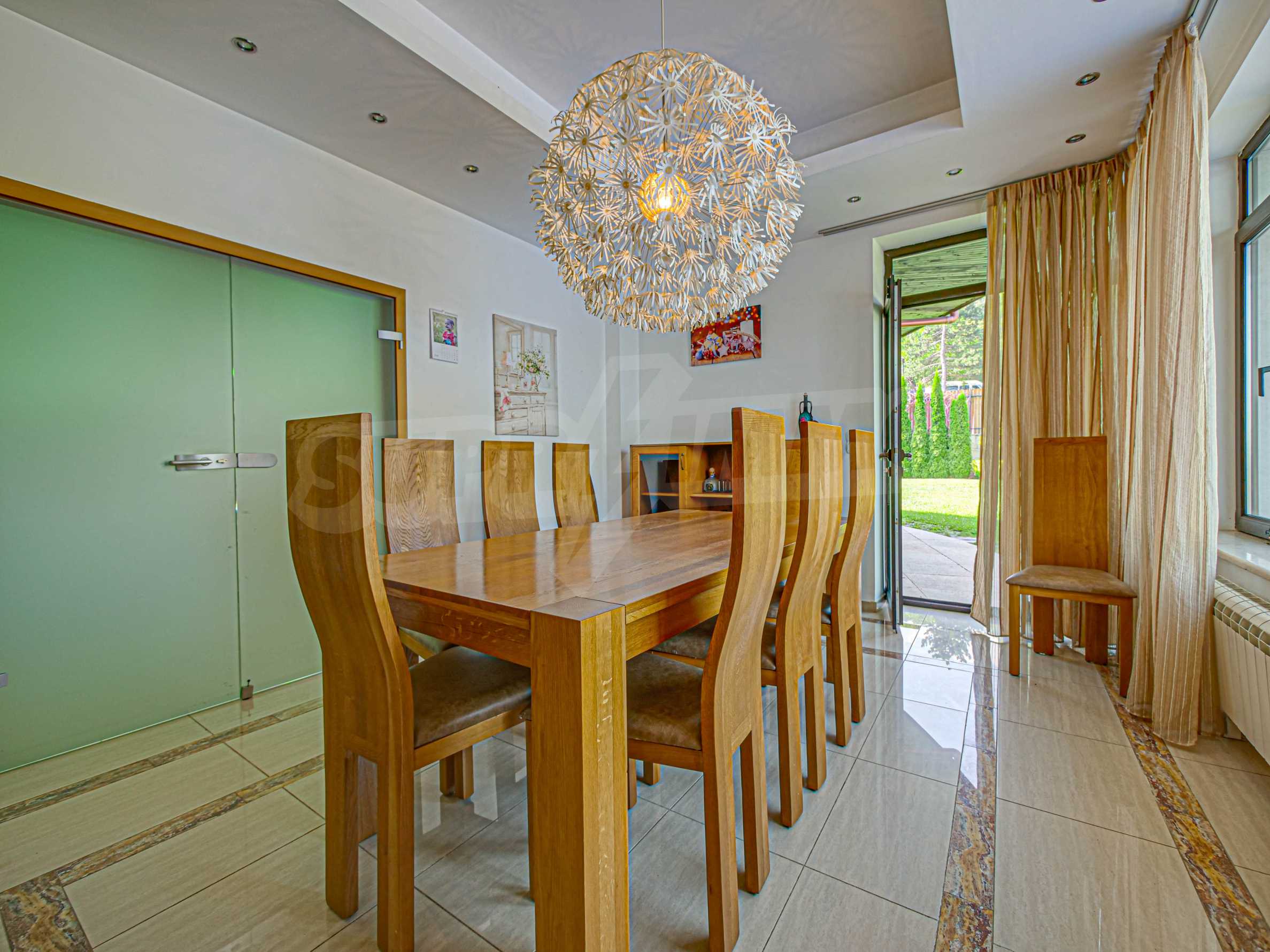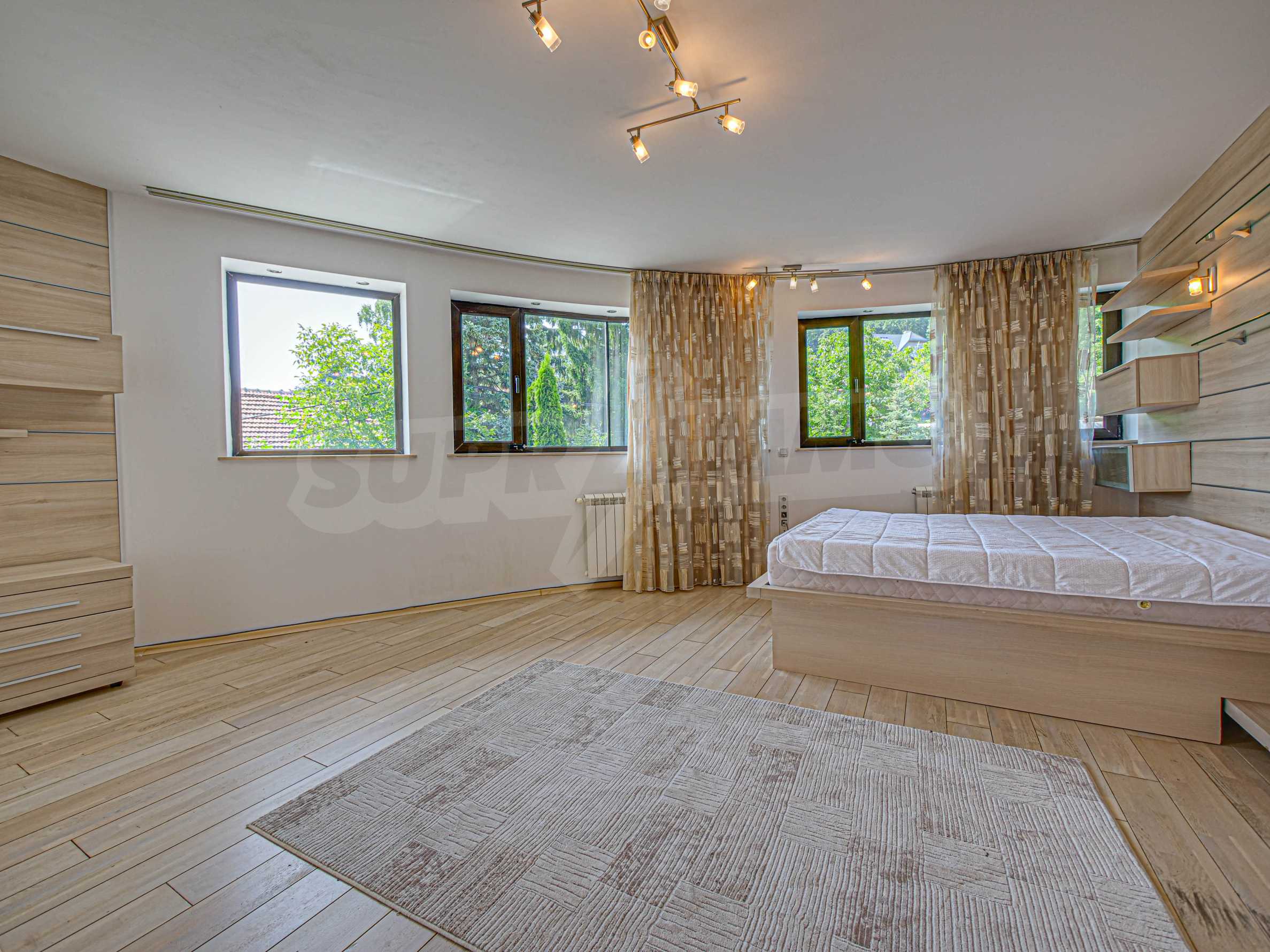 Имотът се отличава с неповторими гледки към планина и просторен двор, с басеин и барбекю. Бъдещите наематели могат да се насладят на комфорта и уединението в един от топ районите на столицата. Къщата е на три нива, с високи тавани, просторни стаи с големи прозорци, осигуряващи изобилие от естествена светлина и невероятни гледки към Витоша и прекрасно аранжирания двор.