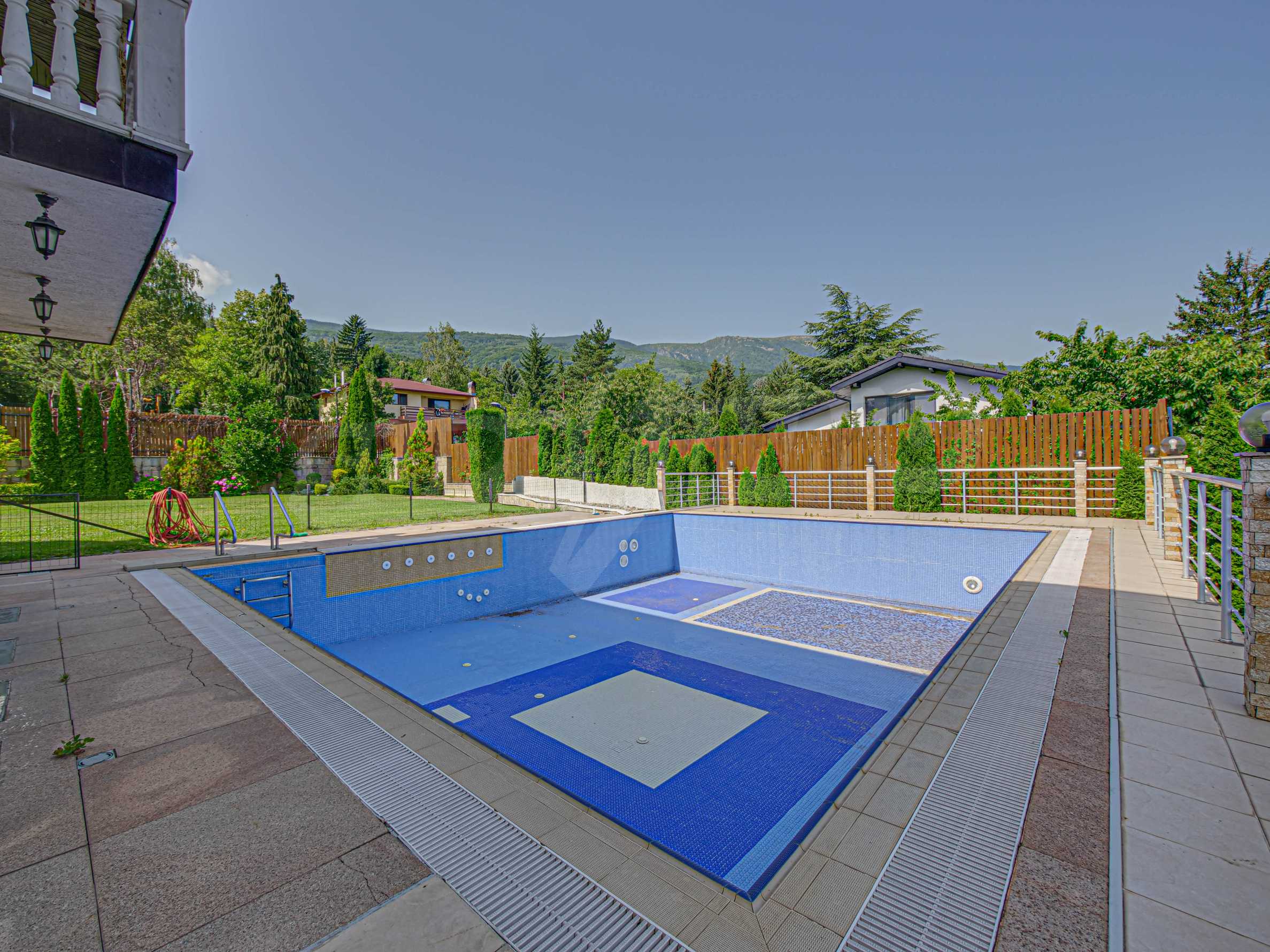 - Голям двор с външен басейн.