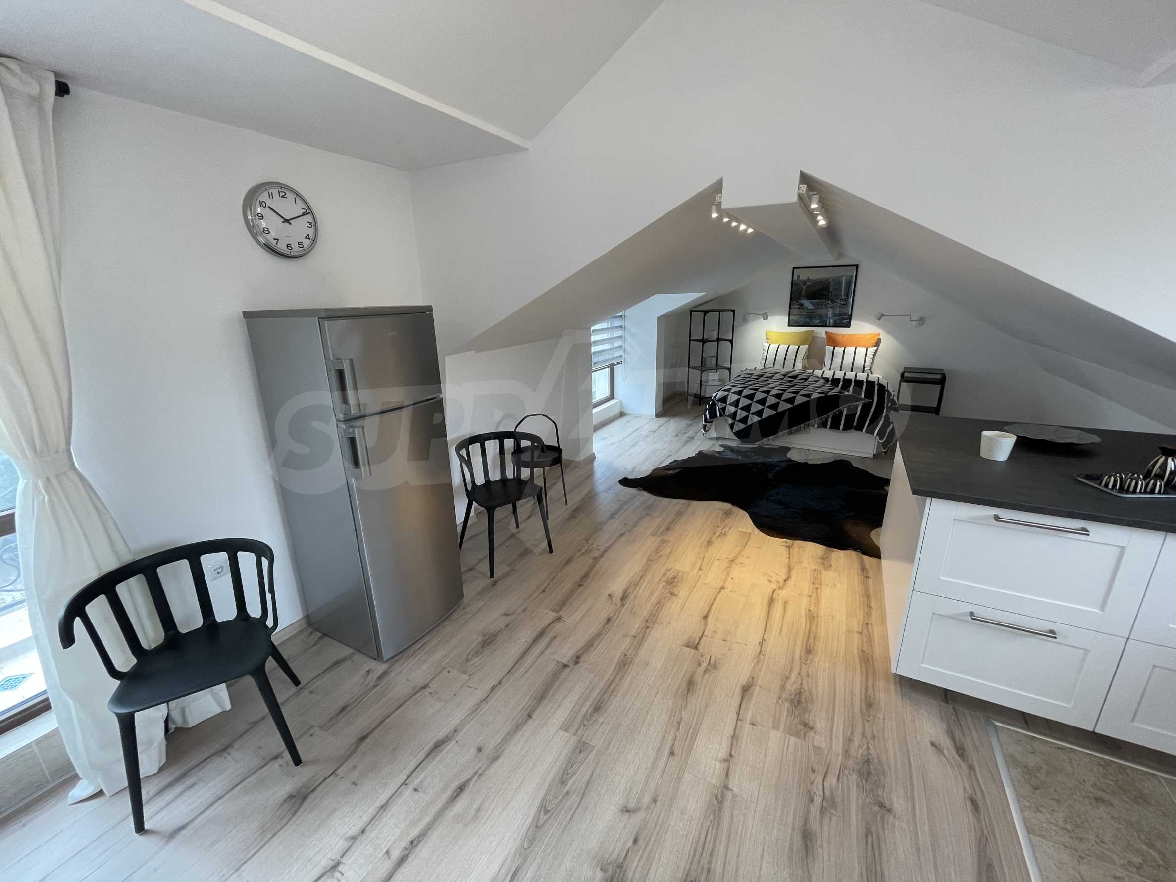 Интериорната композиция на този едностаен имот е функционална и артистична. Решено в модерен, френски градски стил, студиото е новообзаведено и очаква първите си наематели!