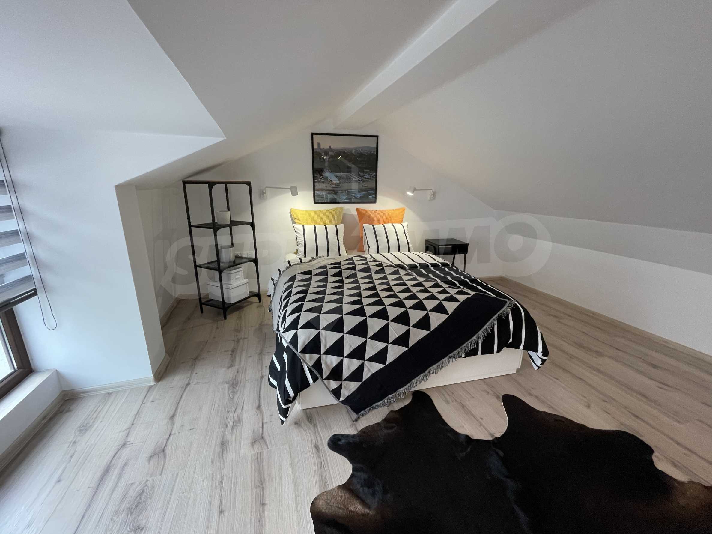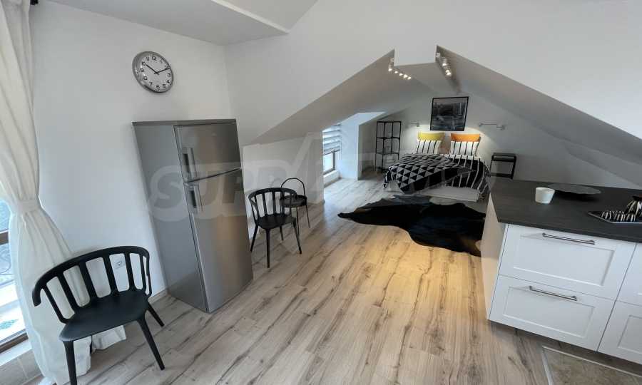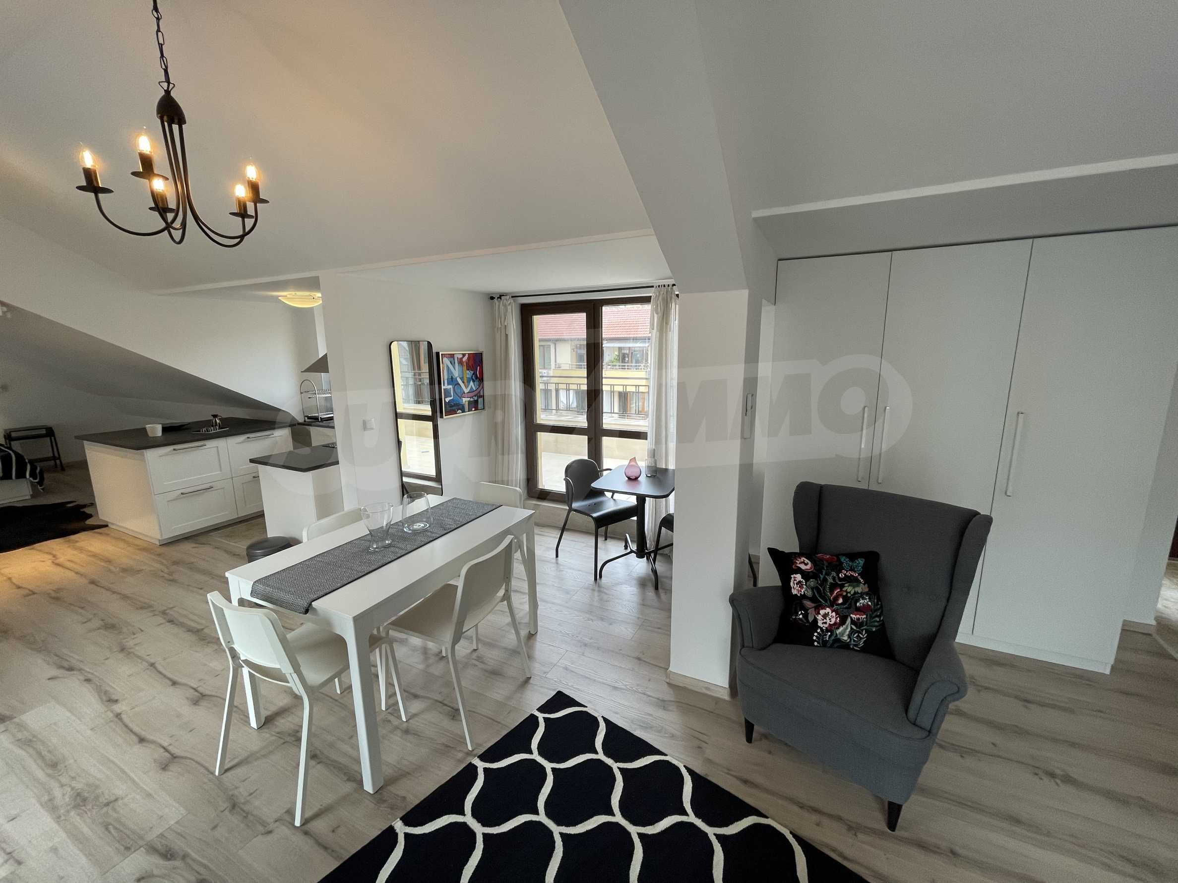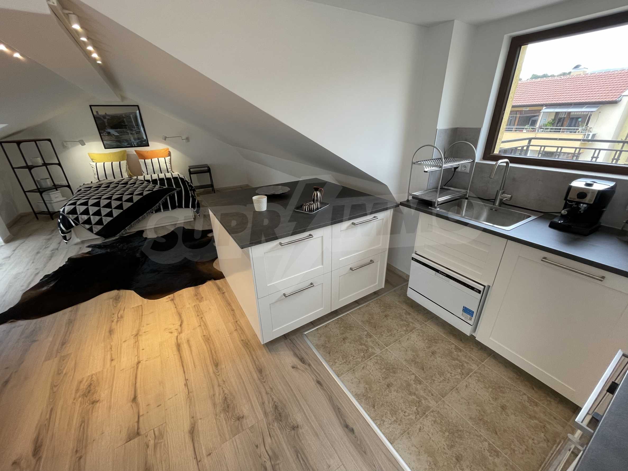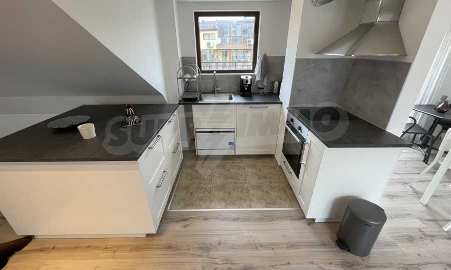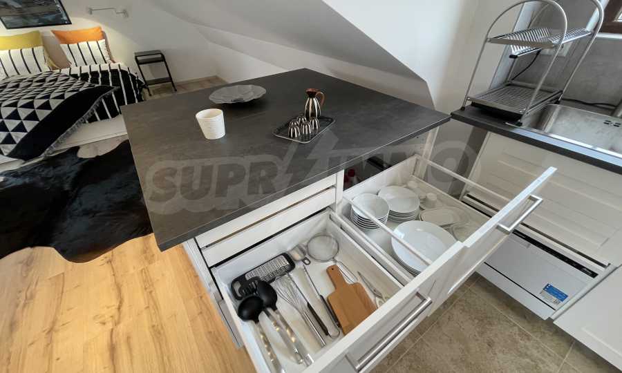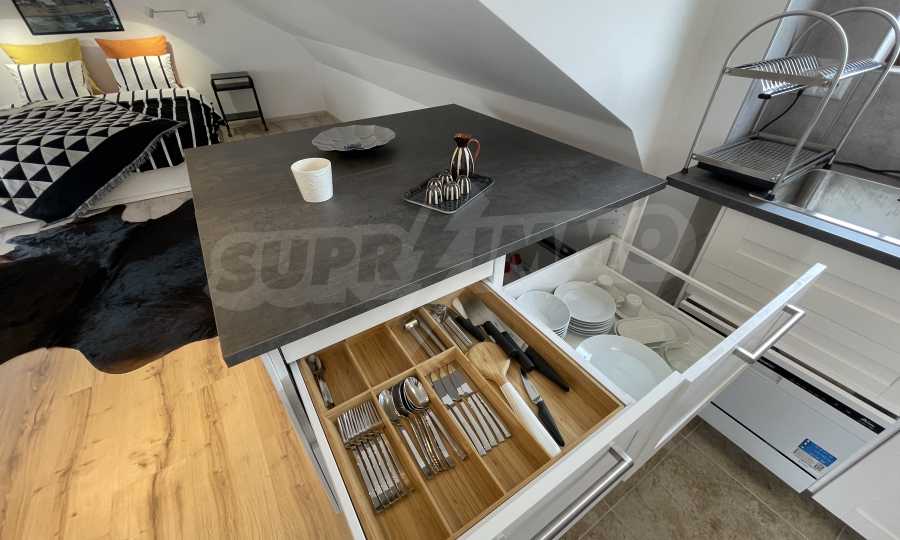 Апартаментът е практично зониран, снабден с първокласно оборудване: